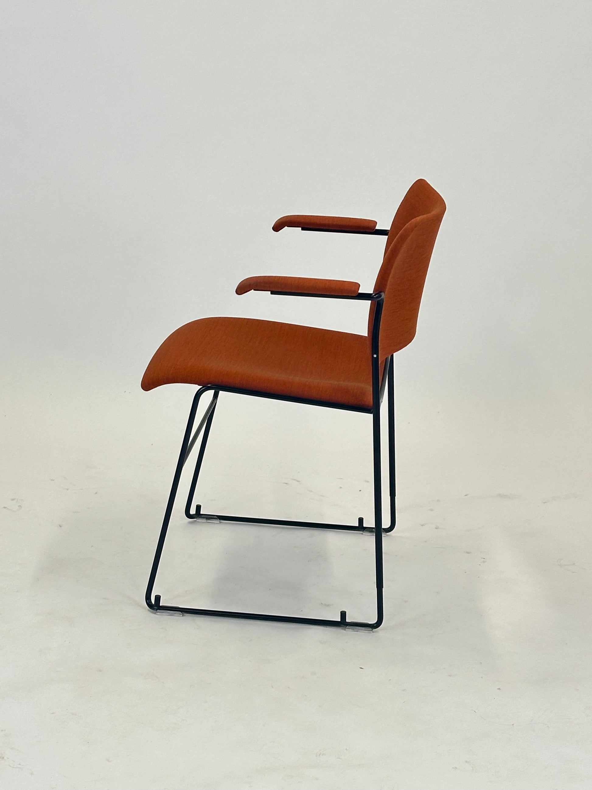 Stolens lette stålrørsramme og ergonomisk formede sæde og ryg giver høj siddekomfort, selv ved længere møder. Armlænene tilføjer ekstra støtte og komfort, hvilket gør stolen ideel til professionelle omgivelser, hvor både funktion og udtryk er vigtigt.