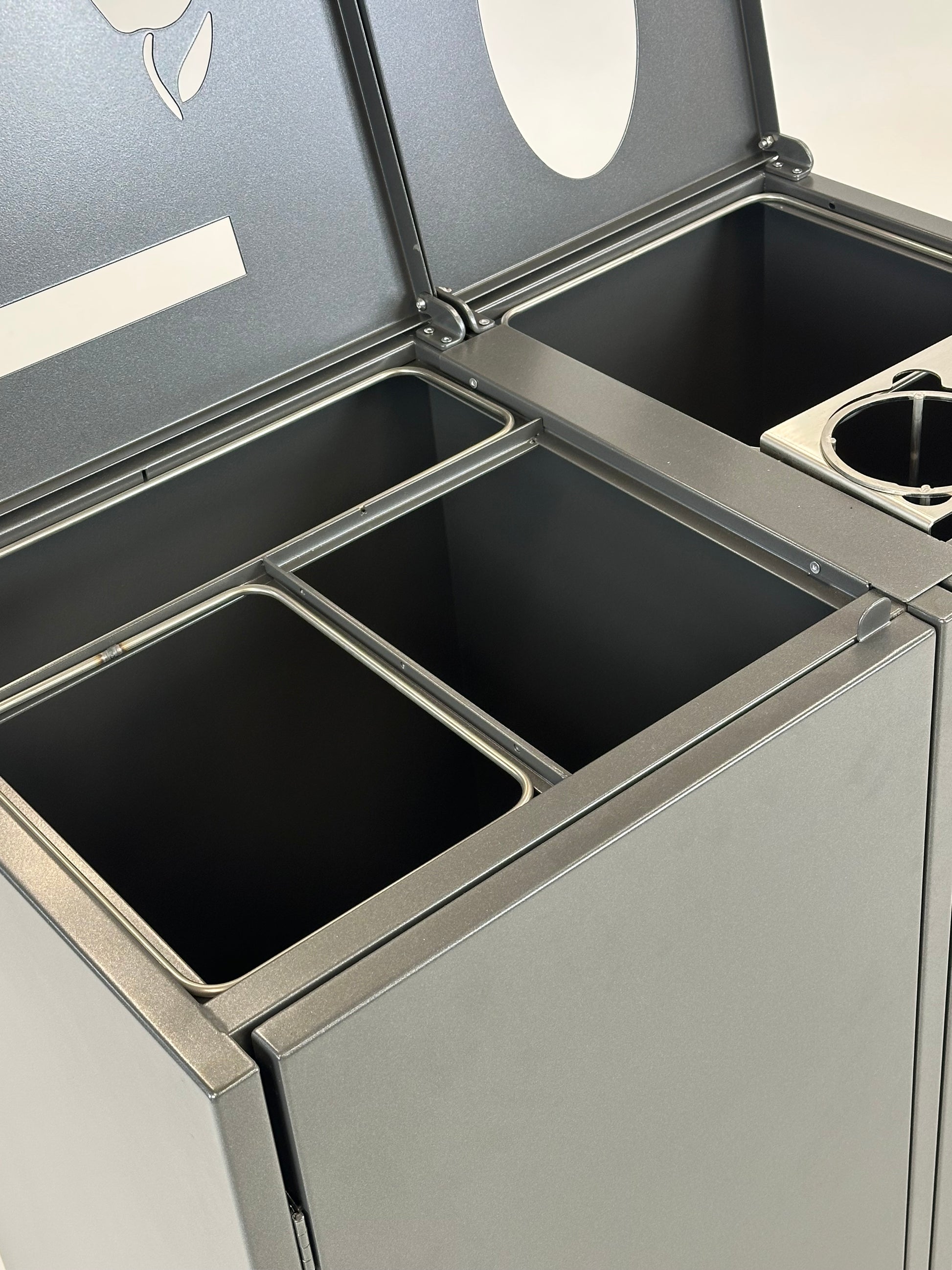 - Kapacitet: Modulopdelingen giver rigeligt med plads til at rumme forskellige typer affald uden at fylde unødigt.