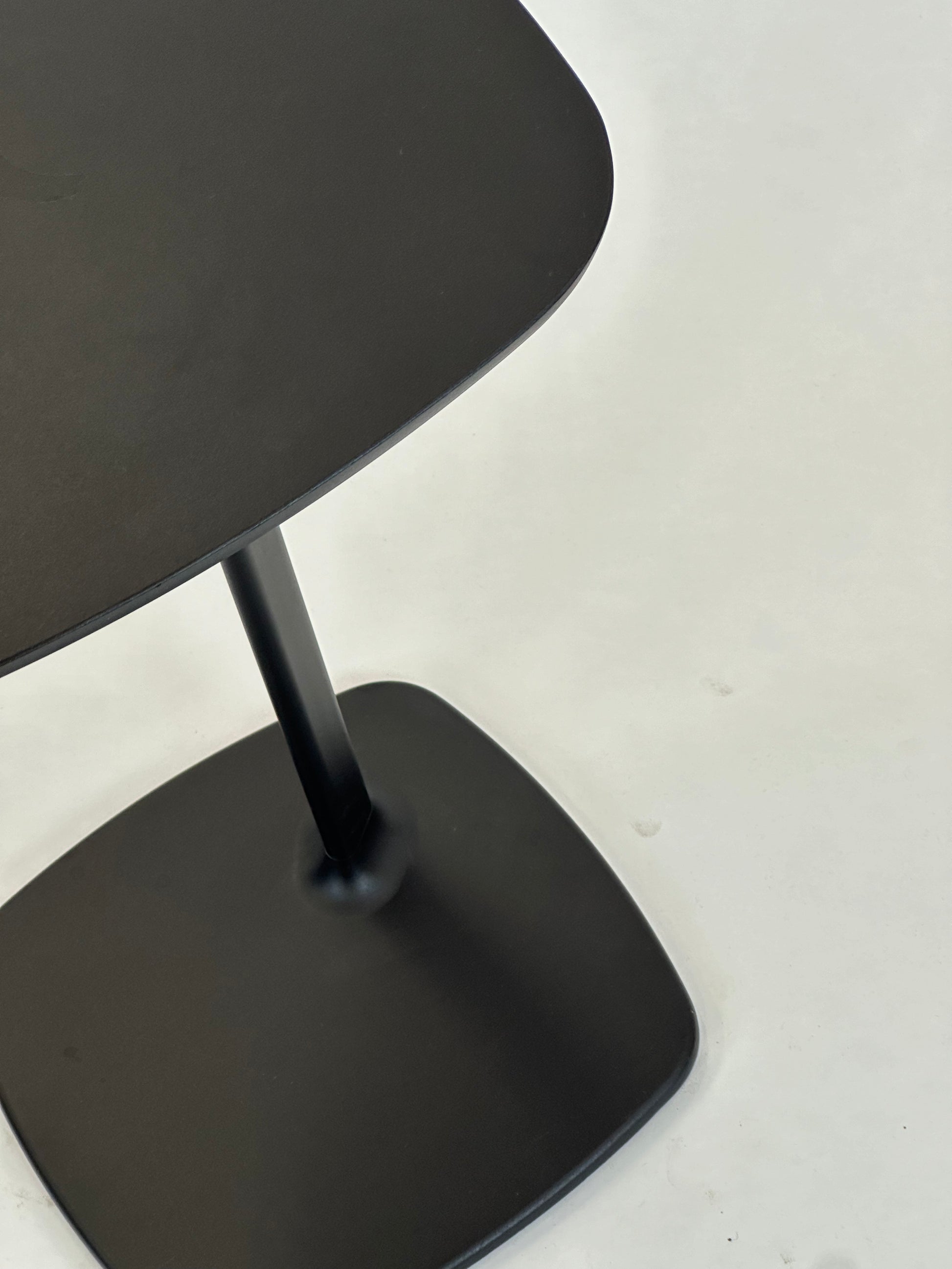 - Bordplade: Bordet har en kompakt og elegant bordplade, der er designet til at give den nødvendige plads til en laptop, noter eller en kop kaffe. Den sorte finish giver et sofistikeret og moderne udtryk, der passer til enhver indretning.