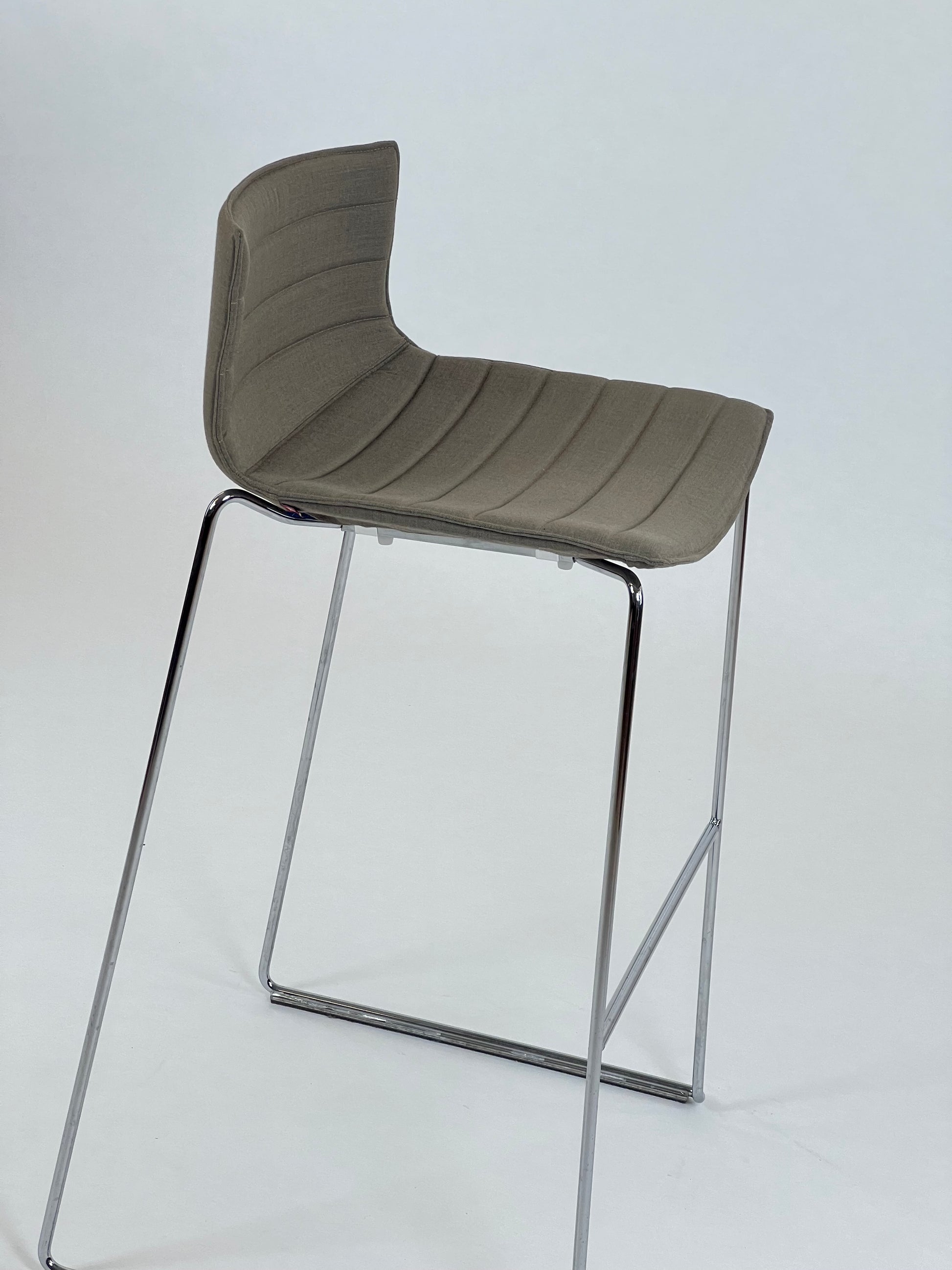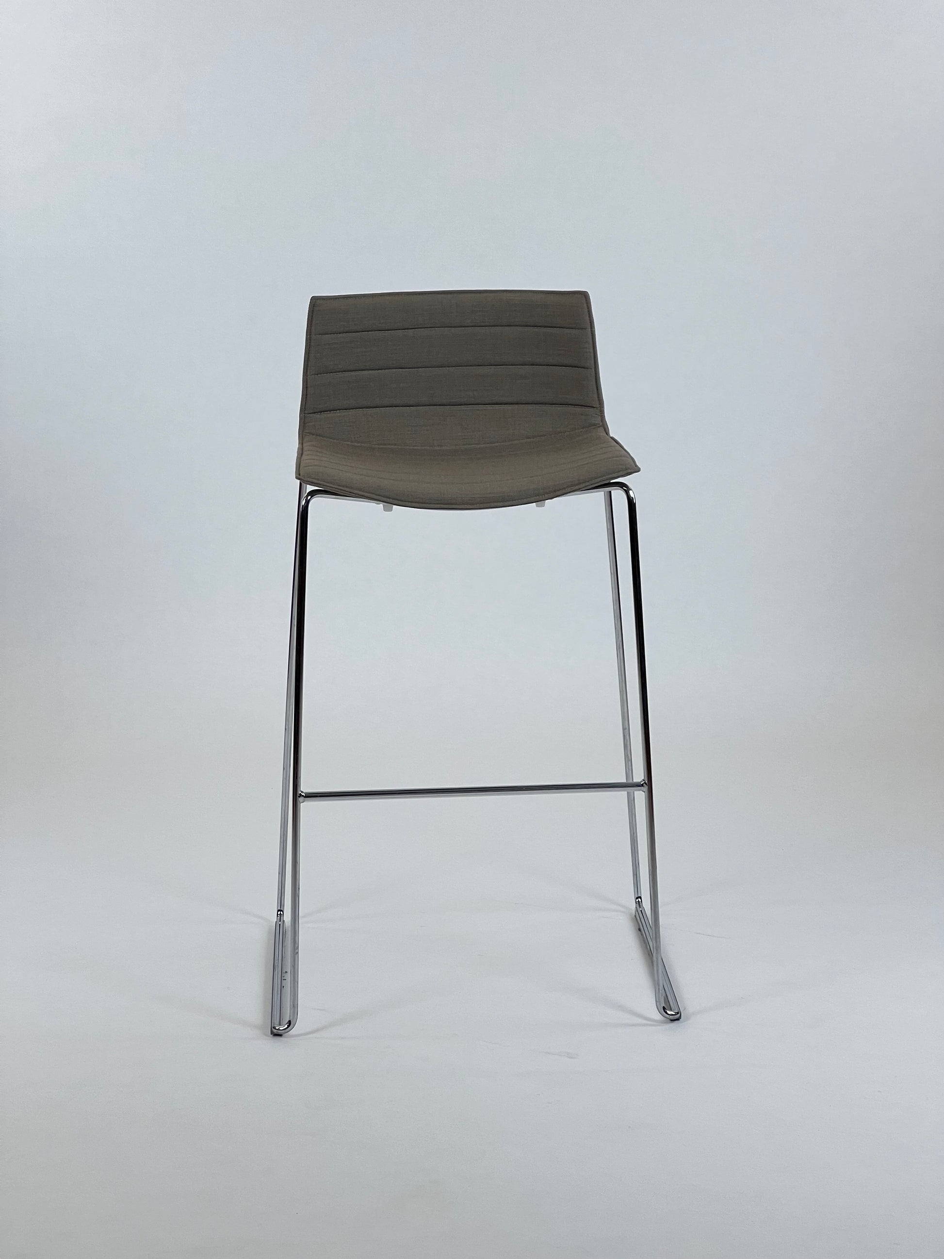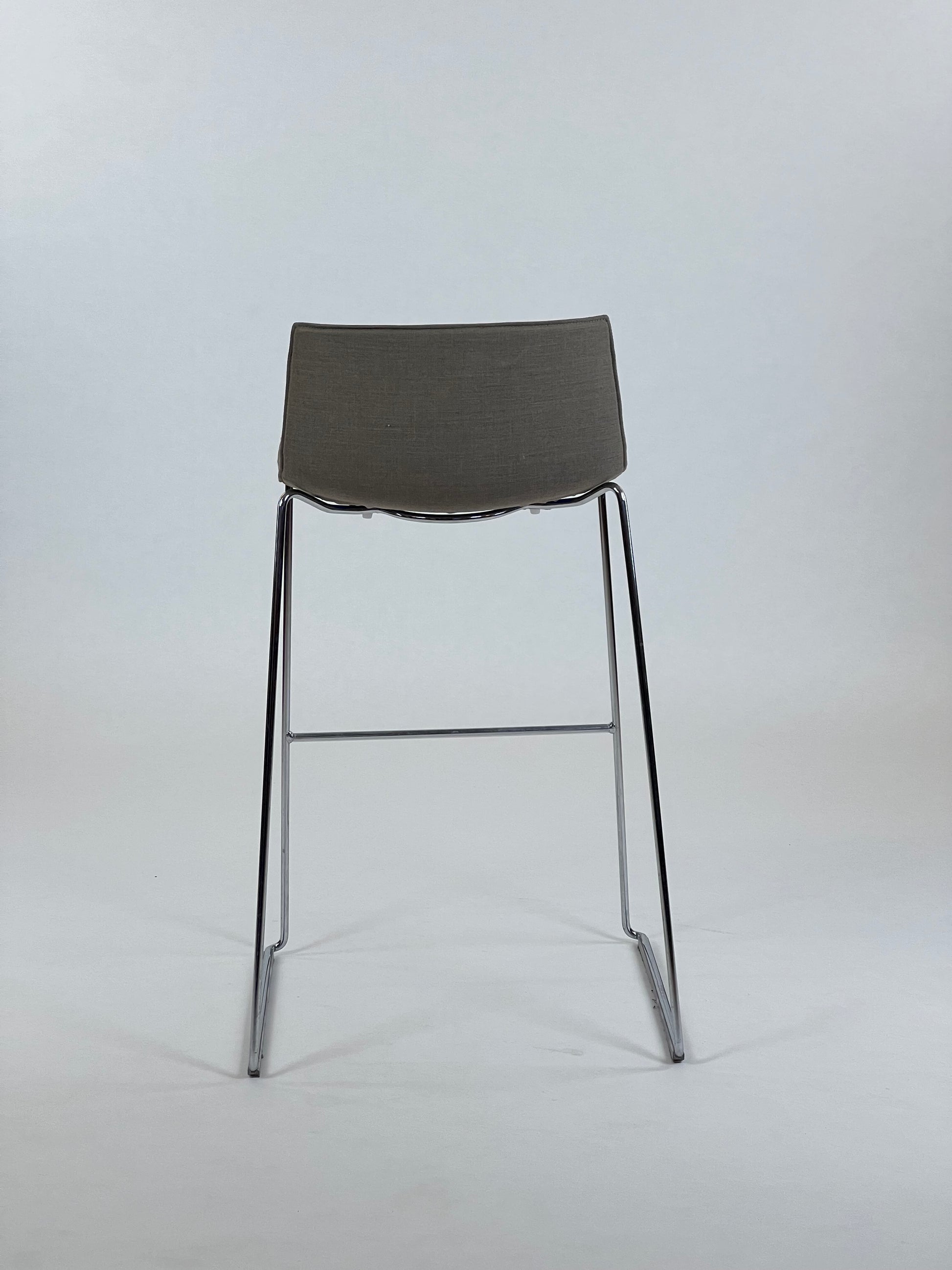 Arper Catifa 46 Barstolen i denne grå, polstrede version tilbyder en perfekt balance mellem æstetik og komfort. Dens elegante udseende og praktiske design gør den til et fremragende valg til både private og kommercielle rum, hvor både stil og funktionalitet er vigtige.