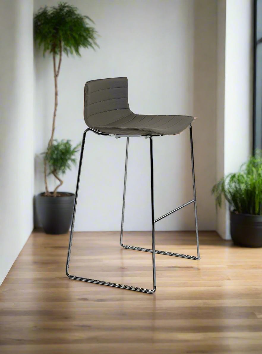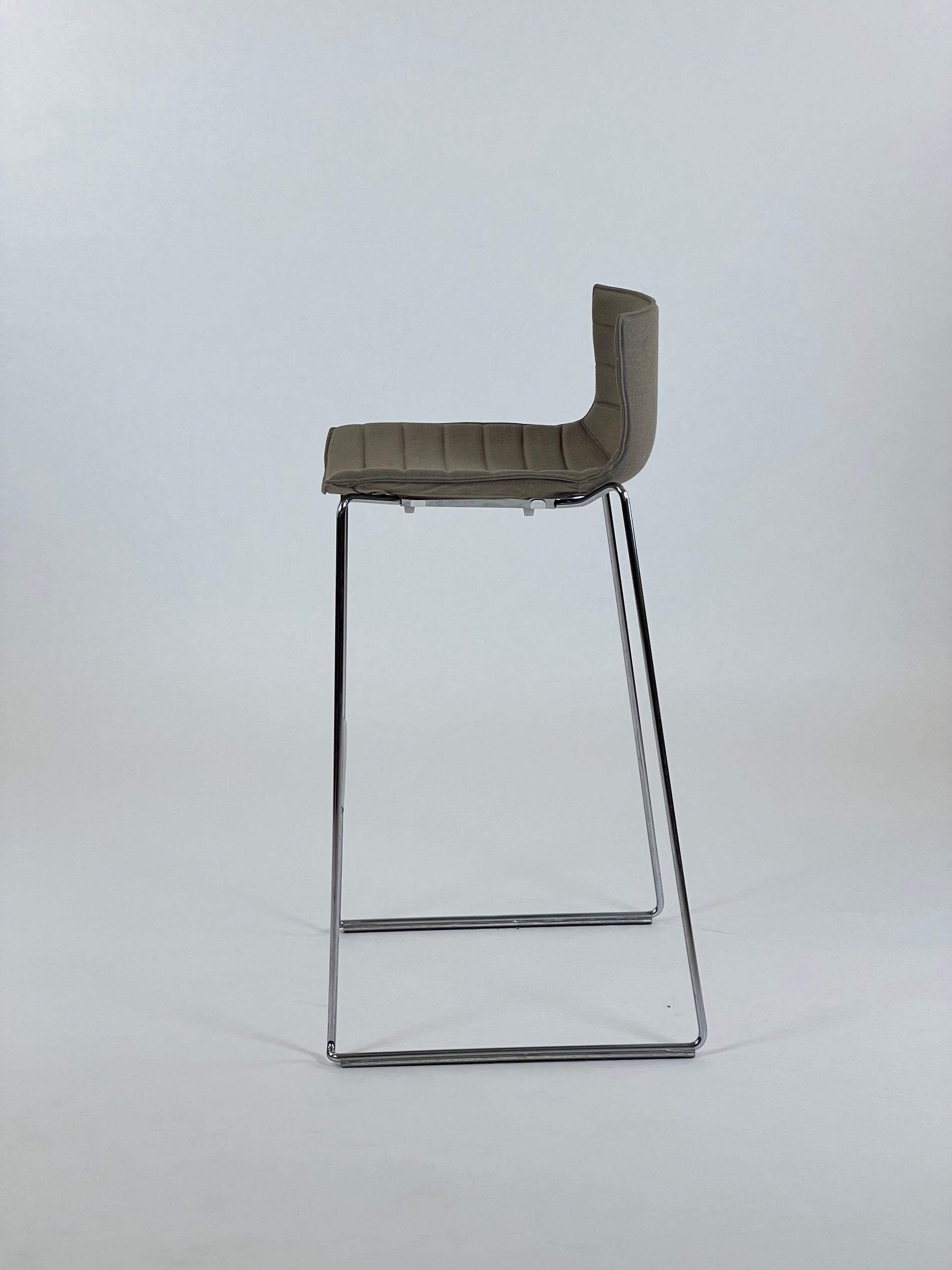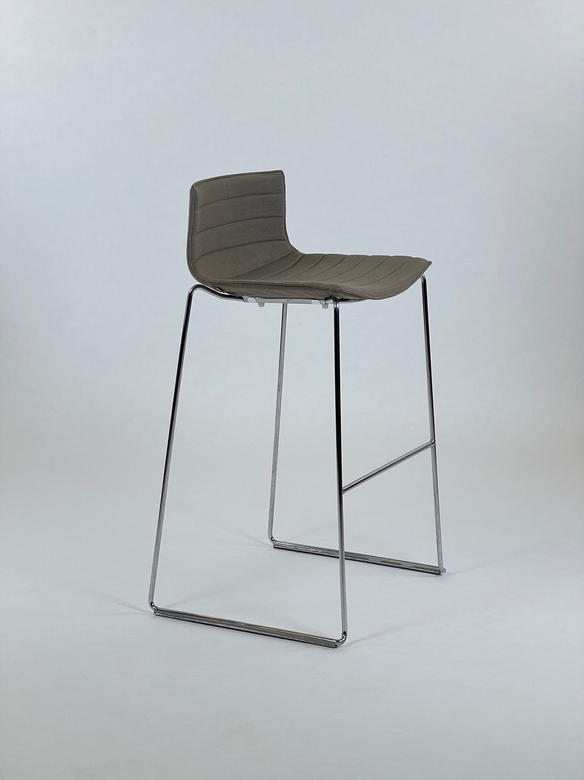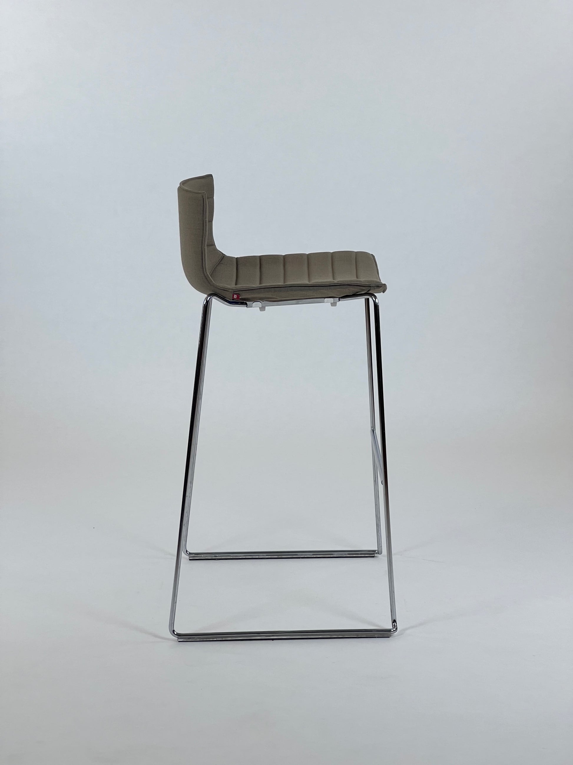 Arper Catifa 46 Barstolen i denne grå, polstrede version tilbyder en perfekt balance mellem æstetik og komfort. Dens elegante udseende og praktiske design gør den til et fremragende valg til både private og kommercielle rum, hvor både stil og funktionalitet er vigtige.
