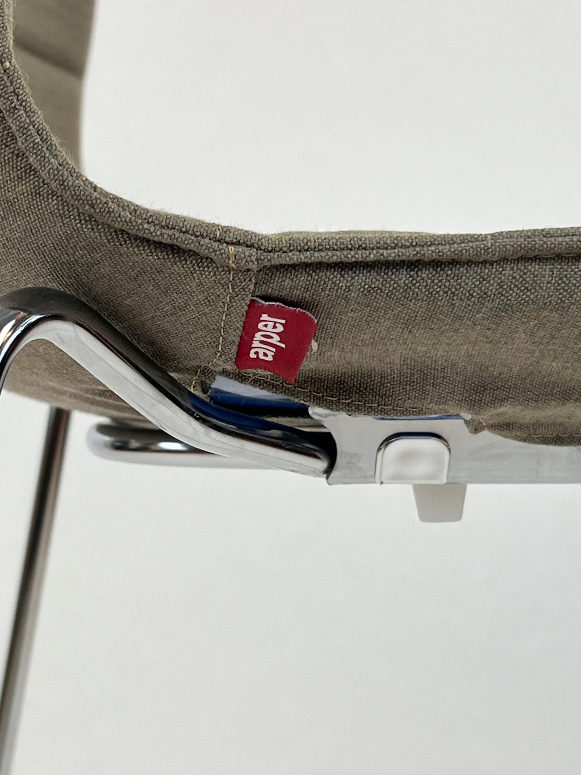 - Let at Vedligeholde: De glatte overflader på stålrammen og den polstrede sæde/ryglæn kombineret med stofbetrækket gør stolen nem at vedligeholde. Sædet kan rengøres med en fugtig klud og en mild sæbeopløsning.