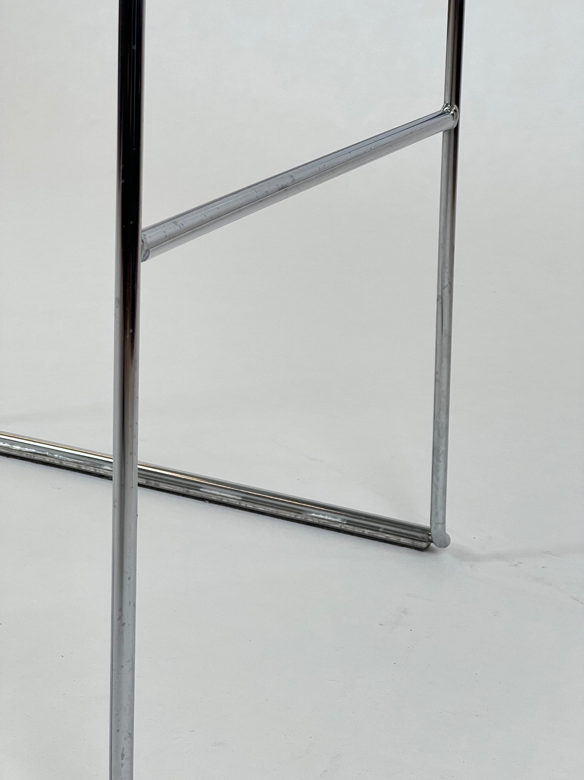 - Ben og Ramme: Barstolens ben og ramme er fremstillet af krombelagt stål, der giver et skinnende og moderne udtryk. Benene er slanke og let buede, hvilket giver stolen et let og luftigt udseende.