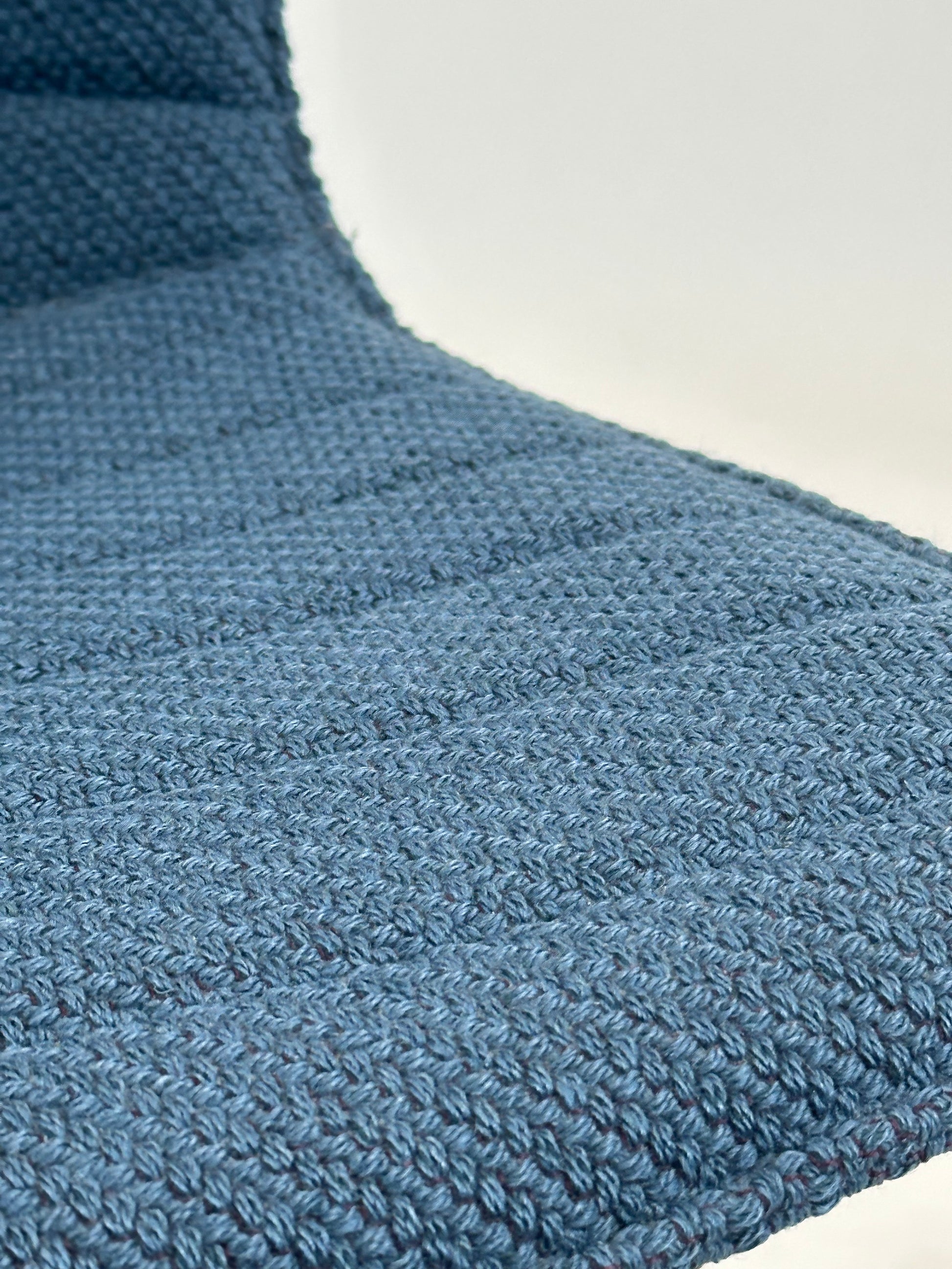 ✔ Sæde: Polstret i et unikt og slidstærkt, blåt tekstil med vandrette syninger
