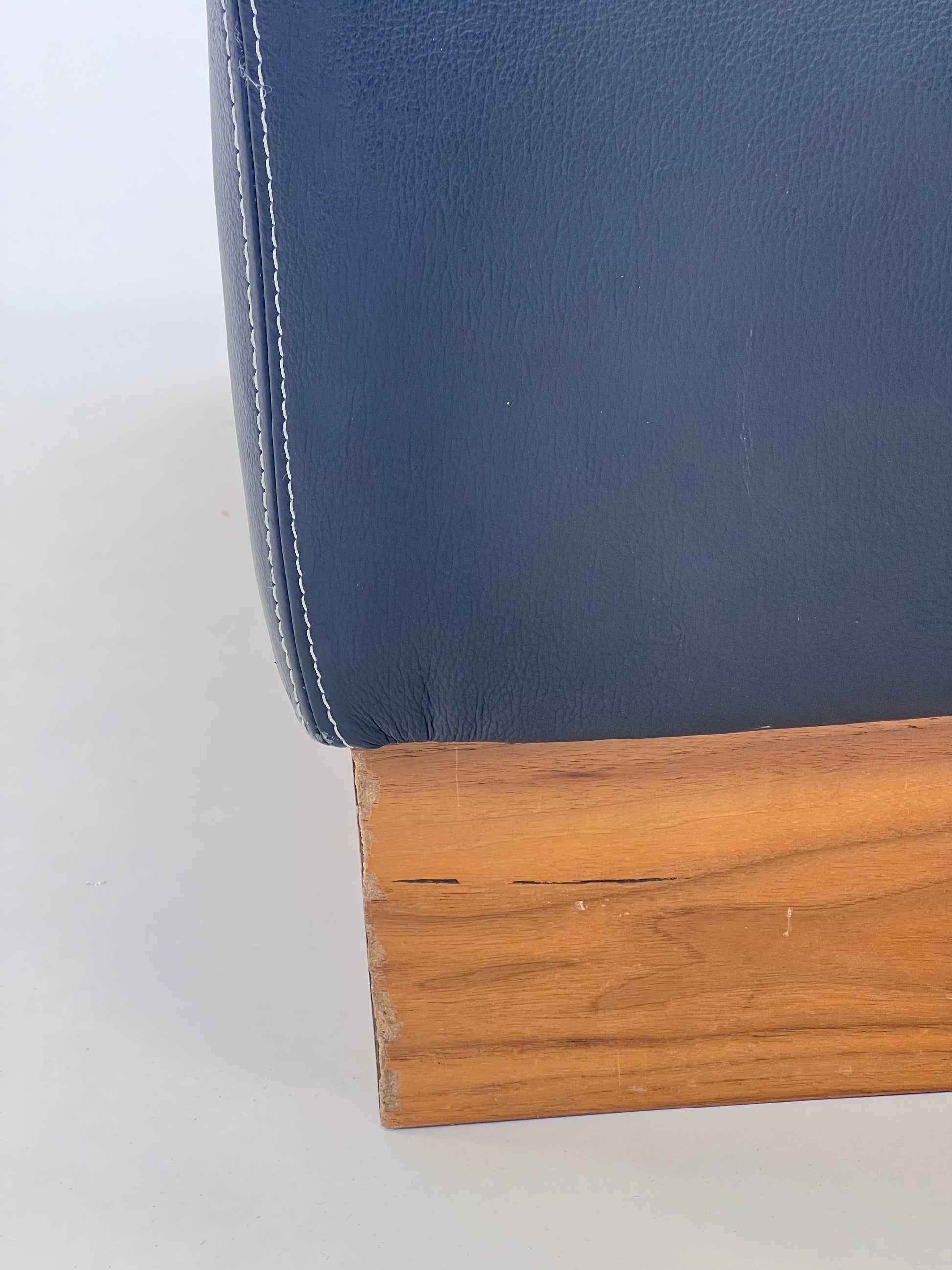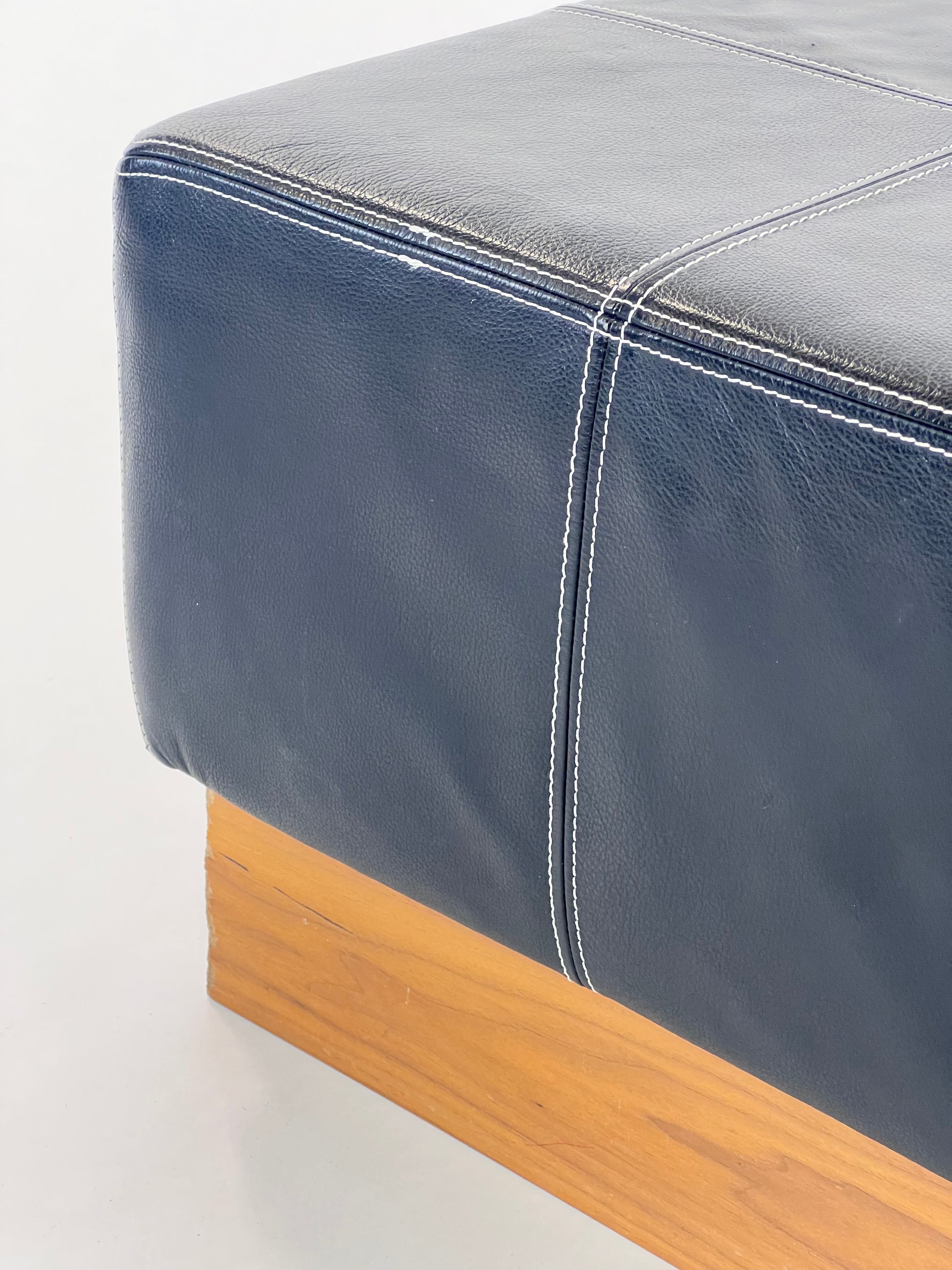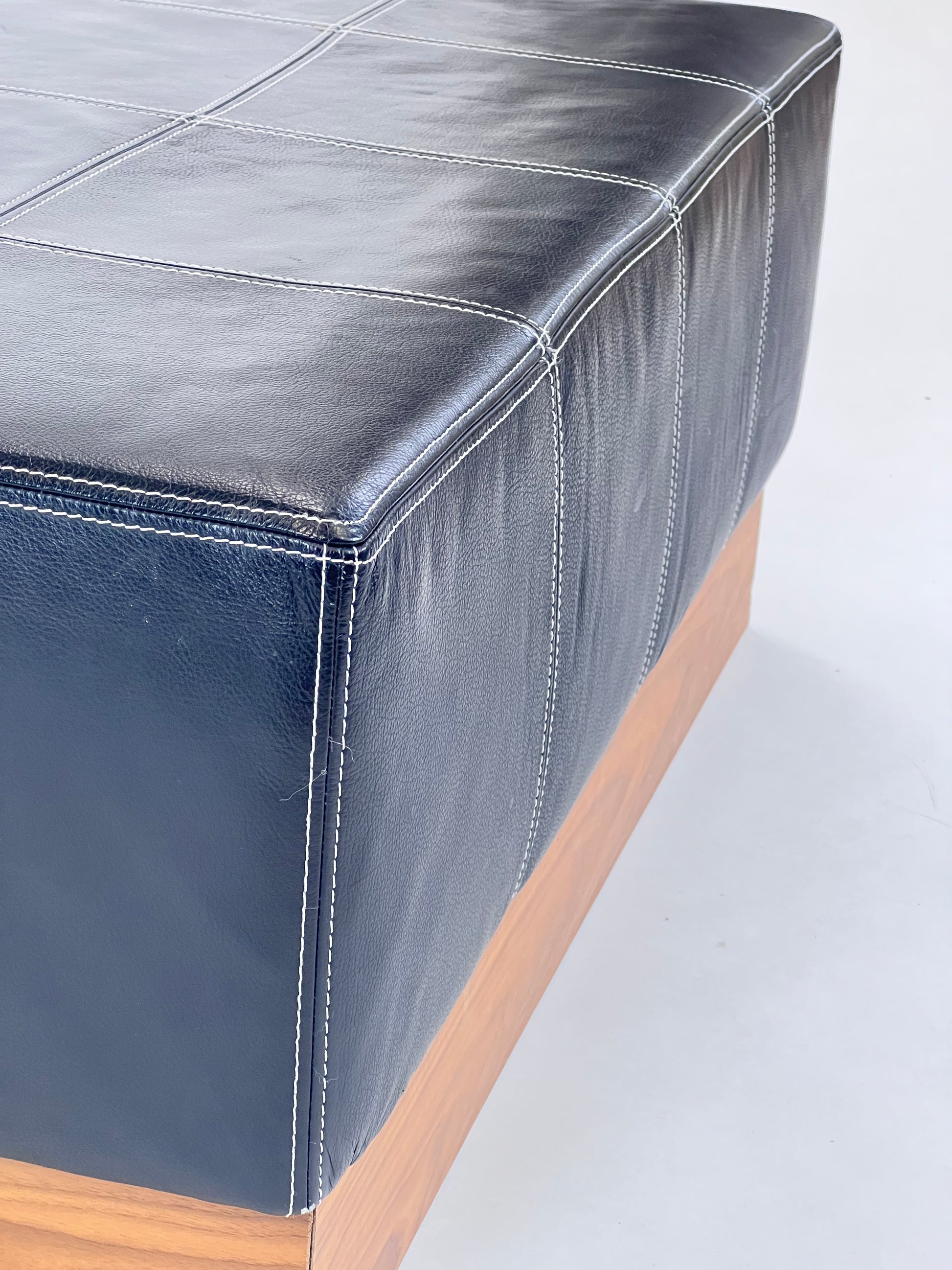 - Polstring: Bænken er betrukket med sort læder, der giver en glat og sofistikeret overflade. Læderet er udført i et kvadratisk mønster med kontrastsyninger, der tilføjer en ekstra dimension af elegance og raffinement til designet.