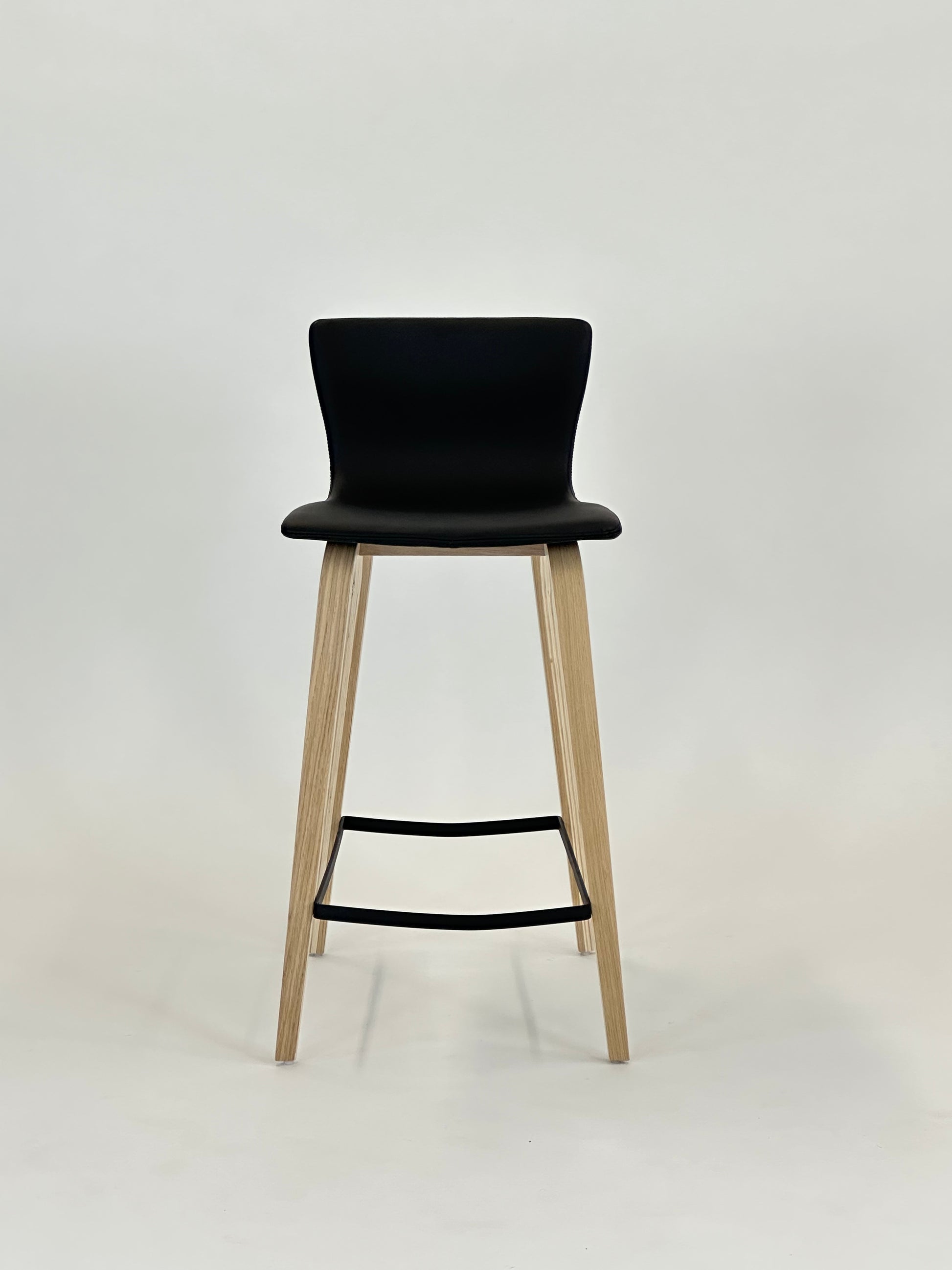 - Sæde & ryg: Sæde betrukket med sort læder, der giver optimal støtte og komfort.