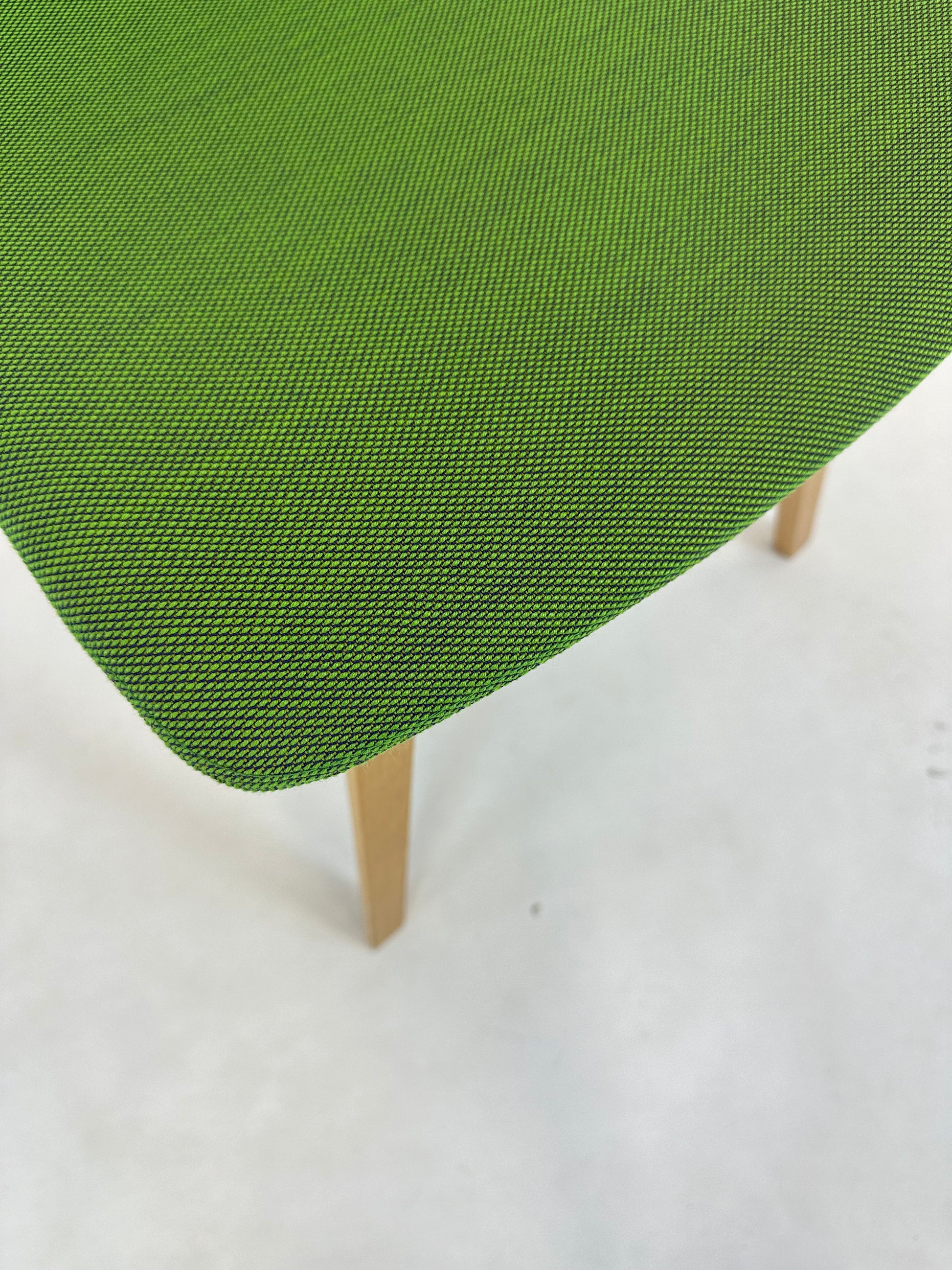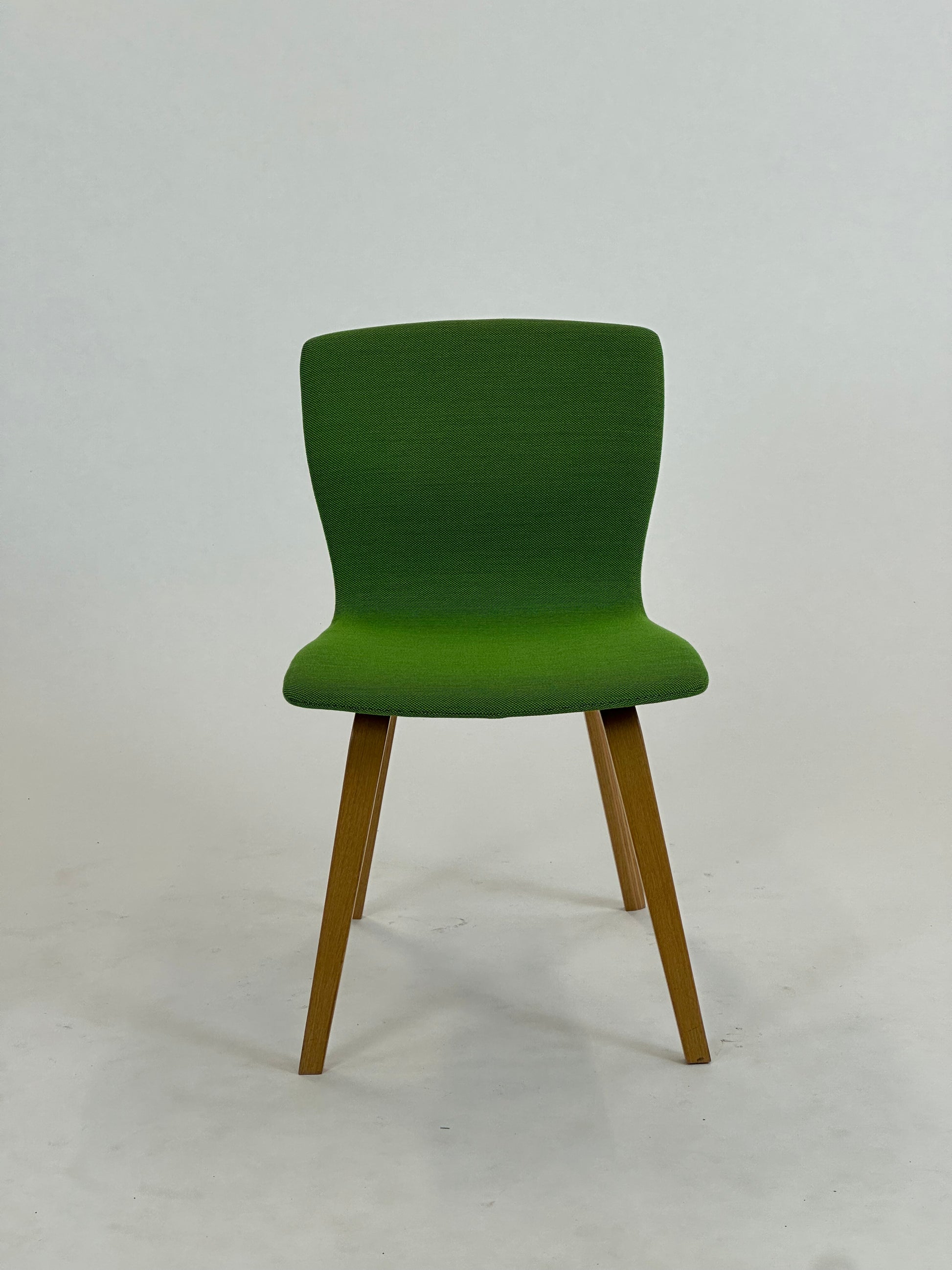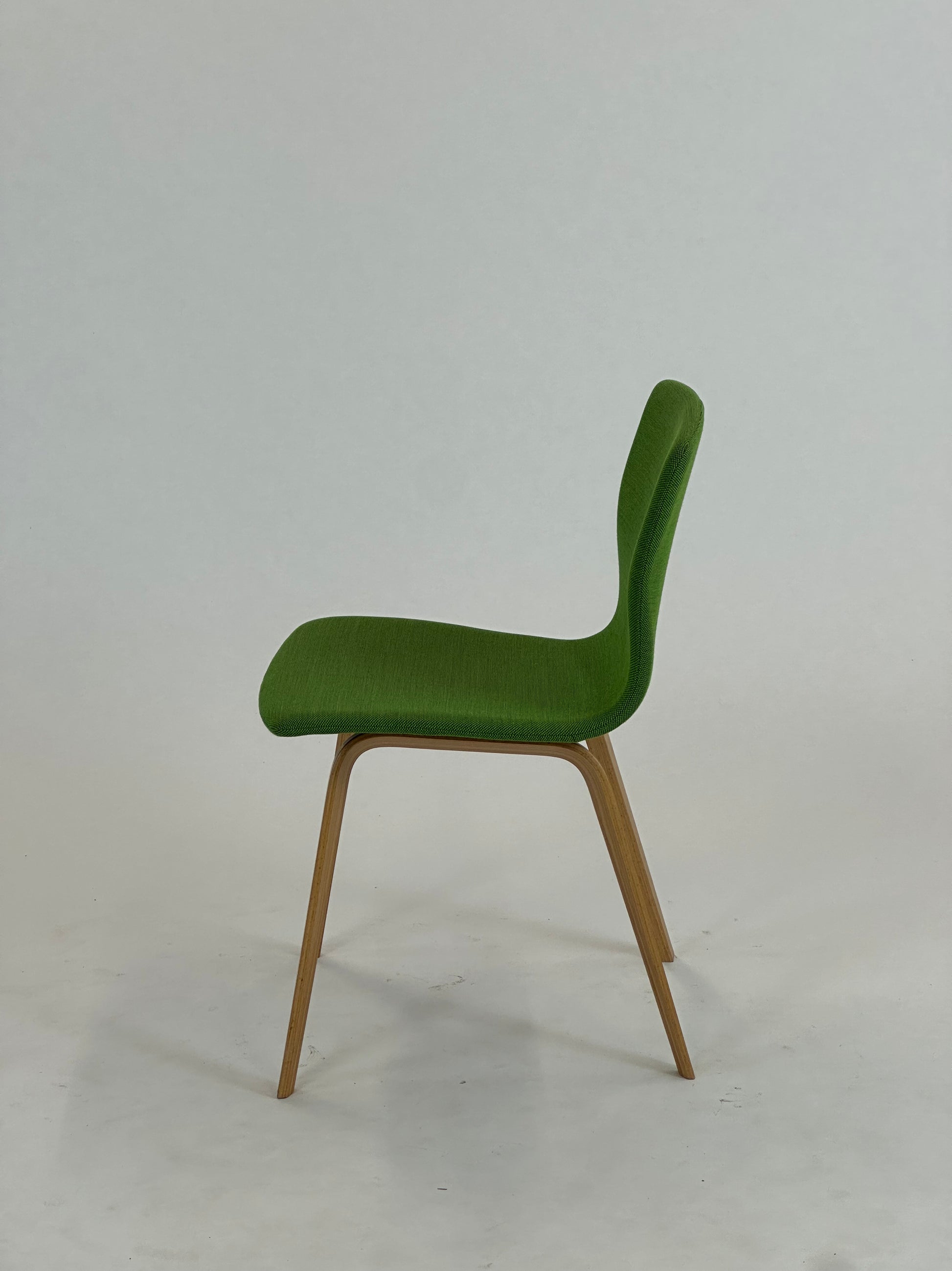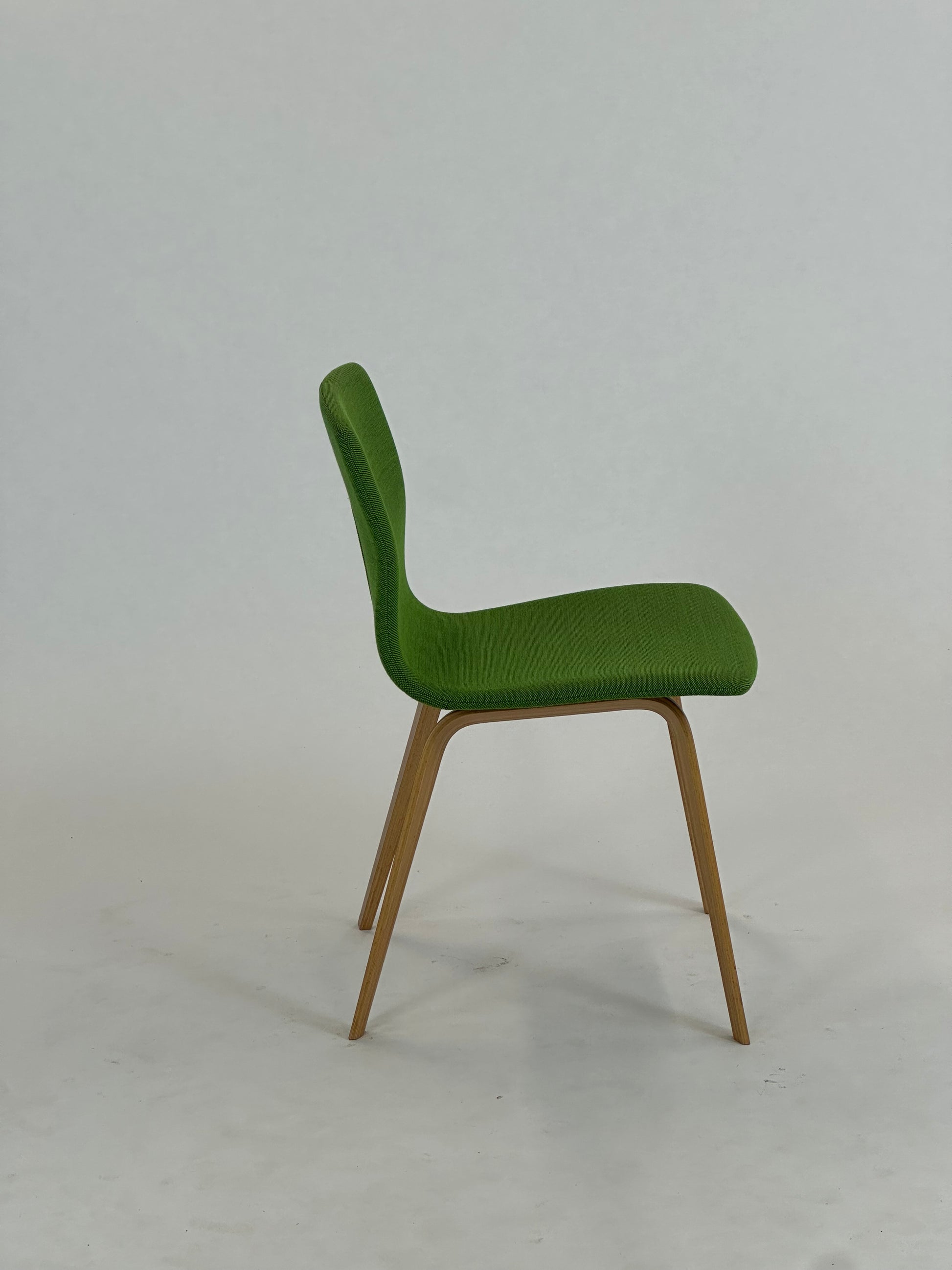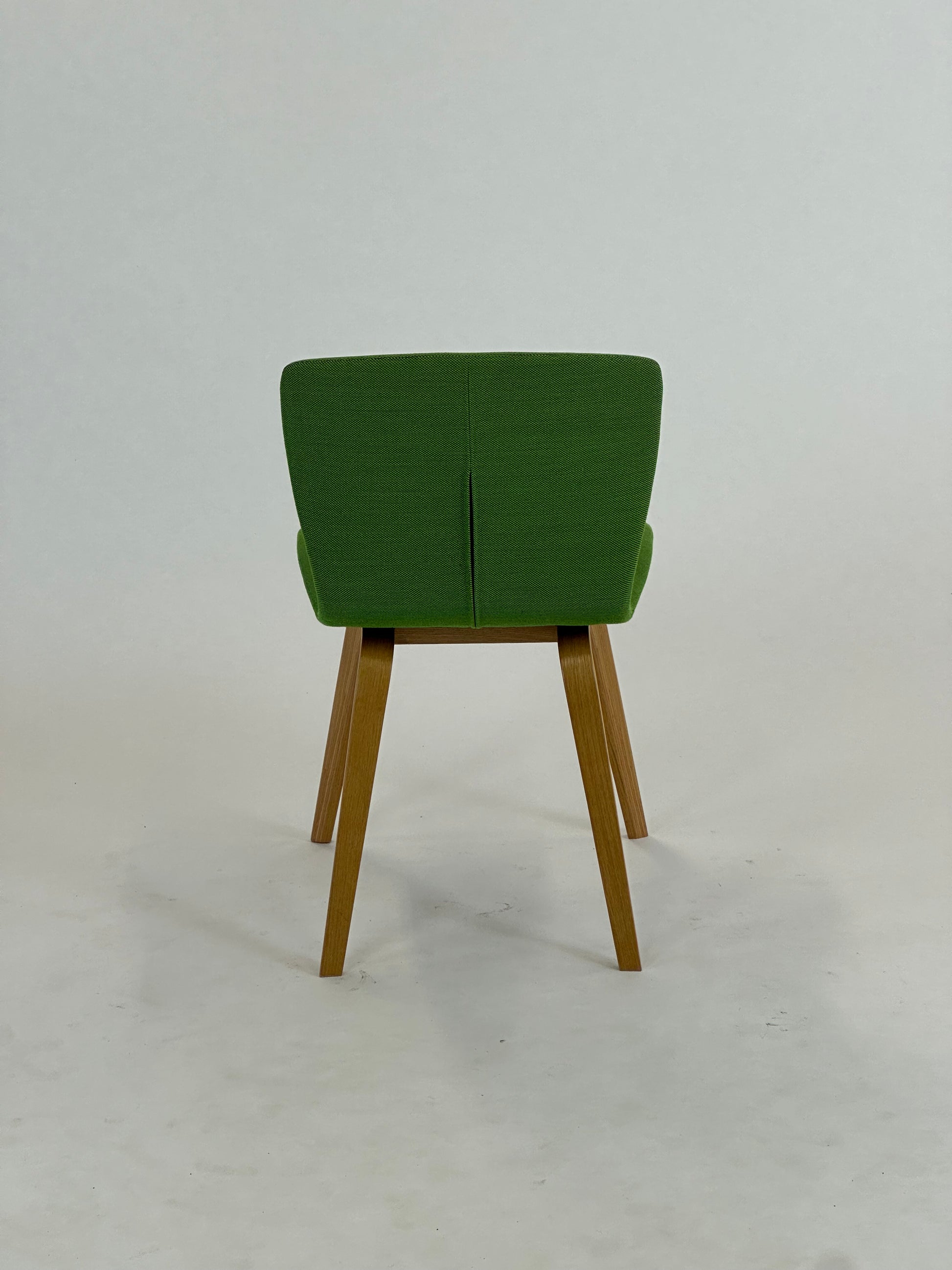 - Farve: Stolen er polstret i en let grøn nuance, der giver et klassisk og roligt udtryk.