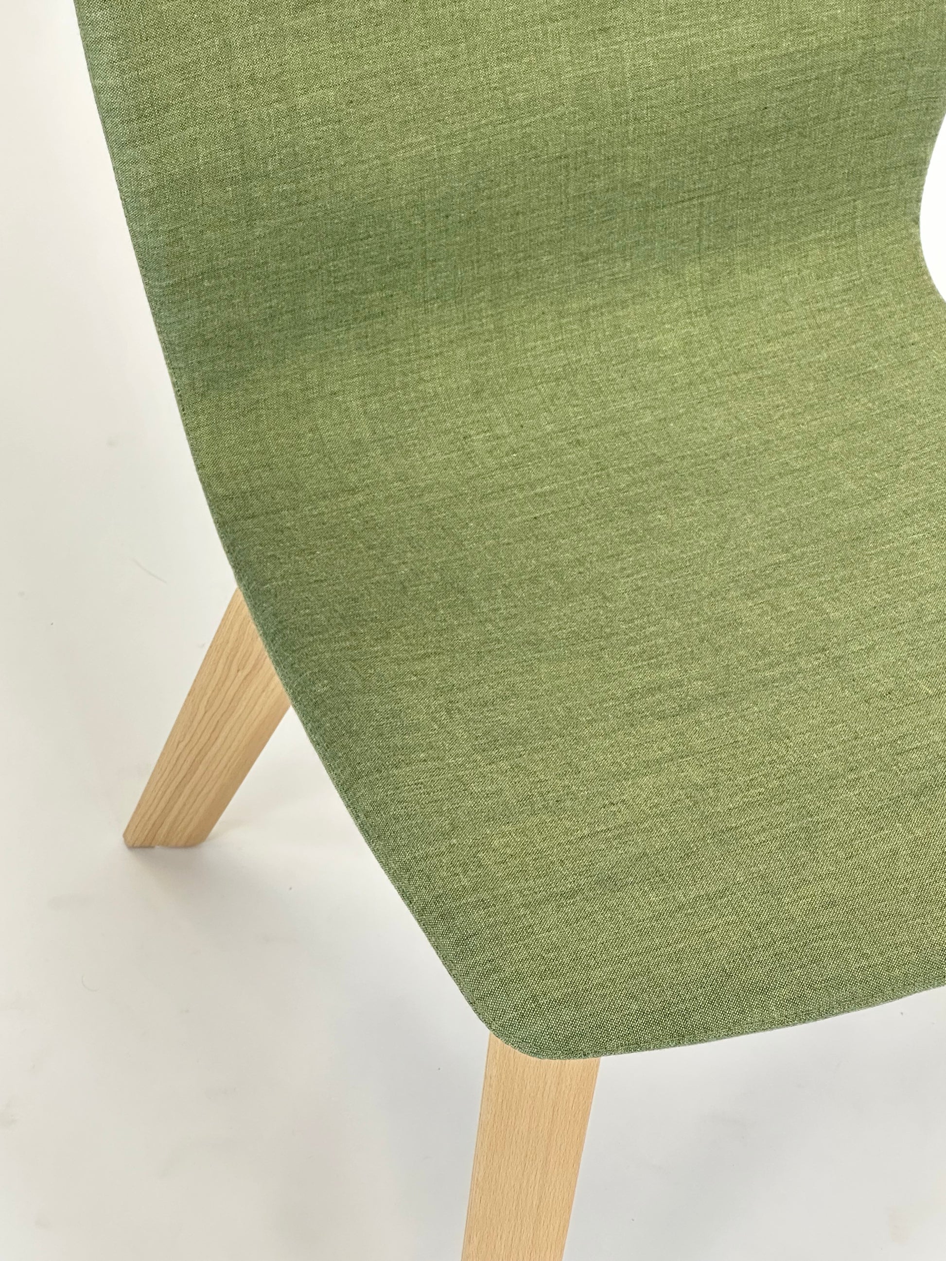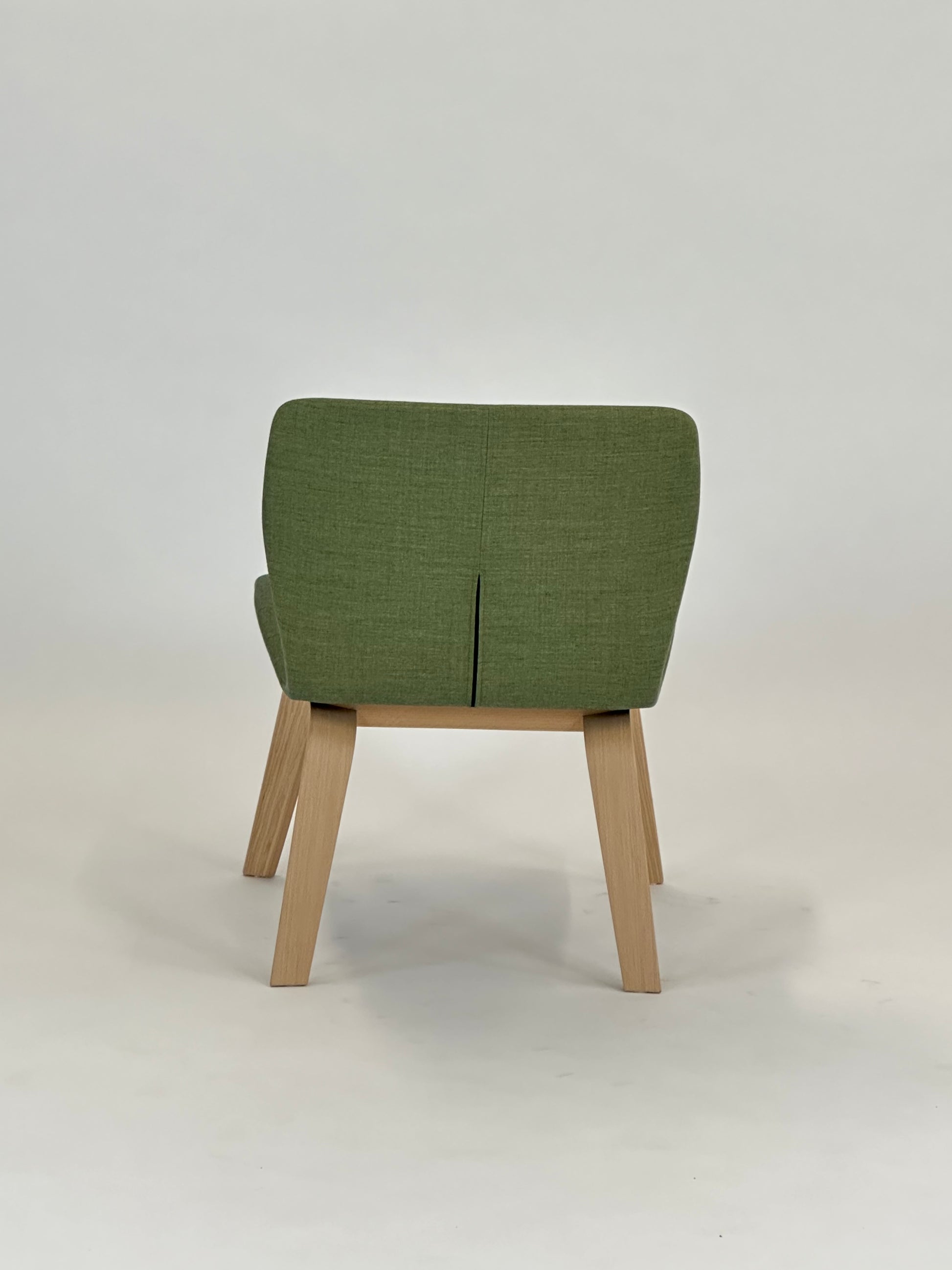 - Sæde & ryg: Polstret i et let grønt kvalitetsstof, der giver en eksklusiv og indbydende siddeoplevelse.