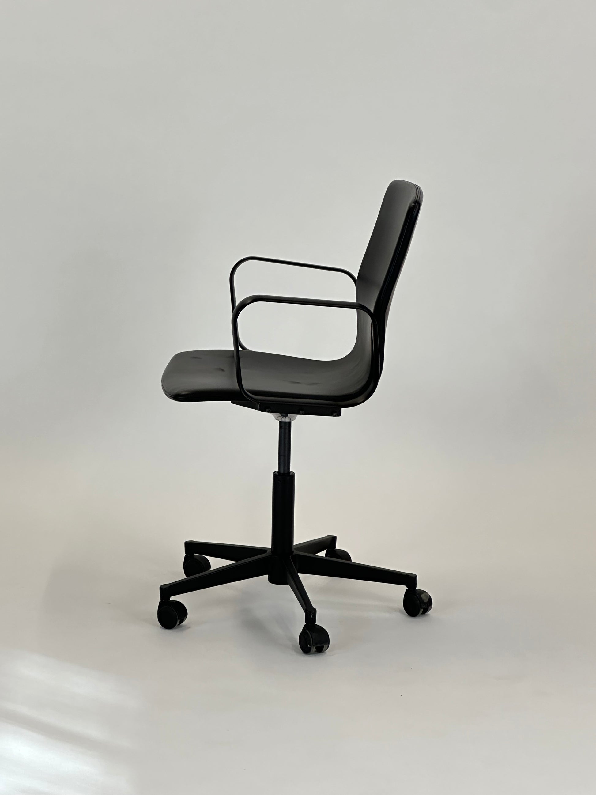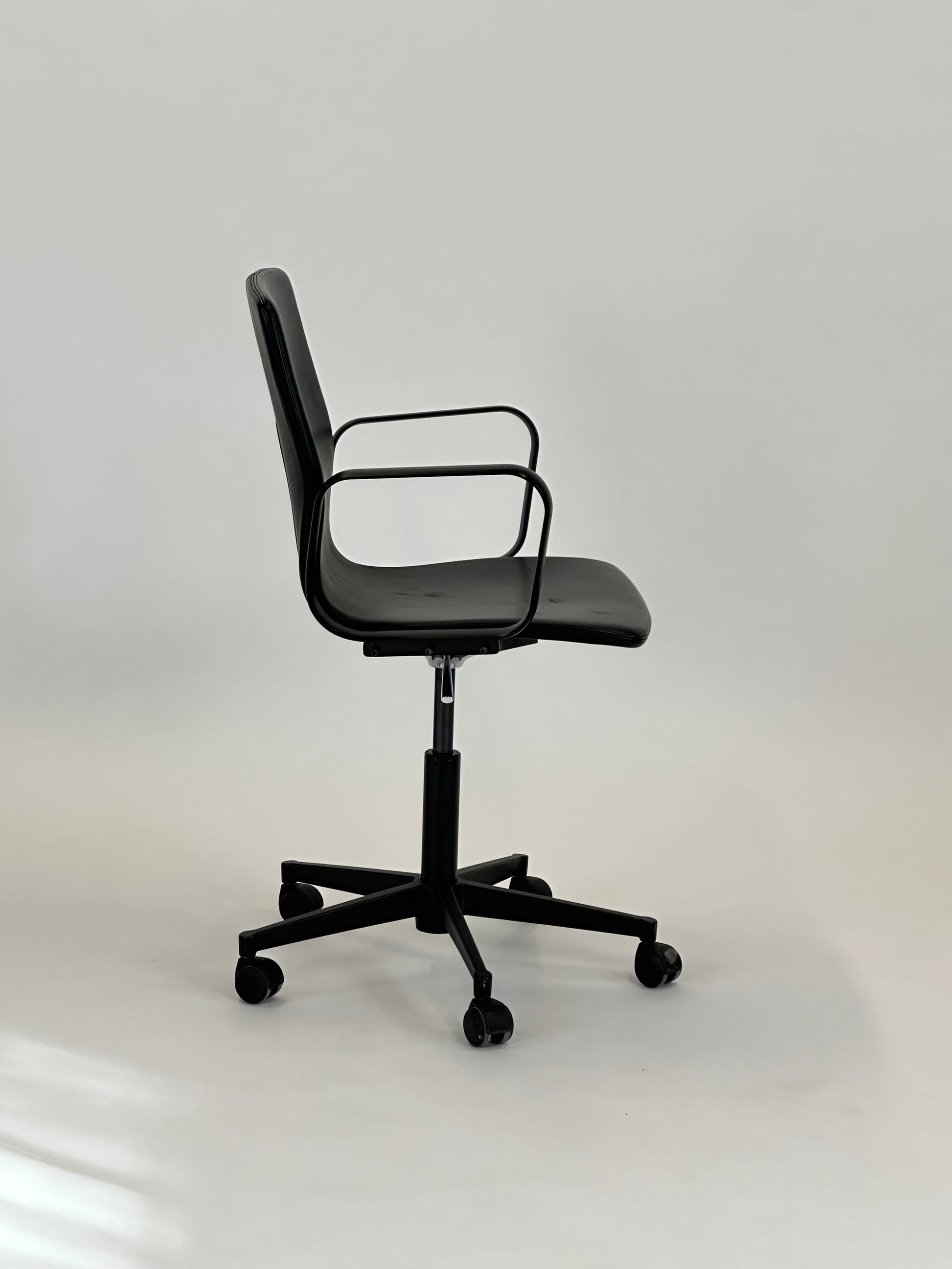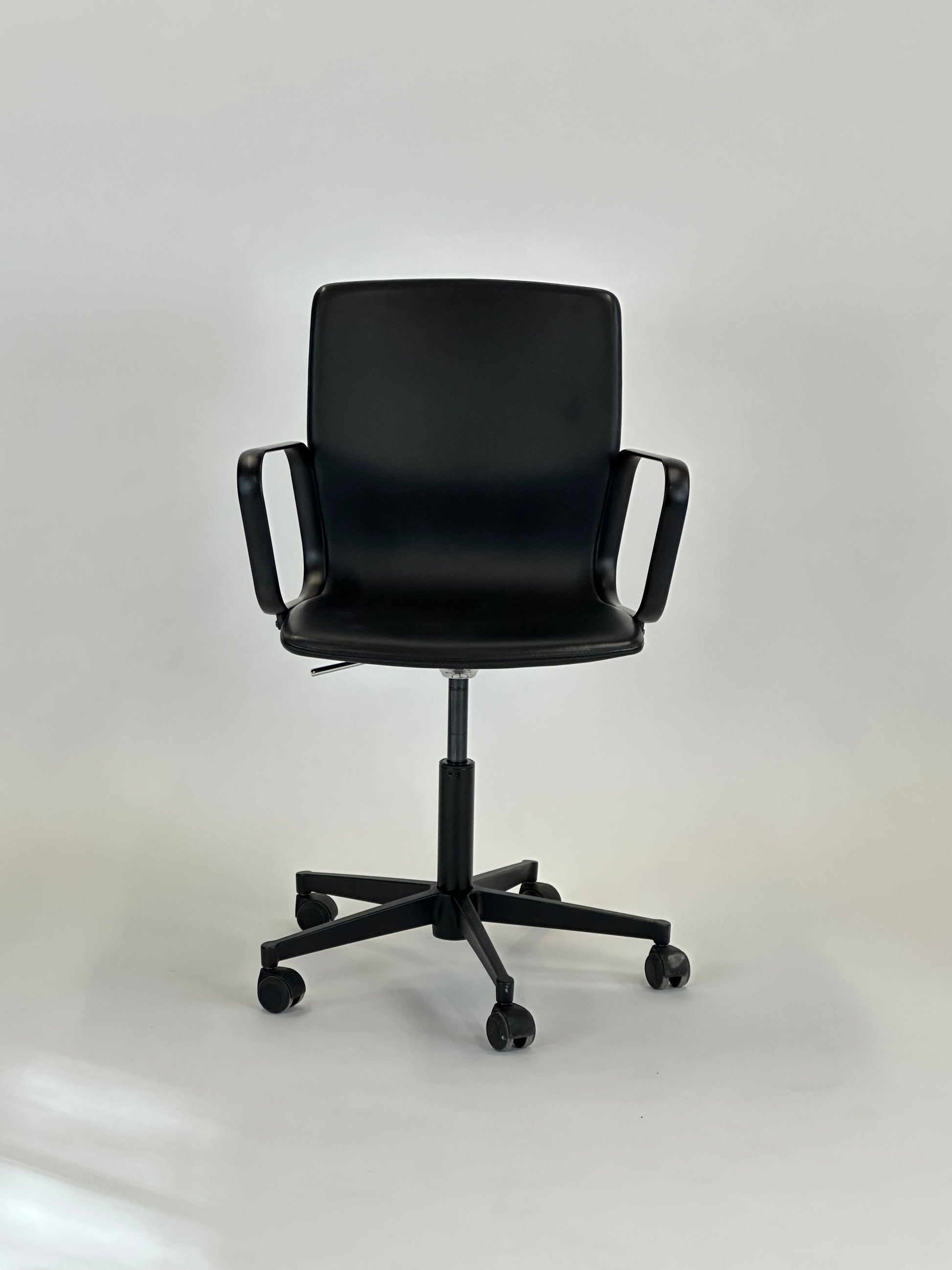 - Sæde & ryg: Fremstillet i sort læder med en let fleksibilitet, der sikrer en ergonomisk korrekt siddeoplevelse.
