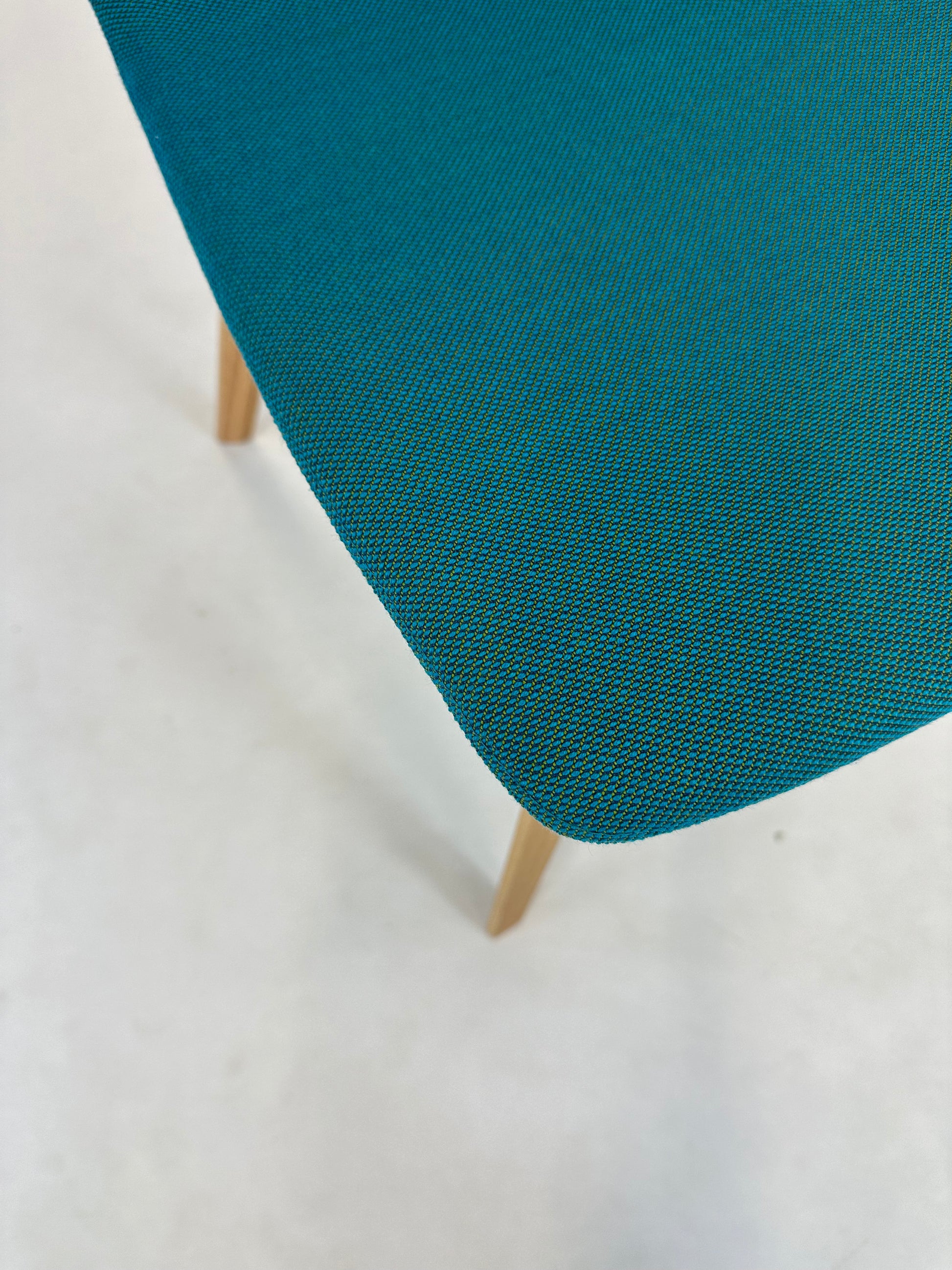 - Farve: Stolen er polstret i en let turkis nuance, der giver et klassisk og roligt udtryk.