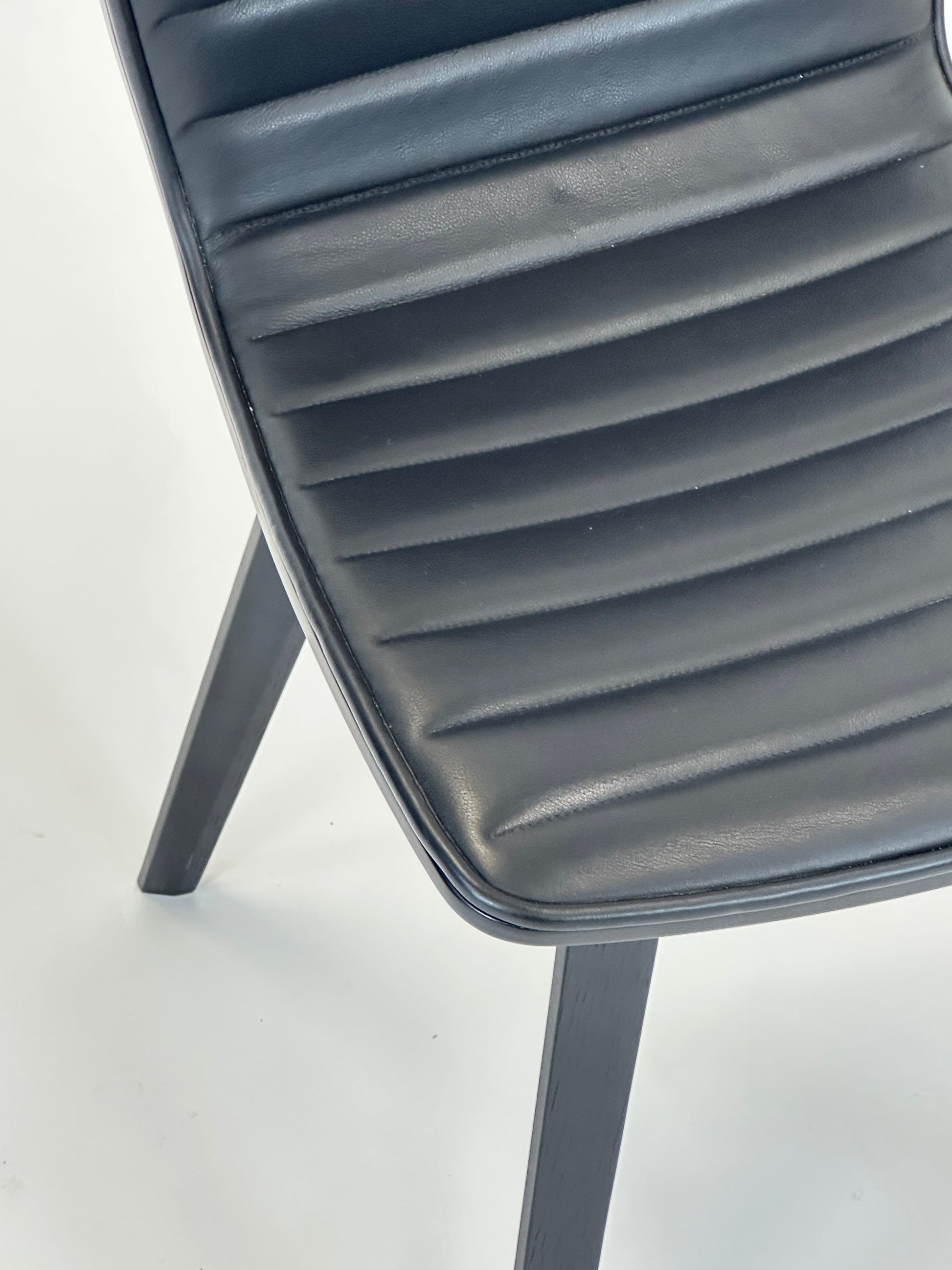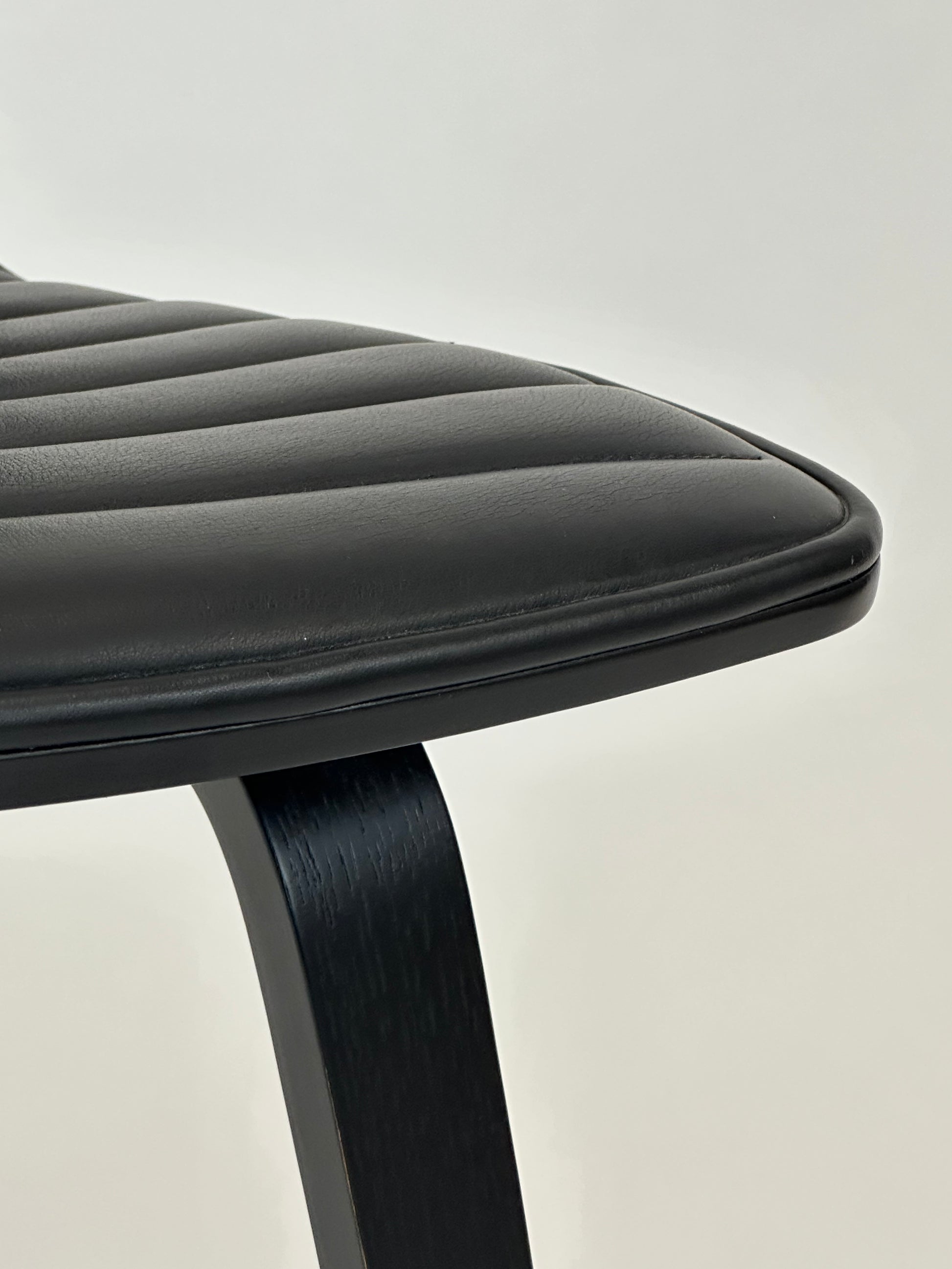 - Sæde og Ryg: Sort læder sæde med vandrette syninger, der tilfører en elegant og moderne detalje.