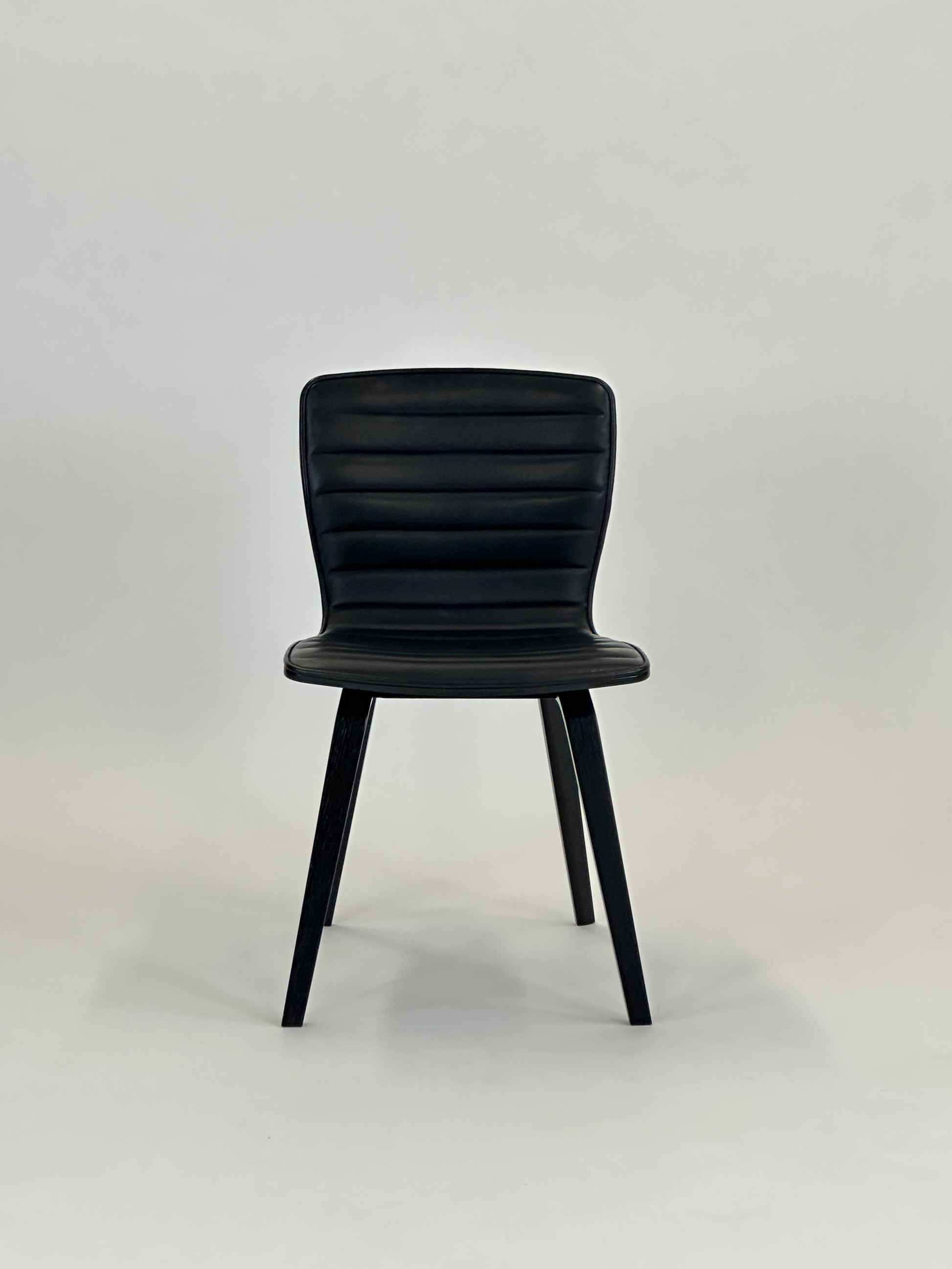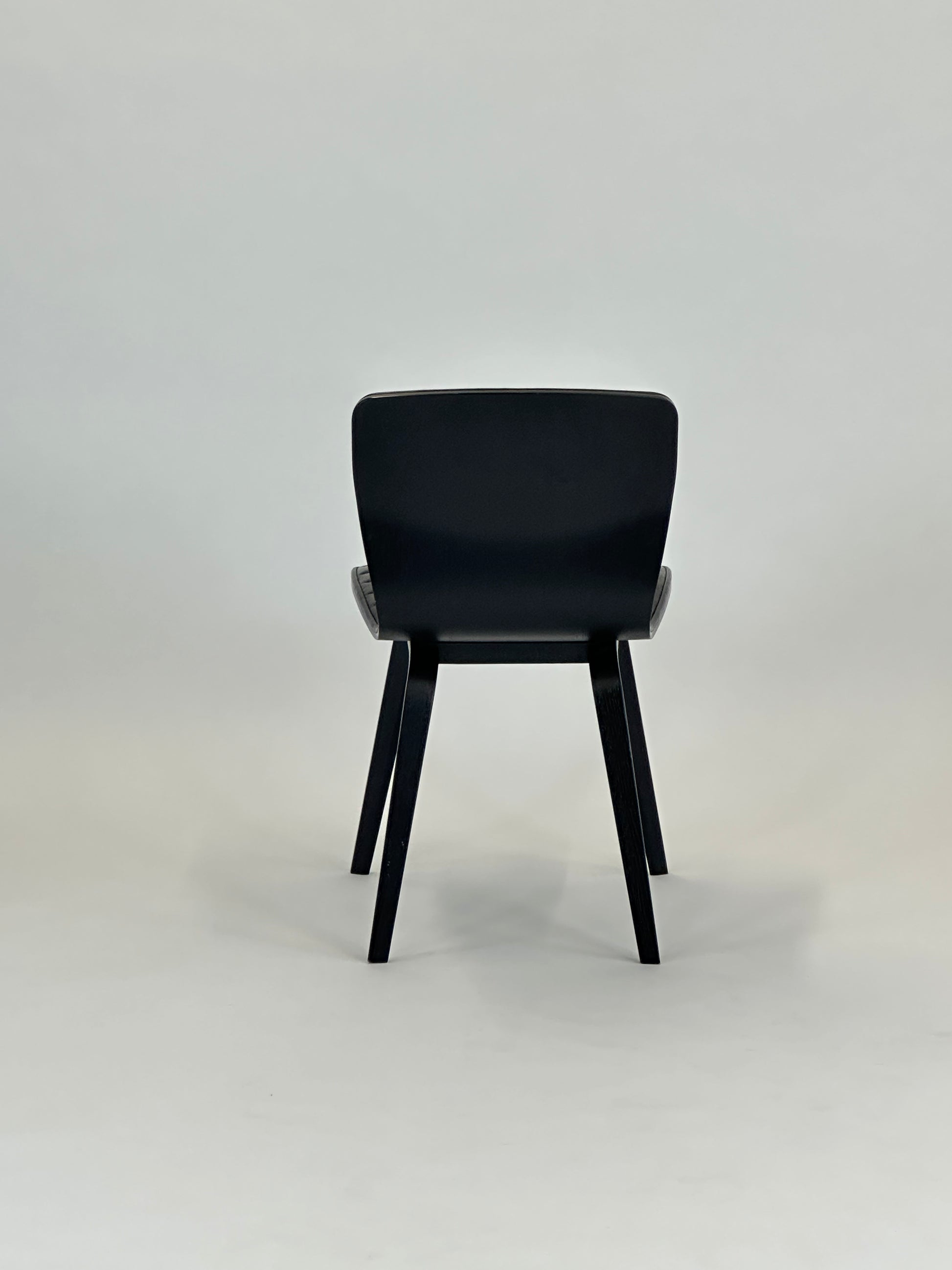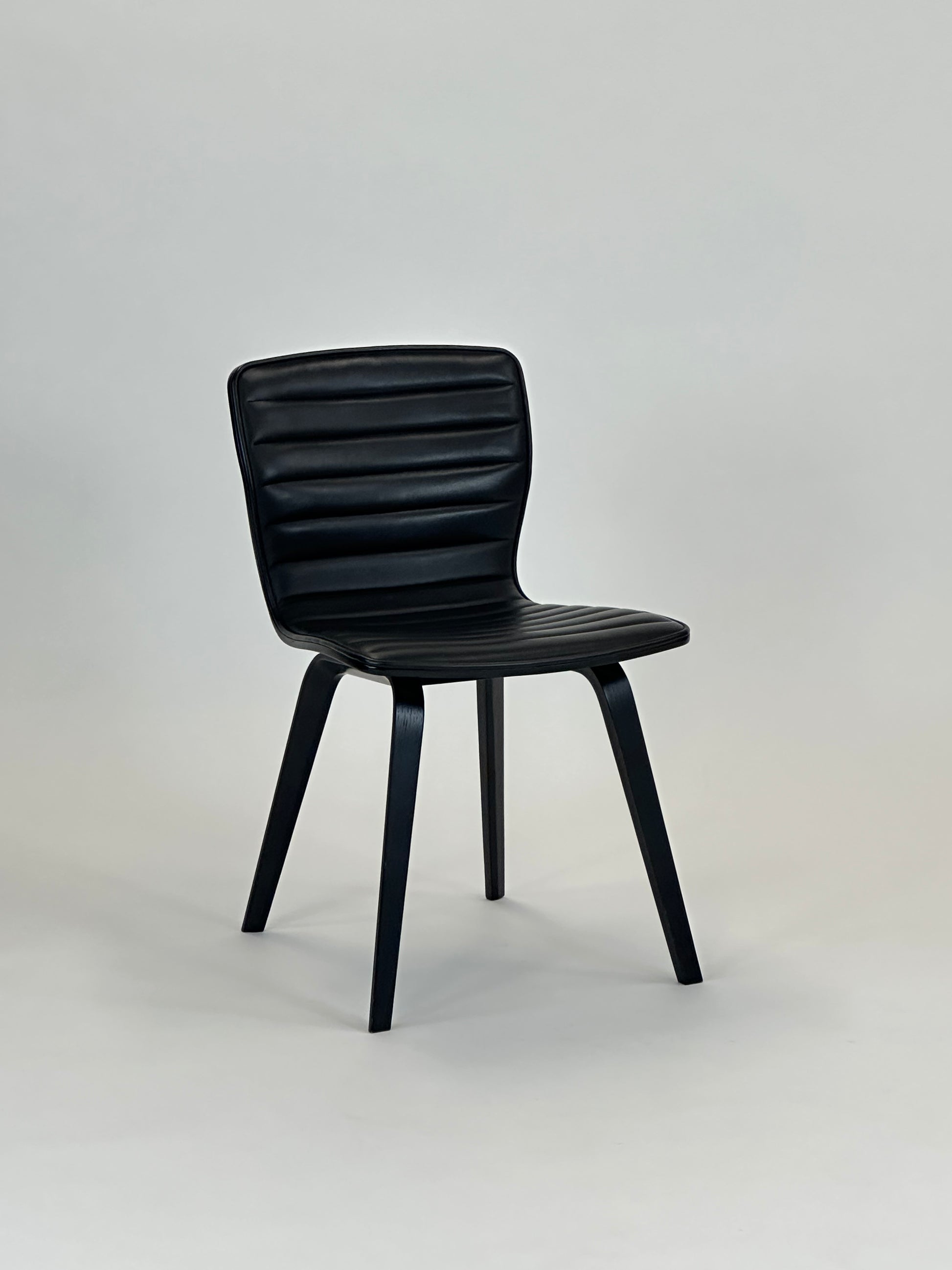 - Ben: Sortlakerede træben, der understøtter stolens lette og eksklusive design.