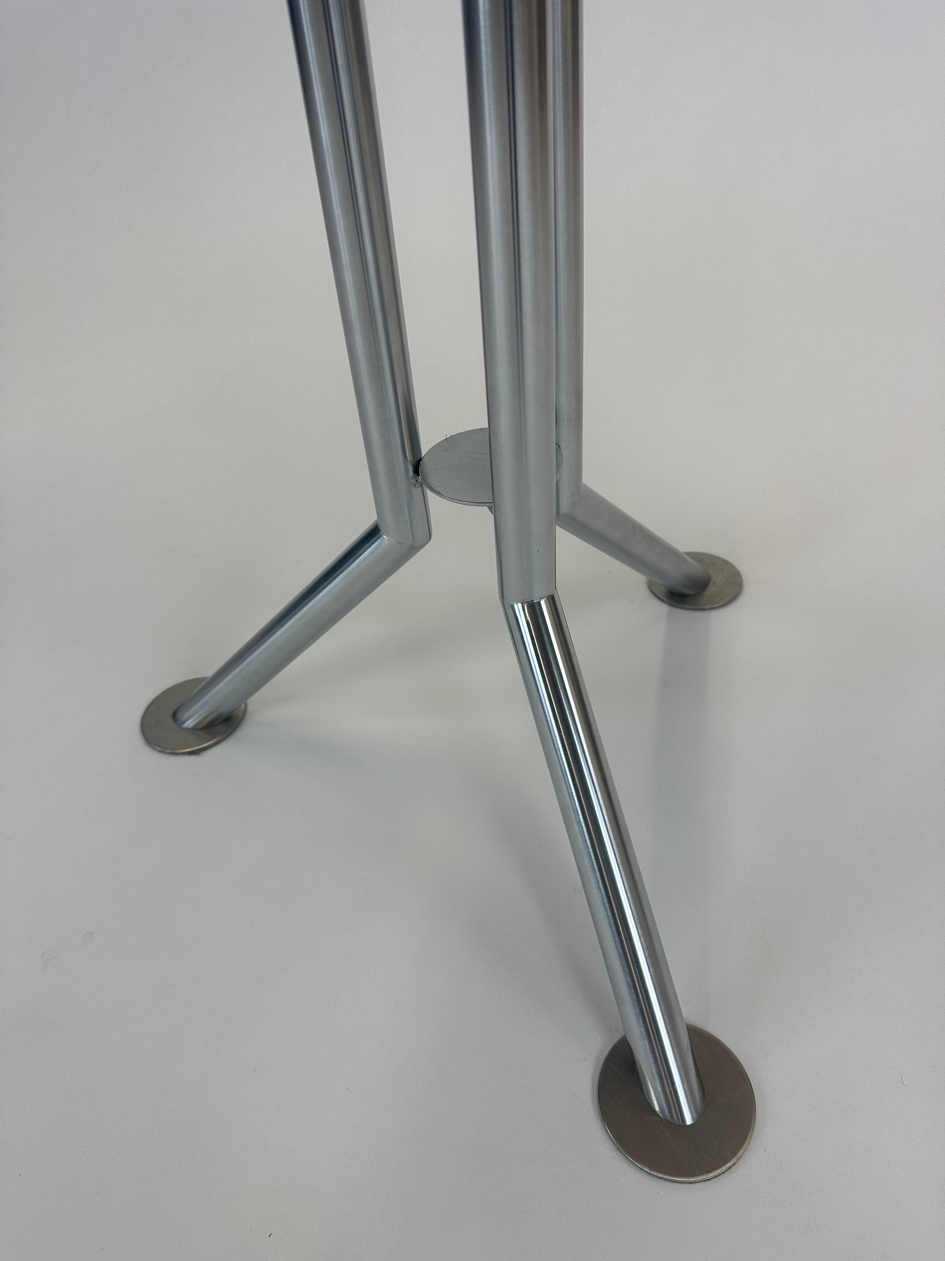 - Stel: Krombelagt stålstel med tre elegante ben, der sikrer både stabilitet og et let, moderne udtryk.