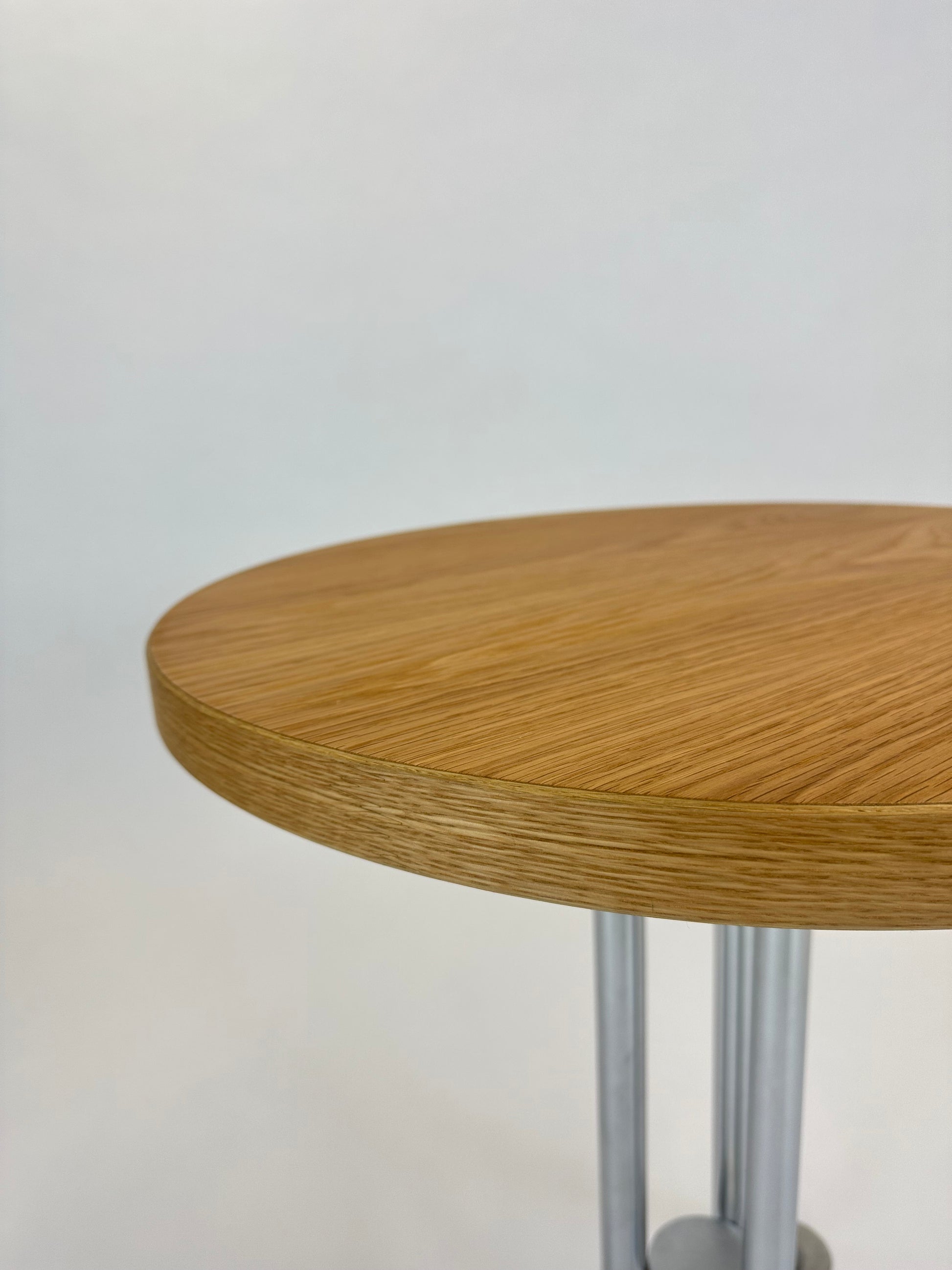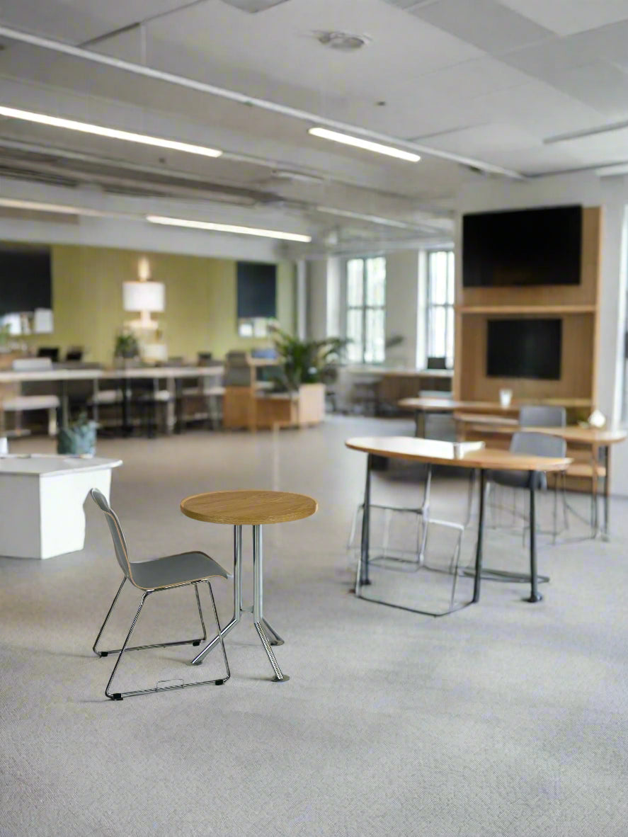 Dette kantinebord fra Magnus Olesen kombinerer skandinavisk design med holdbarhed og funktionalitet. Med sin runde bordplade i træ og et stilrent kromstel passer bordet perfekt ind i både kantiner, caféer, mødelokaler og fællesområder.