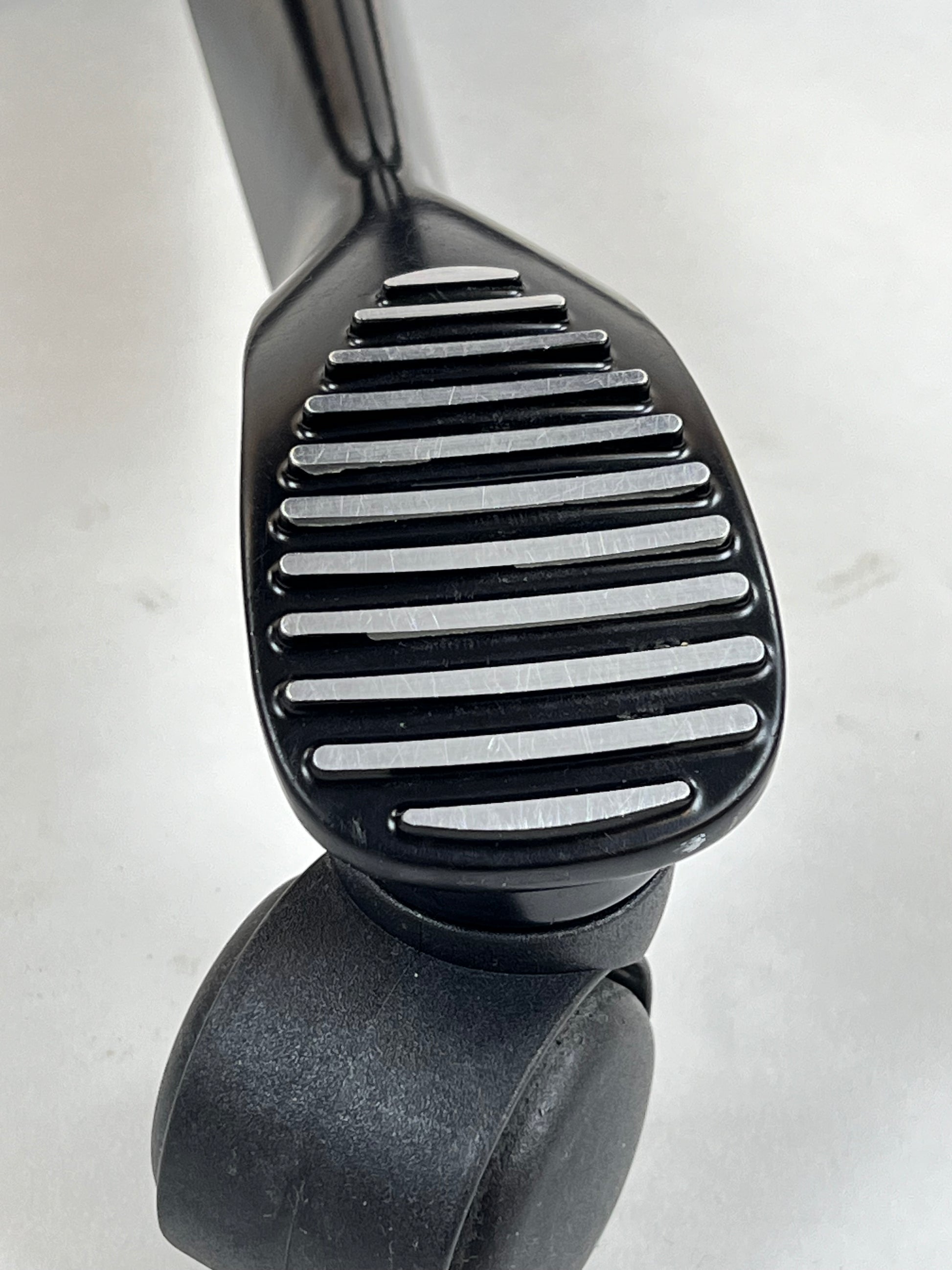 - Fodkryds: Det stilrene fodkryds i sort metal giver stabilitet og holdbarhed, mens de bløde hjul sikrer let bevægelighed på alle typer gulve.