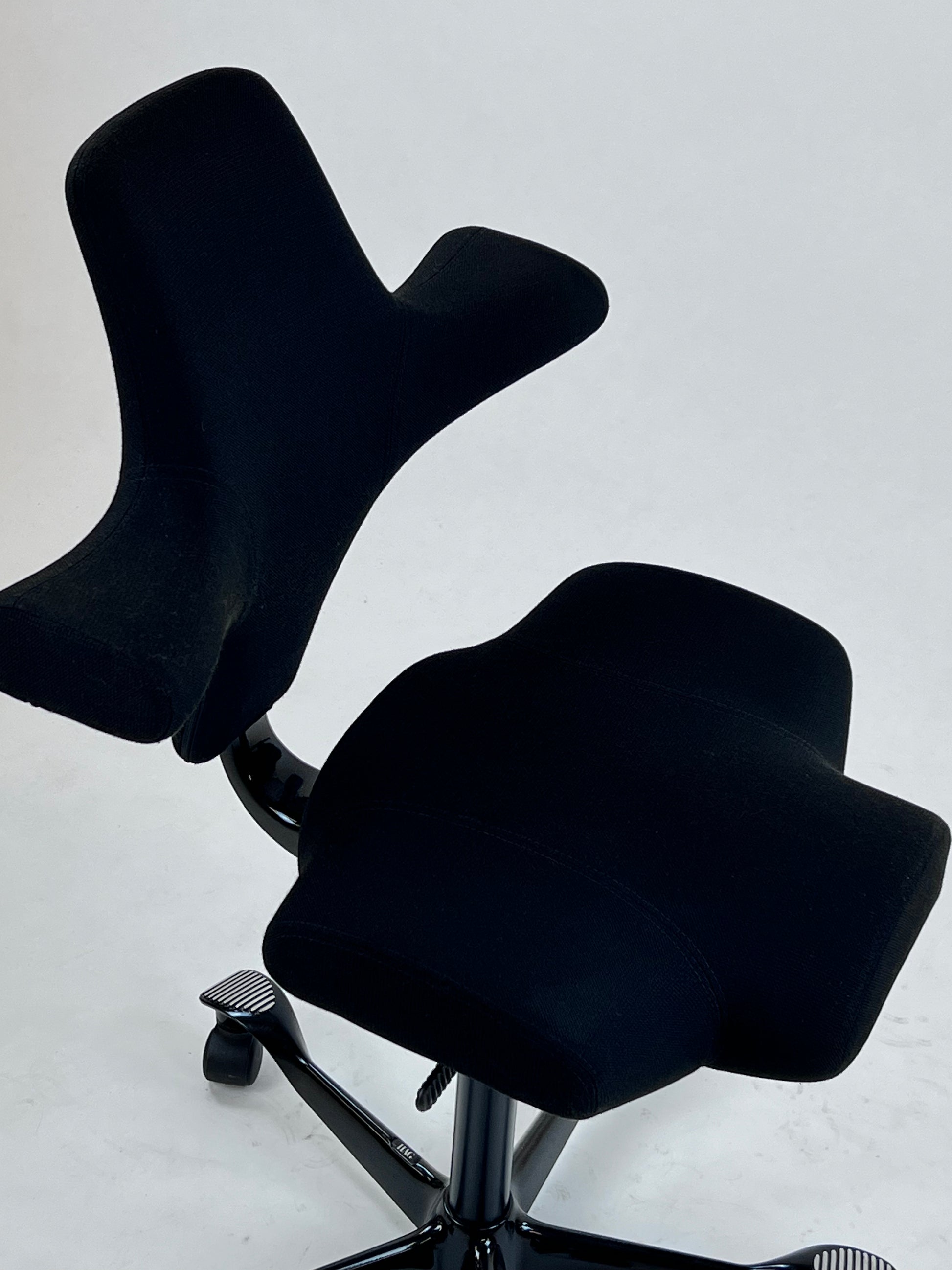 - Sadelsæde: Det unikke sædedesign gør det muligt at sidde både fremadvendt, sidelæns og baglæns, hvilket fremmer variation og aktivitet gennem hele arbejdsdagen.
