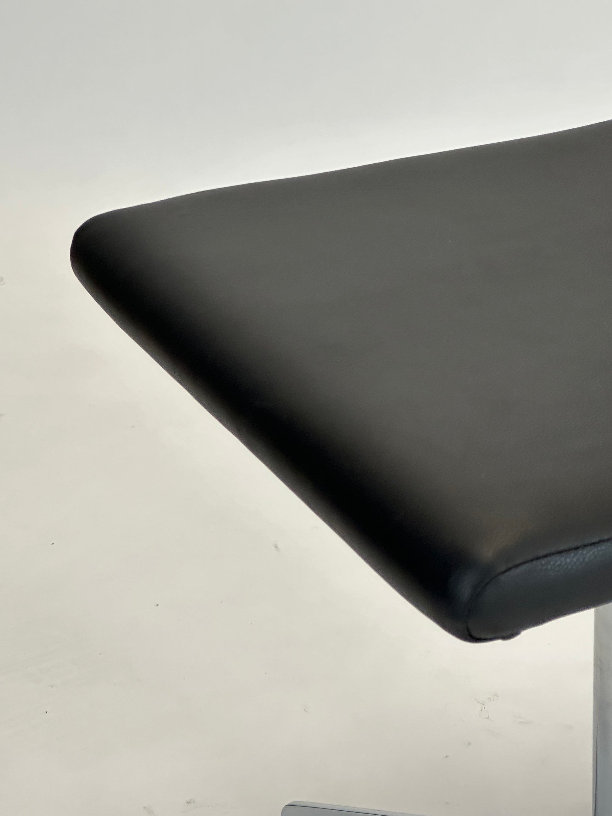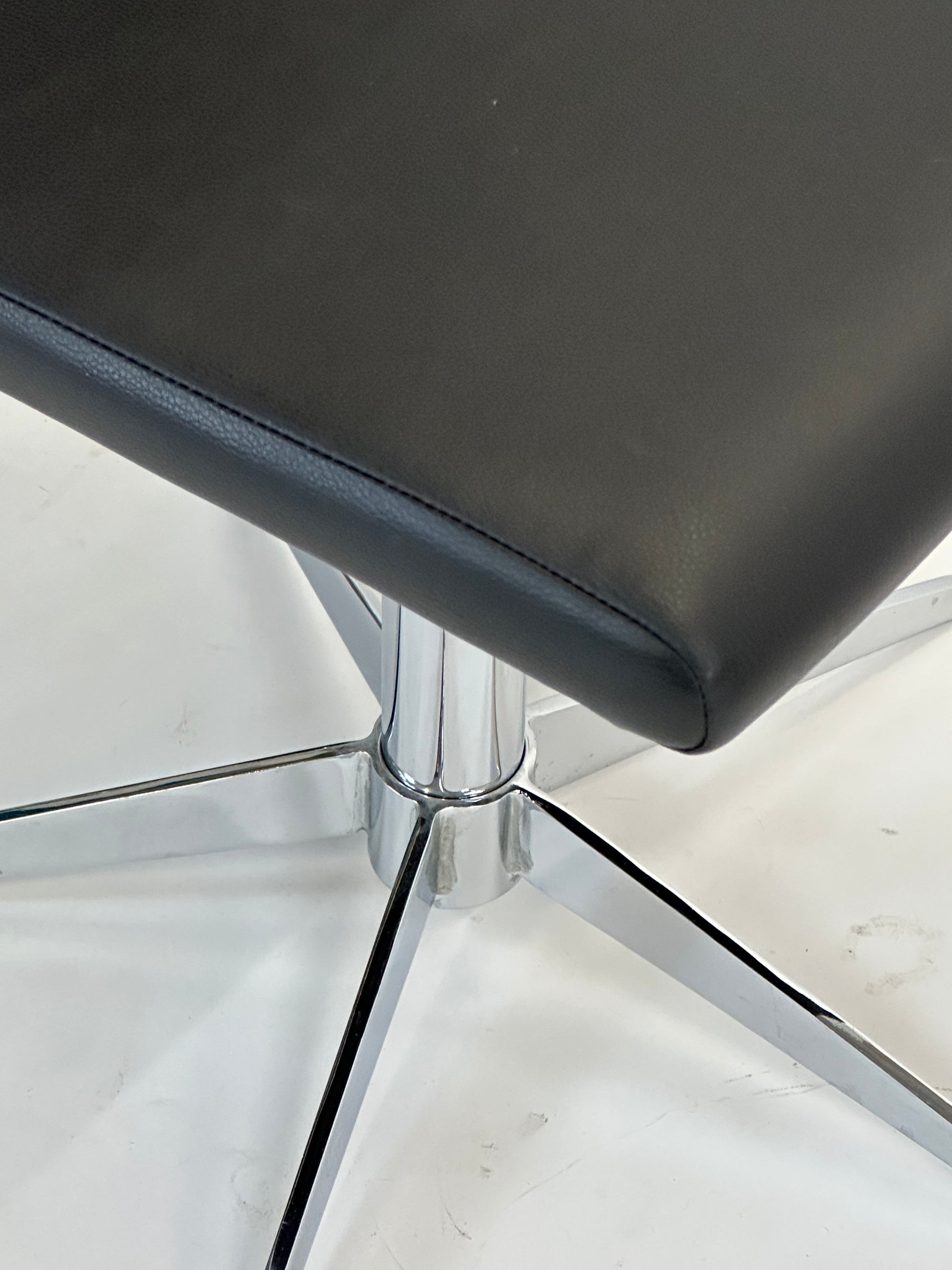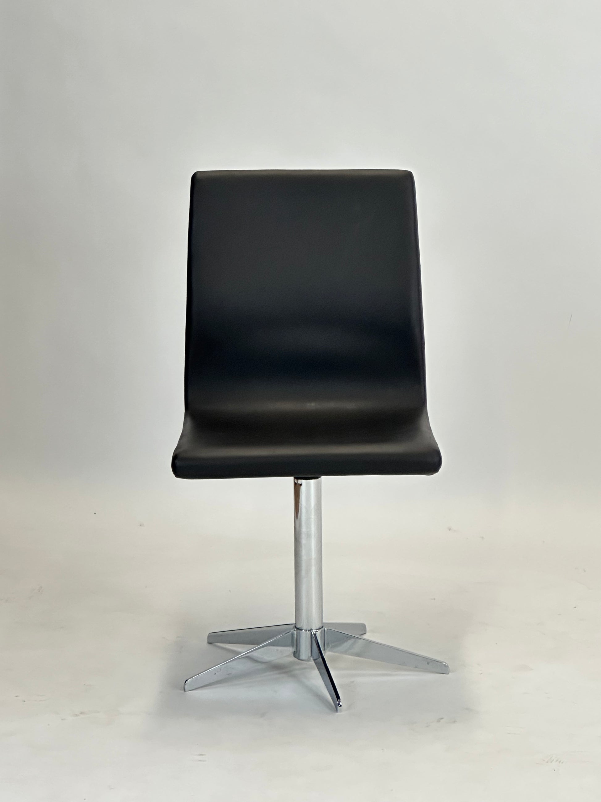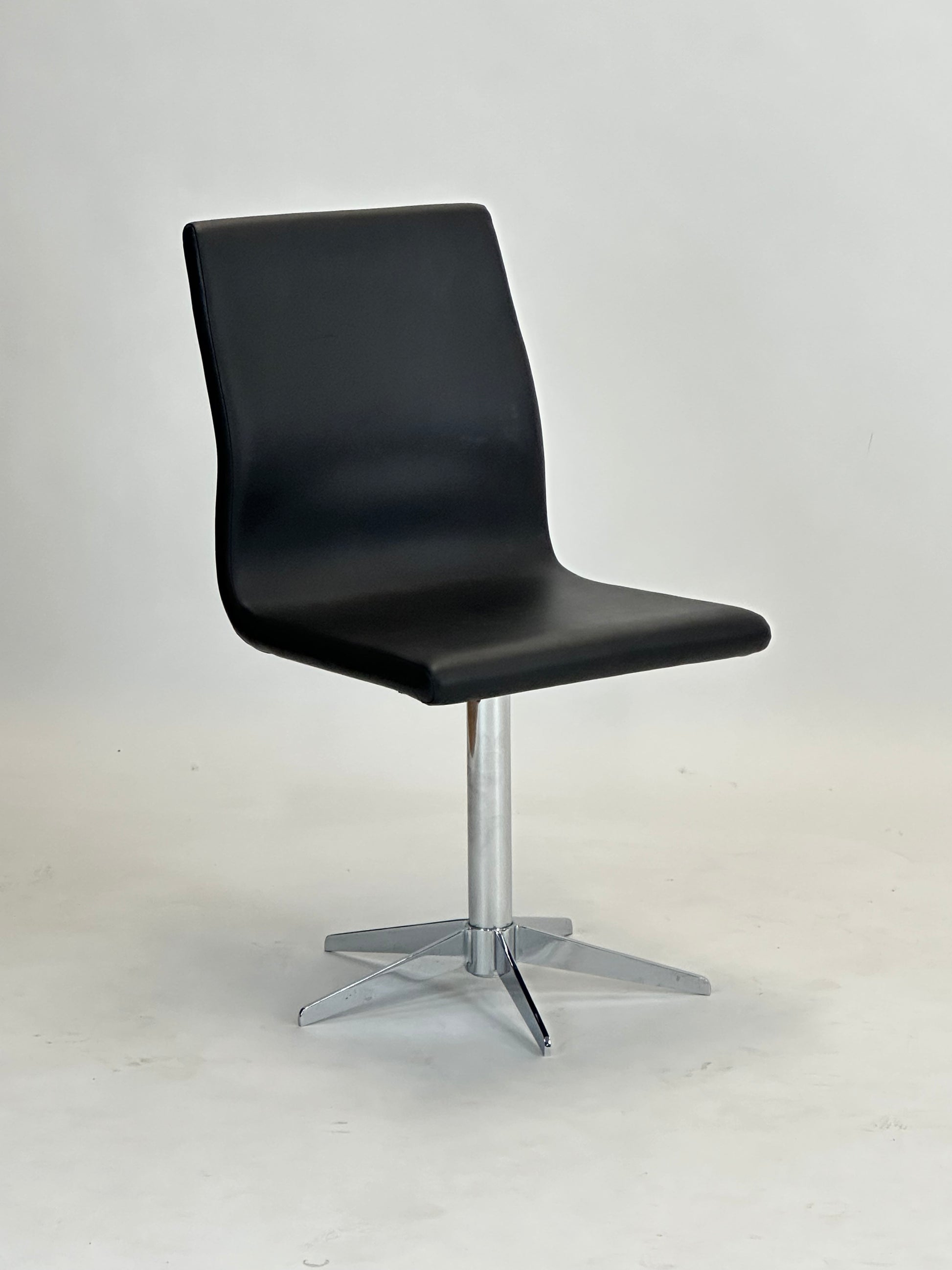 Stolen er monteret på en solid drejefod i forkromet metal, hvilket giver brugeren god bevægelsesfrihed og fleksibilitet uden at gå på kompromis med stabilitet. Designet er moderne og minimalistisk med rene linjer og høj siddekomfort – en ideel løsning til både formelle og afslappede arbejdsmiljøer.