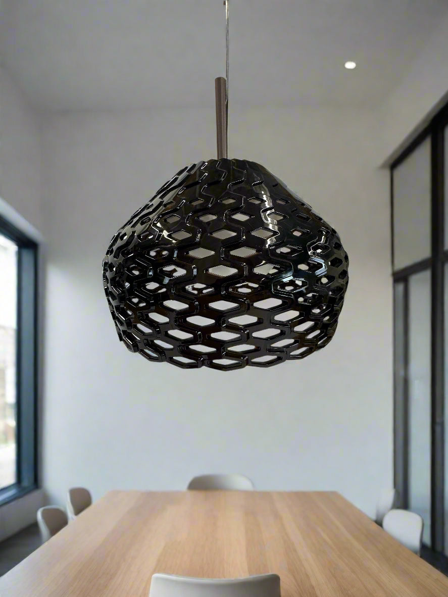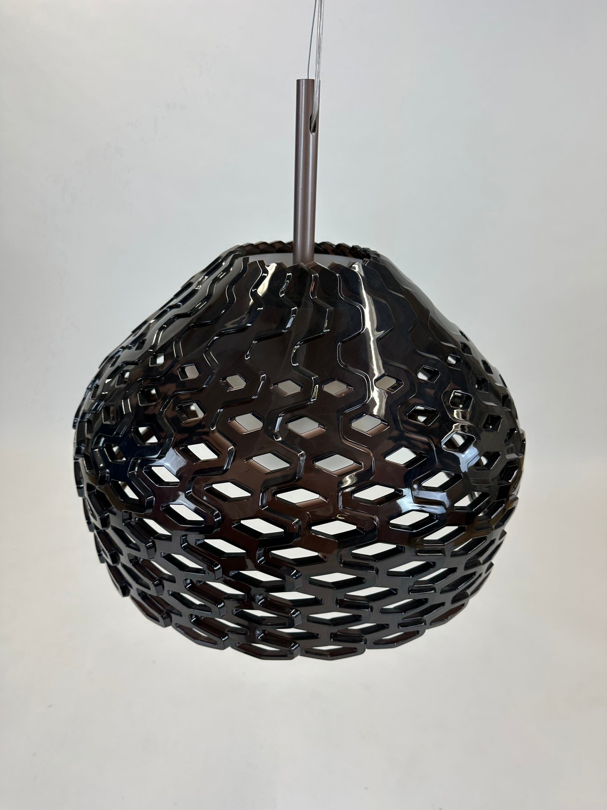 Tatou S2 pendlen fra italienske FLOS, designet af Patricia Urquiola, kombinerer funktionelt lys med en organisk og moderne æstetik. Det gennembrudte mønster i skærmen skaber et unikt lysspil i rummet, hvor lys og skygge danser elegant på vægge og lofter.