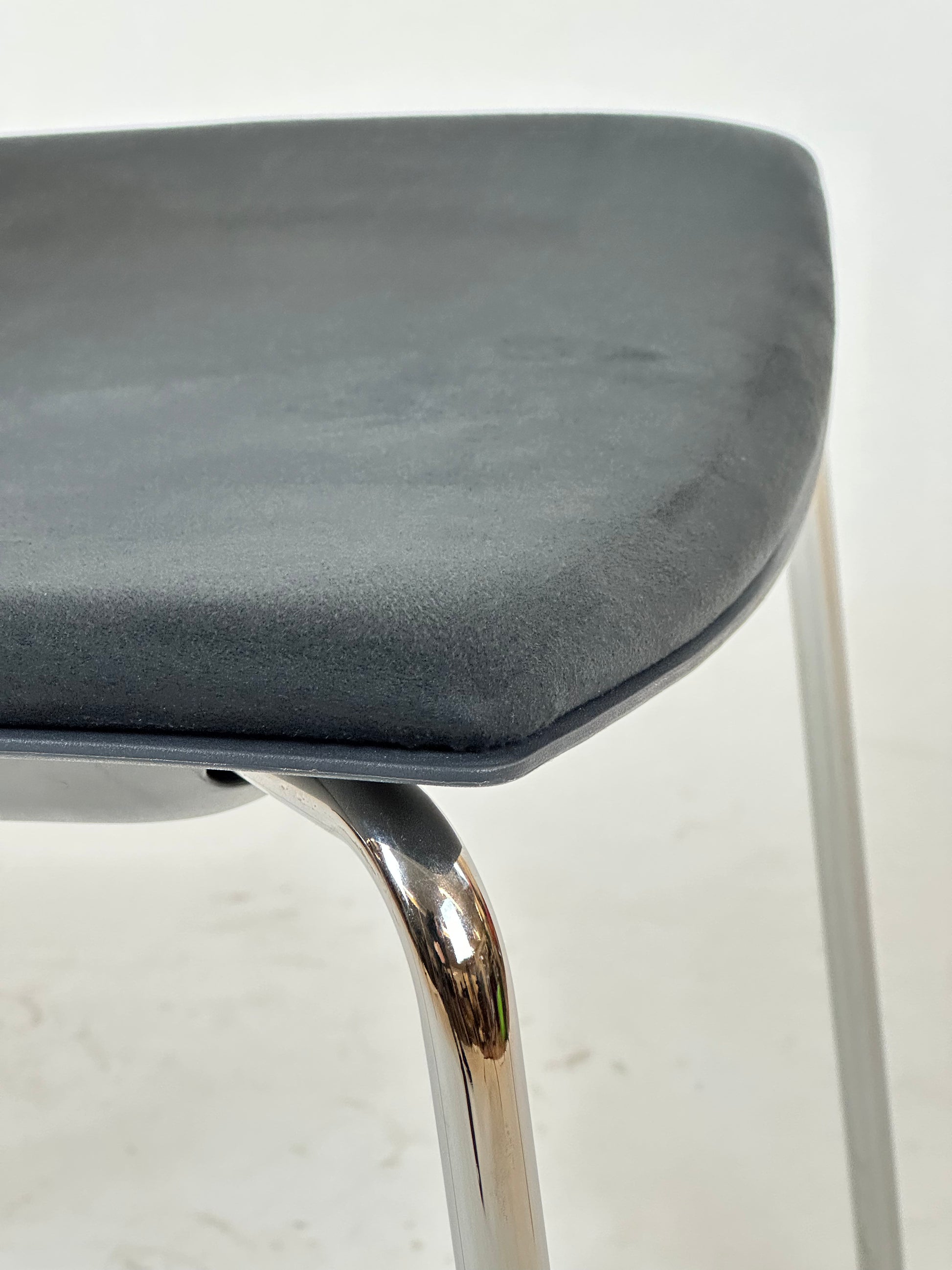 - Stel: Det forkromede stålstel tilføjer elegance og giver stolen en lethed, samtidig med at det sikrer stabilitet og holdbarhed.