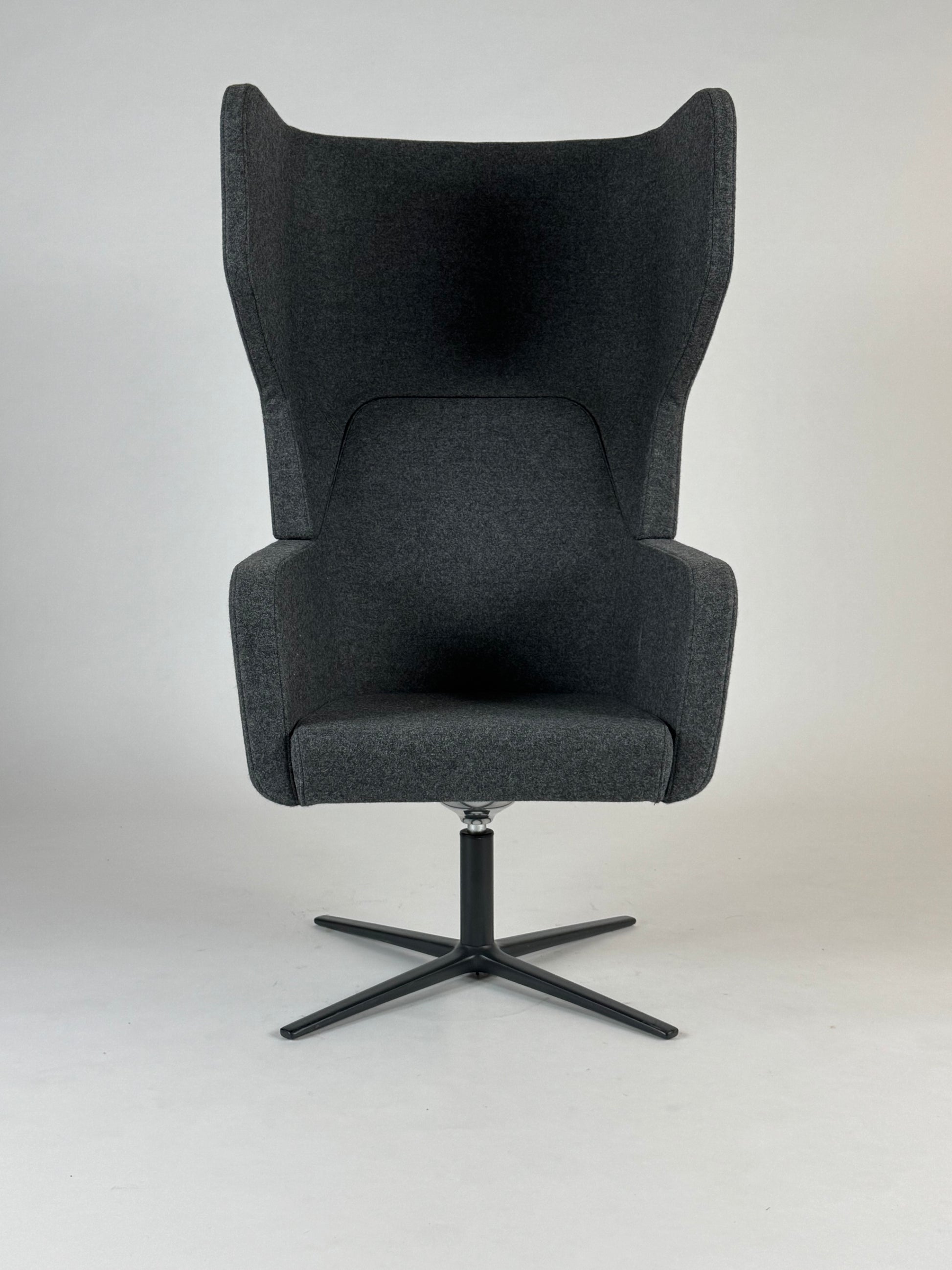 Four Design Harc Tub er en sofistikeret loungestol designet til moderne arbejds- og loungeområder, hvor komfort og privatliv er i fokus. Stolen er en del af Harc-serien, som kombinerer bløde linjer med akustisk funktionalitet, hvilket gør den ideel til åbne kontormiljøer, receptionsområder og stillezoner. Den høje ryg og omsluttende form giver både fysisk og visuel afskærmning, som bidrager til ro og koncentration. Med sit minimalistiske design og drejefod i sort metal tilbyder Harc Tub en perfekt balance mellem æstetik og funktionalitet. Stolens skulpturelle udtryk og høje komfortniveau gør den til et tidløst valg i enhver indretning.