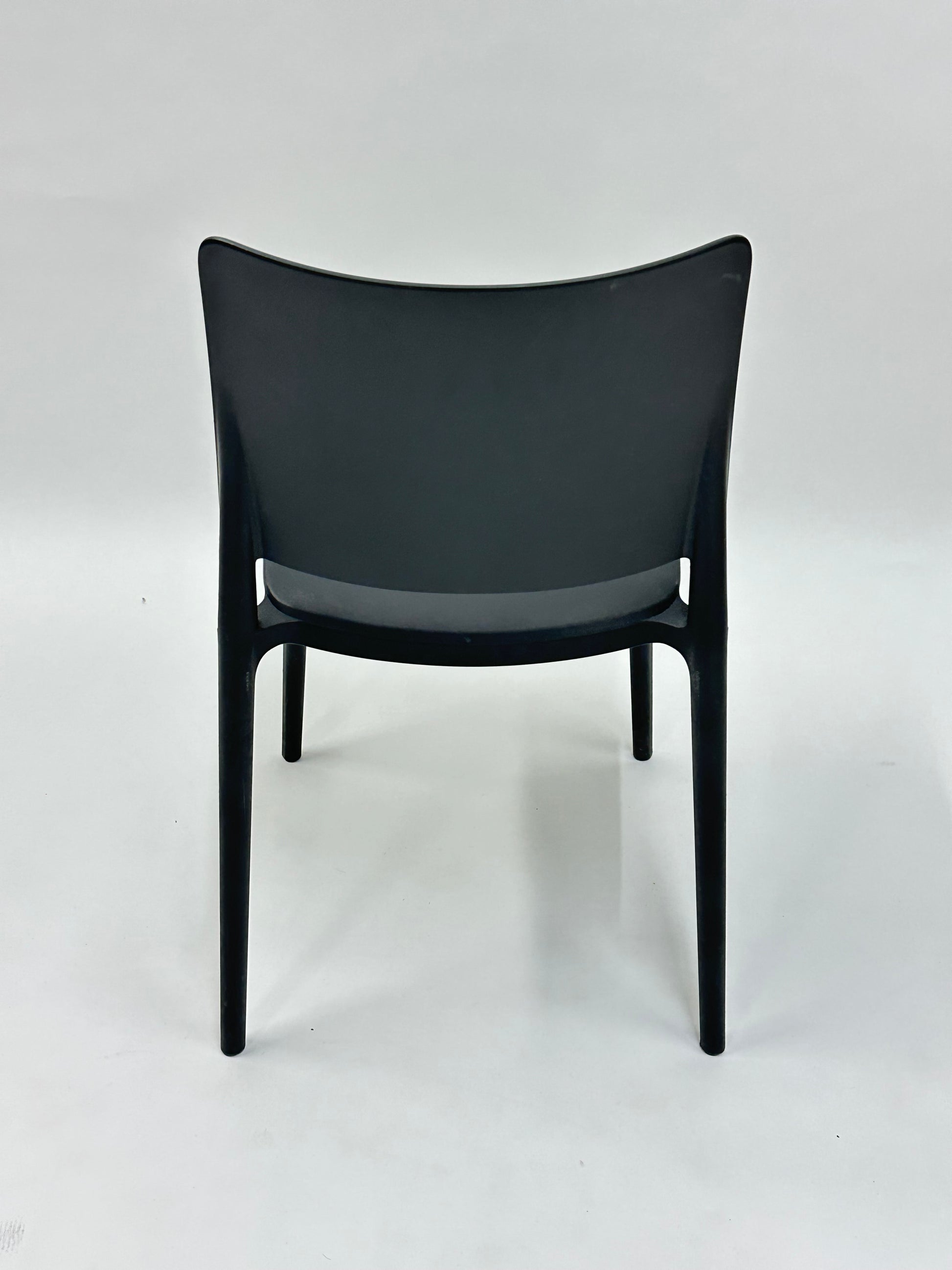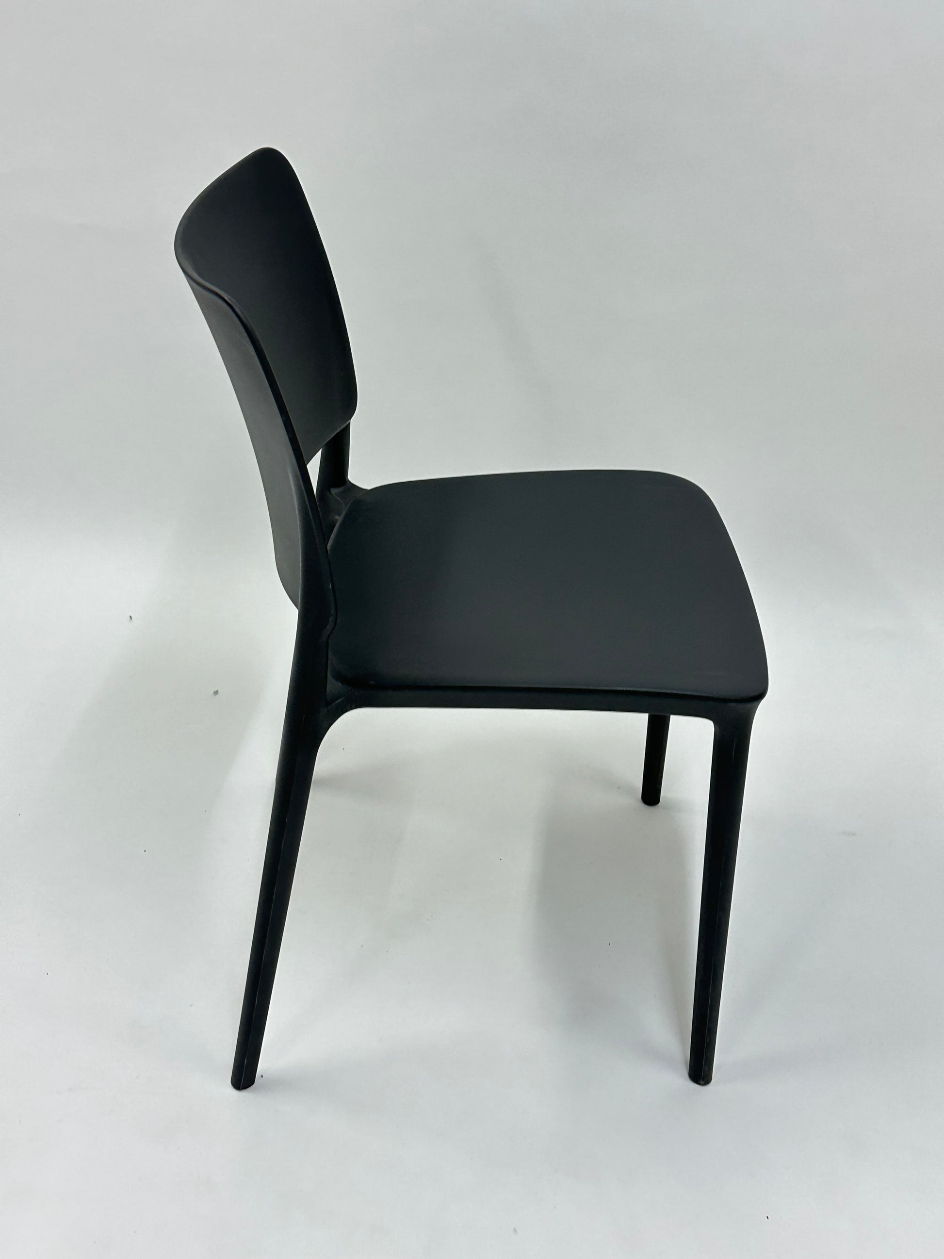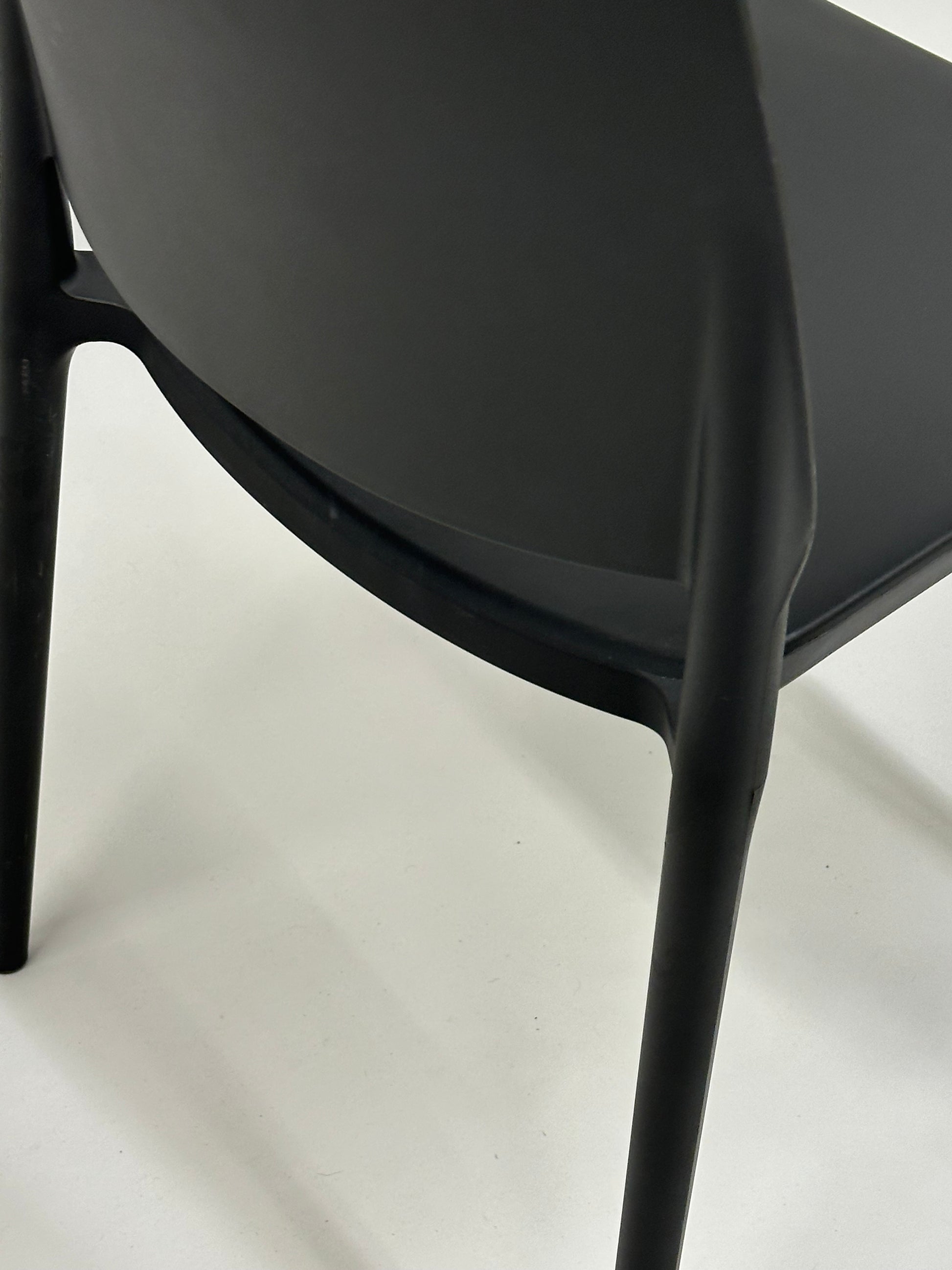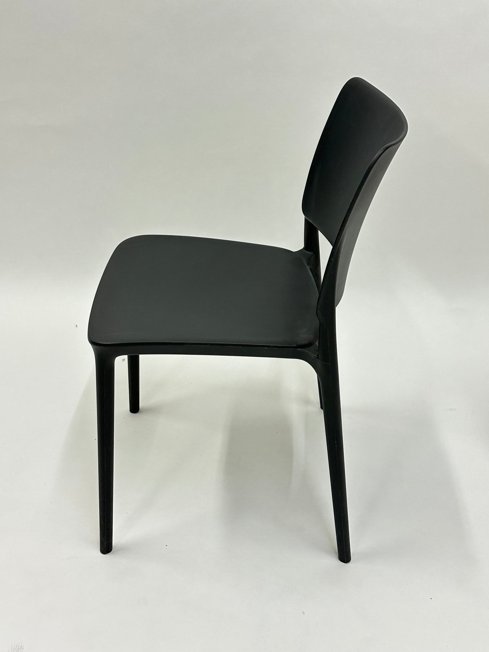 Stolen er fremstillet i én formstøbt del i robust sort polypropylen, hvilket giver både styrke og en glat, rengøringsvenlig overflade. De afrundede kanter og bløde kurver gør den behagelig at sidde i – også over længere tid – og det ensartede look uden samlinger giver et roligt og professionelt udtryk i rummet.