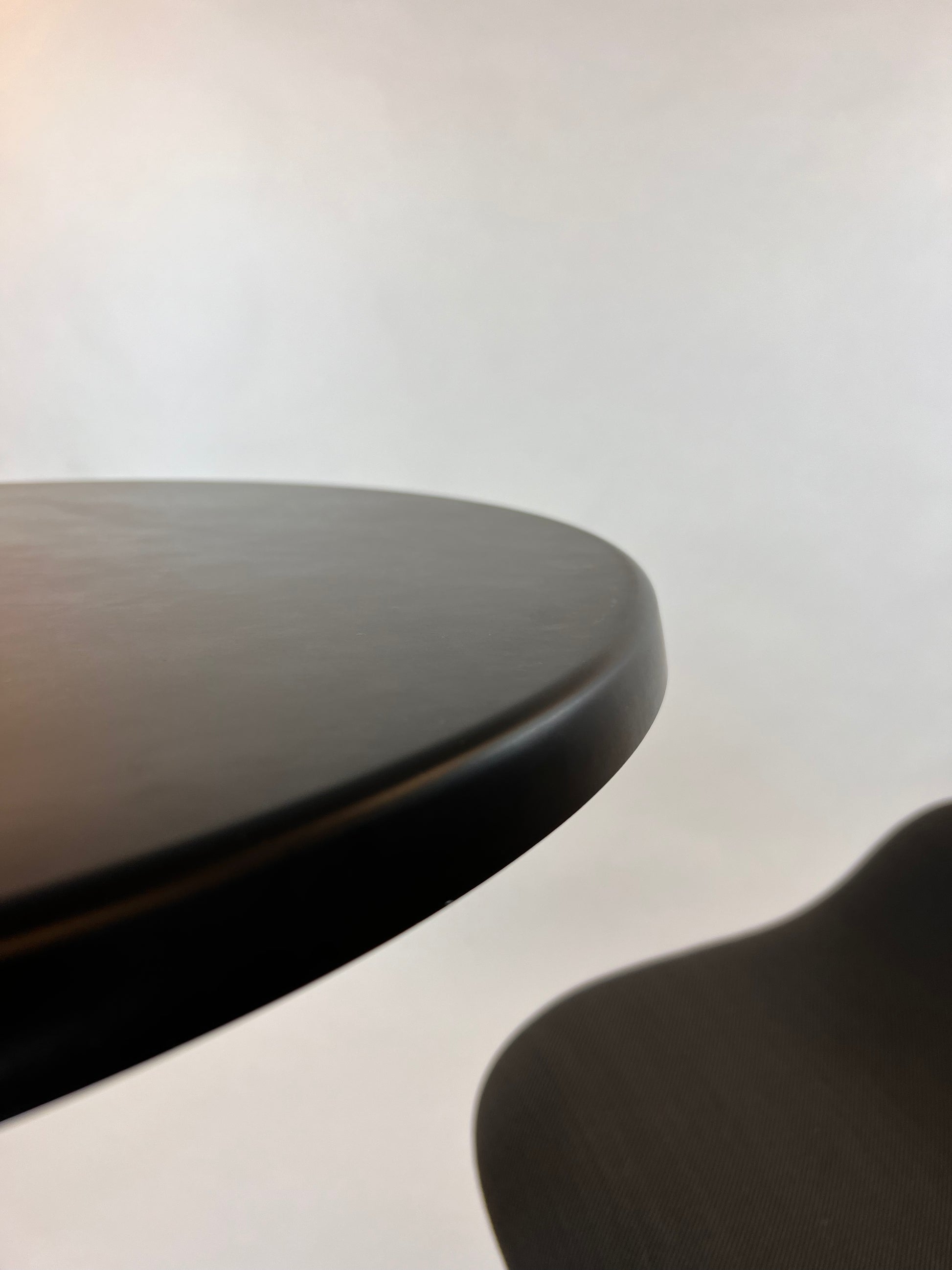 - Bordplade: Rund bordplade i en sort let rengørlig overflade, der tilføjer et sofistikeret udtryk.