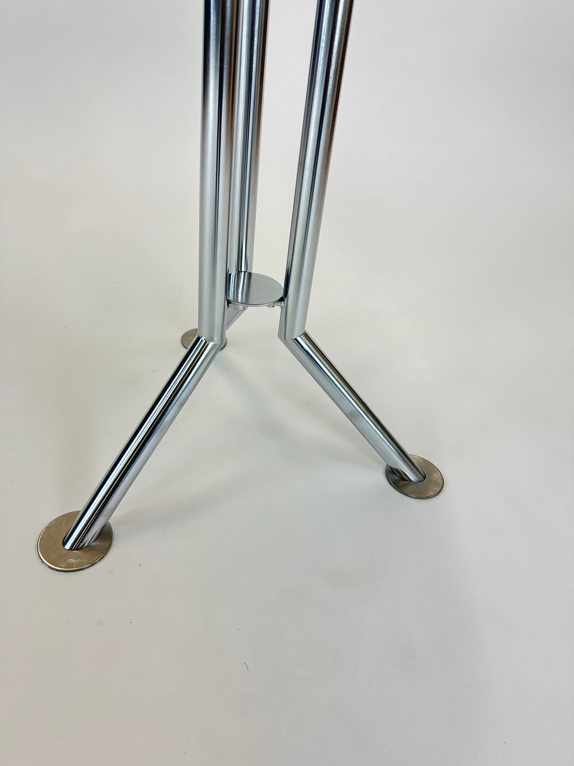 - Stel: Kromstel med trebenet konstruktion, der sikrer stabilitet og en let visuel fremtoning.