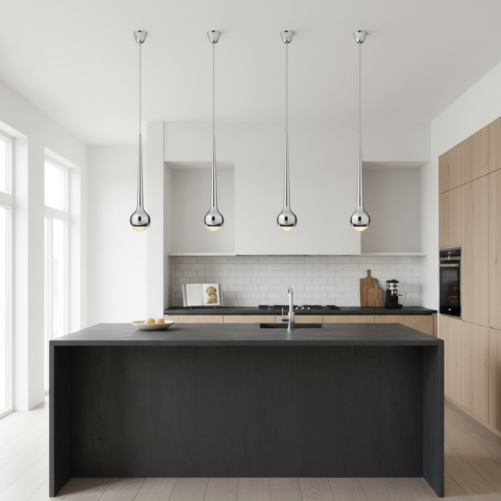 Falling Sun fra tyske GRAU er en raffineret pendel, der kombinerer avanceret LED-teknologi med skulpturelt design. Lampens form er inspireret af en faldende dråbe og fremstår i en spejlblank kromfinish, som tilfører både elegance og moderne kant til enhver indretning. Den kompakte lyskilde er placeret i bunden af dråben og giver et direkte, varmt lys – ideelt over mødeborde, receptionsdiske eller loungeområder, hvor der ønskes målrettet og stemningsfuld belysning.