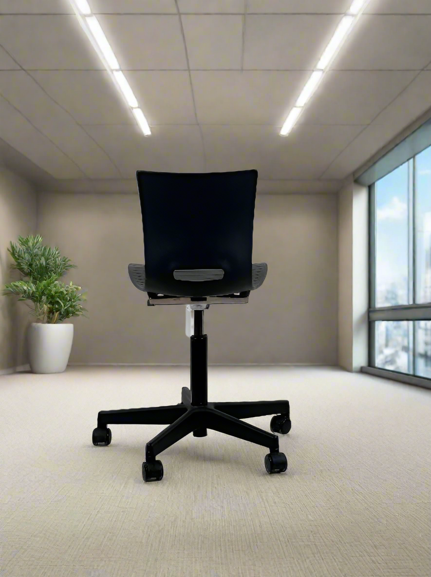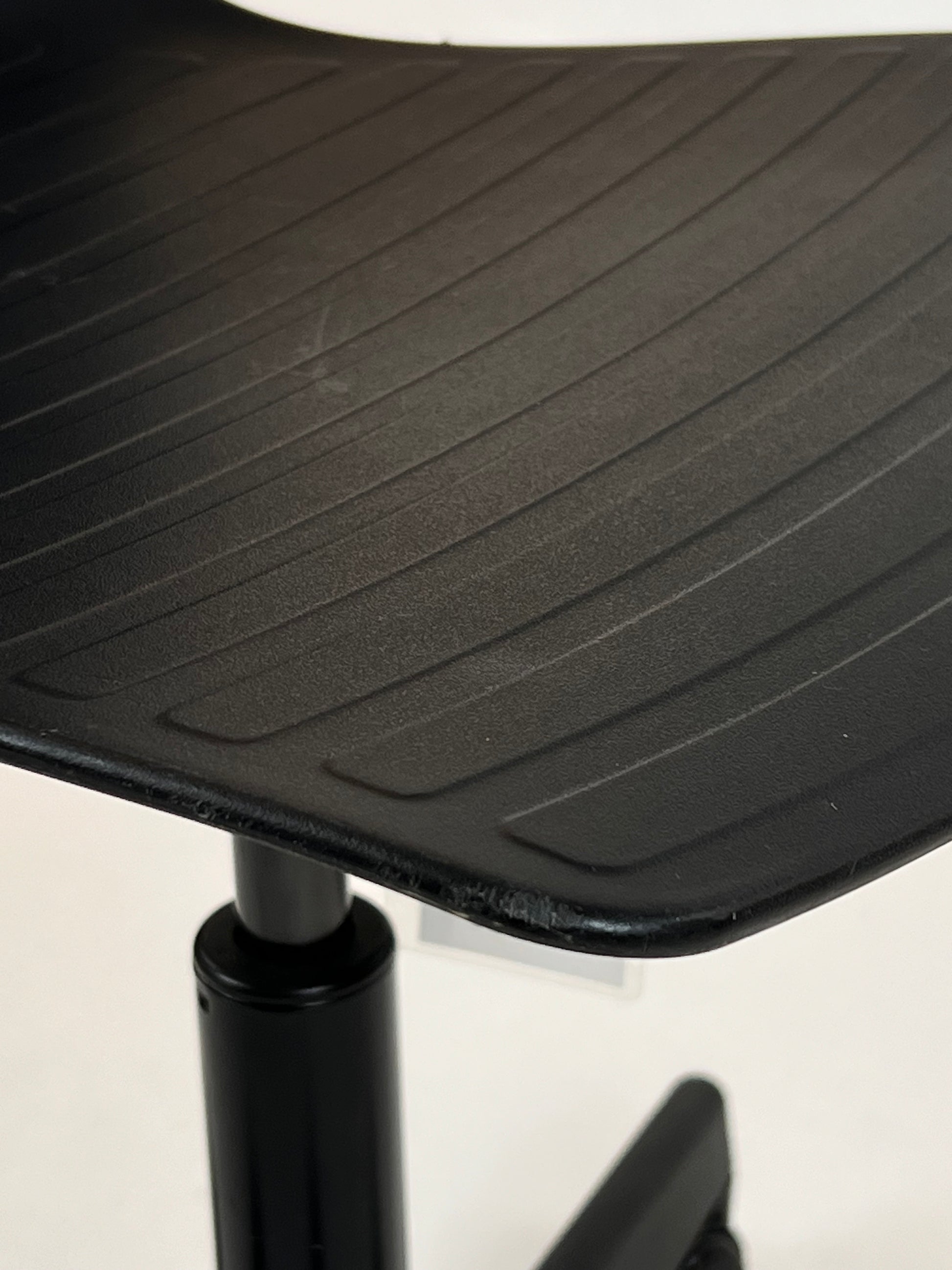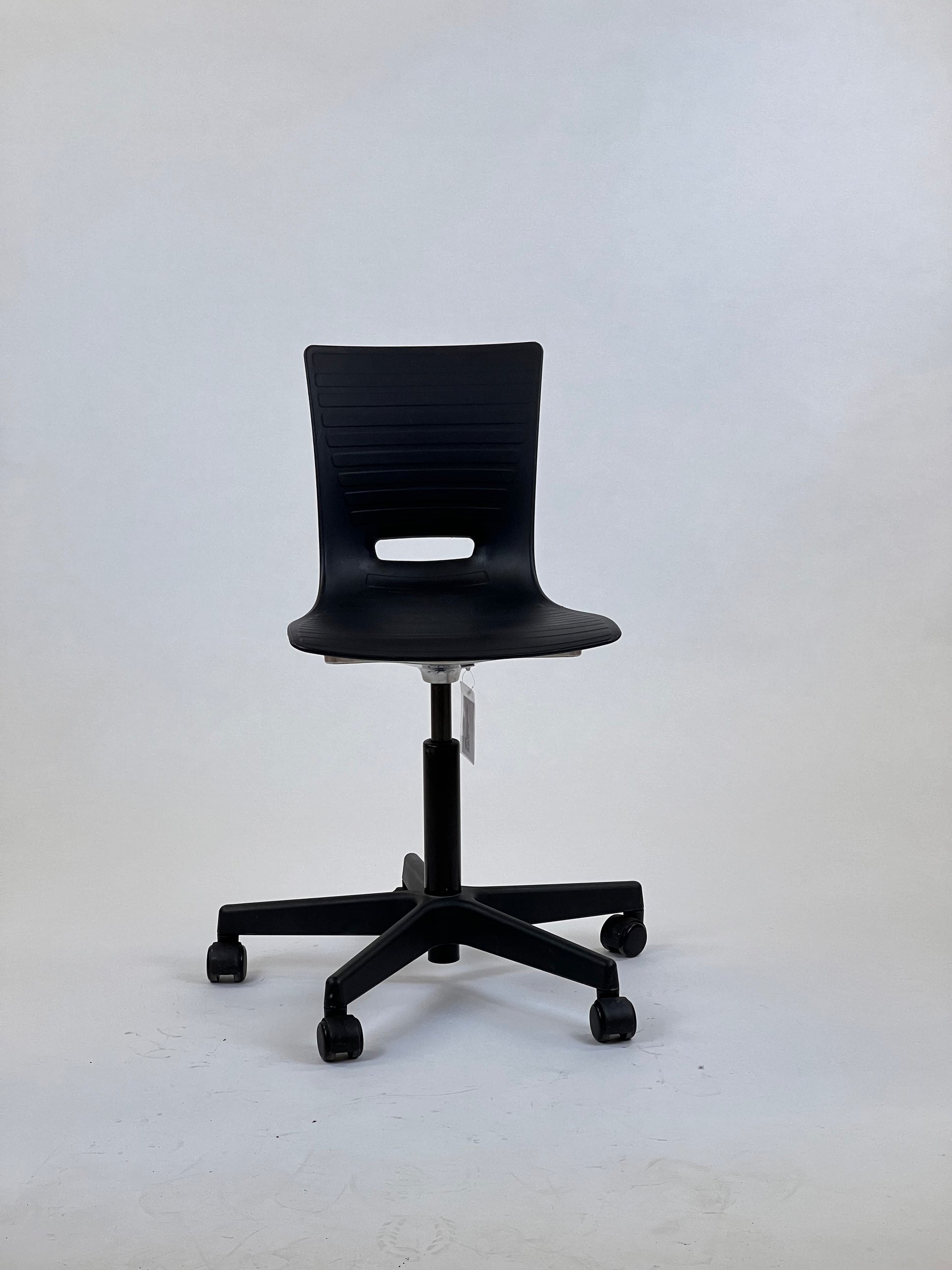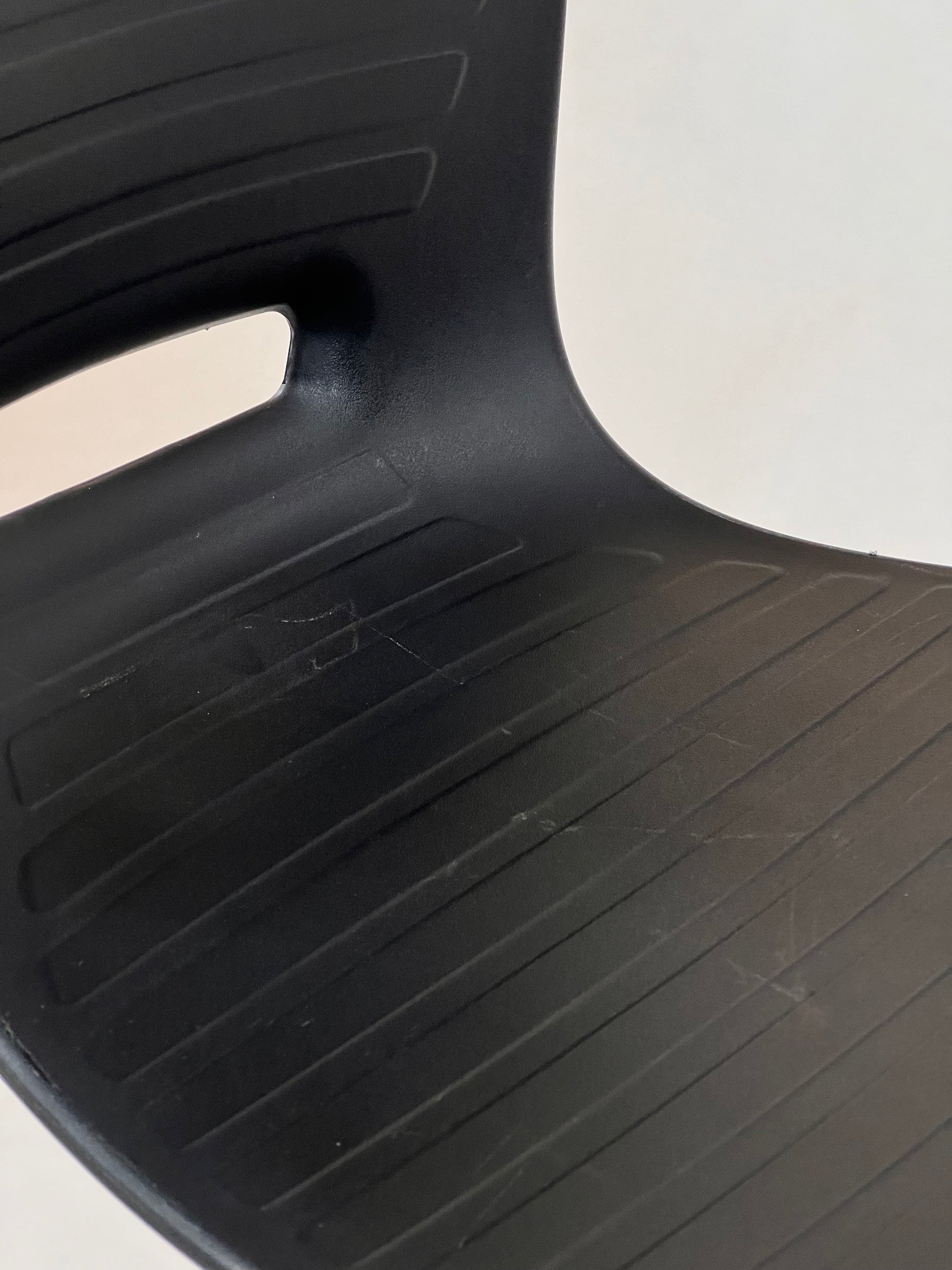 - Sæde og Ryglæn: Behagelig sort plast der sikrer langvarig komfort og et moderne udtryk.