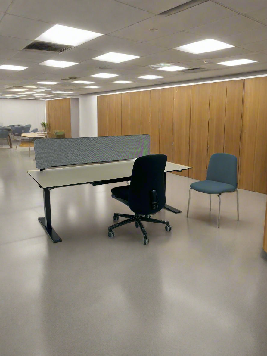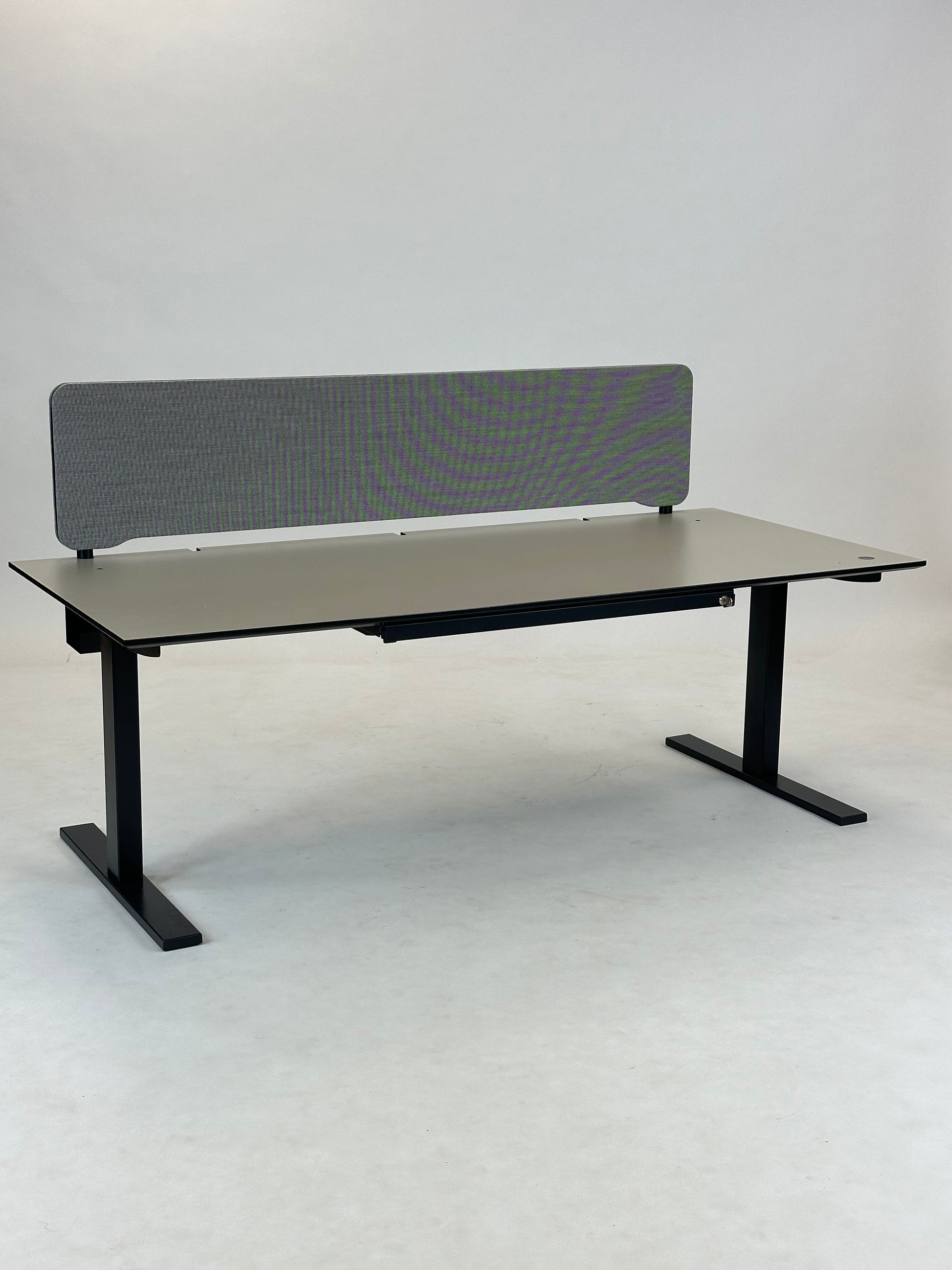 Dette moderne hæve-/sænkebord fra Linak er skabt til den professionelle arbejdsplads, hvor fleksibilitet, komfort og koncentration er i fokus. Udstyret med en stilfuld akustisk skærmvæg i gråt tekstil, tilbyder bordet både en ergonomisk korrekt arbejdsstilling og visuel samt lydmæssig afskærmning – ideelt til åbne kontormiljøer.