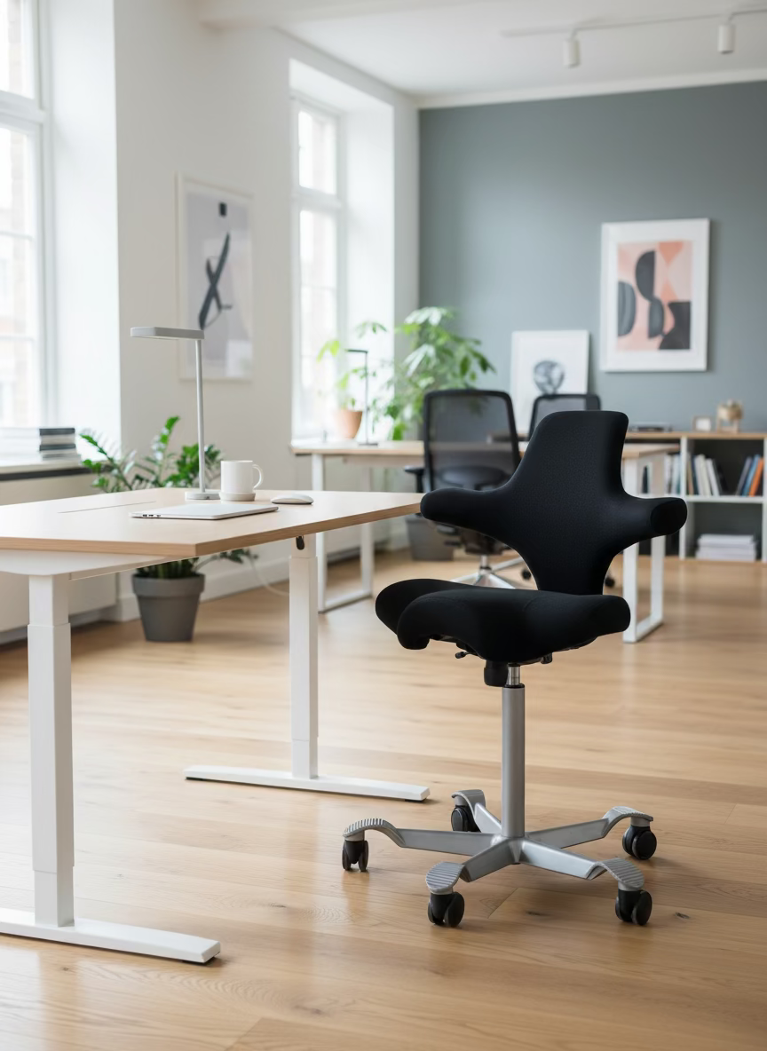 HÅG Capisco 8106 er en banebrydende kontorstol designet af Peter Opsvik, som udfordrer traditionelle siddemønstre og fremmer aktivt arbejde. Stolen er skabt med fokus på bevægelse og variation, og den ikoniske sadelformede sæde og ryglæn understøtter en naturlig, oprejst siddestilling, der mindsker belastning på ryg og skuldre.
