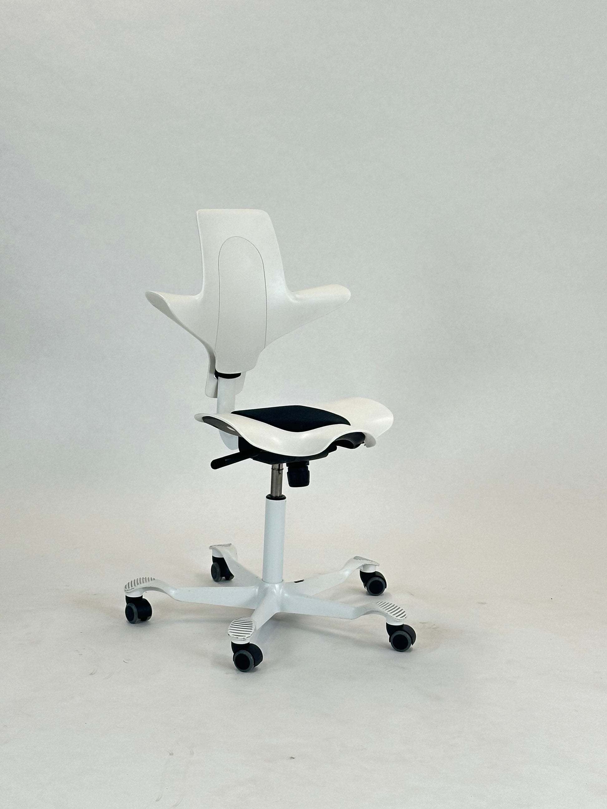 - Sadelinspireret Sæde: Det karakteristiske sadelsæde muliggør en dynamisk siddestilling og giver optimal støtte til ryg og hofter.