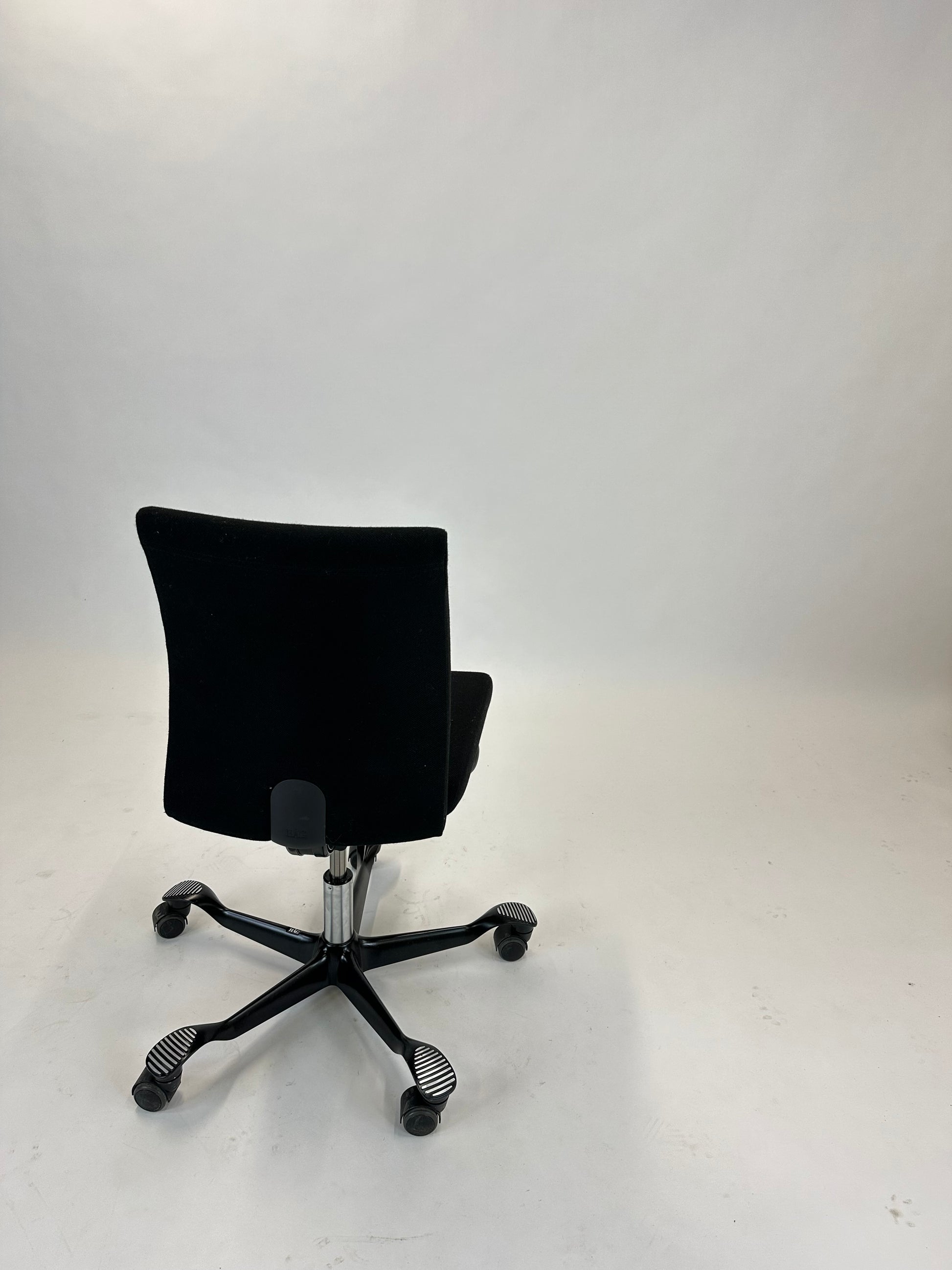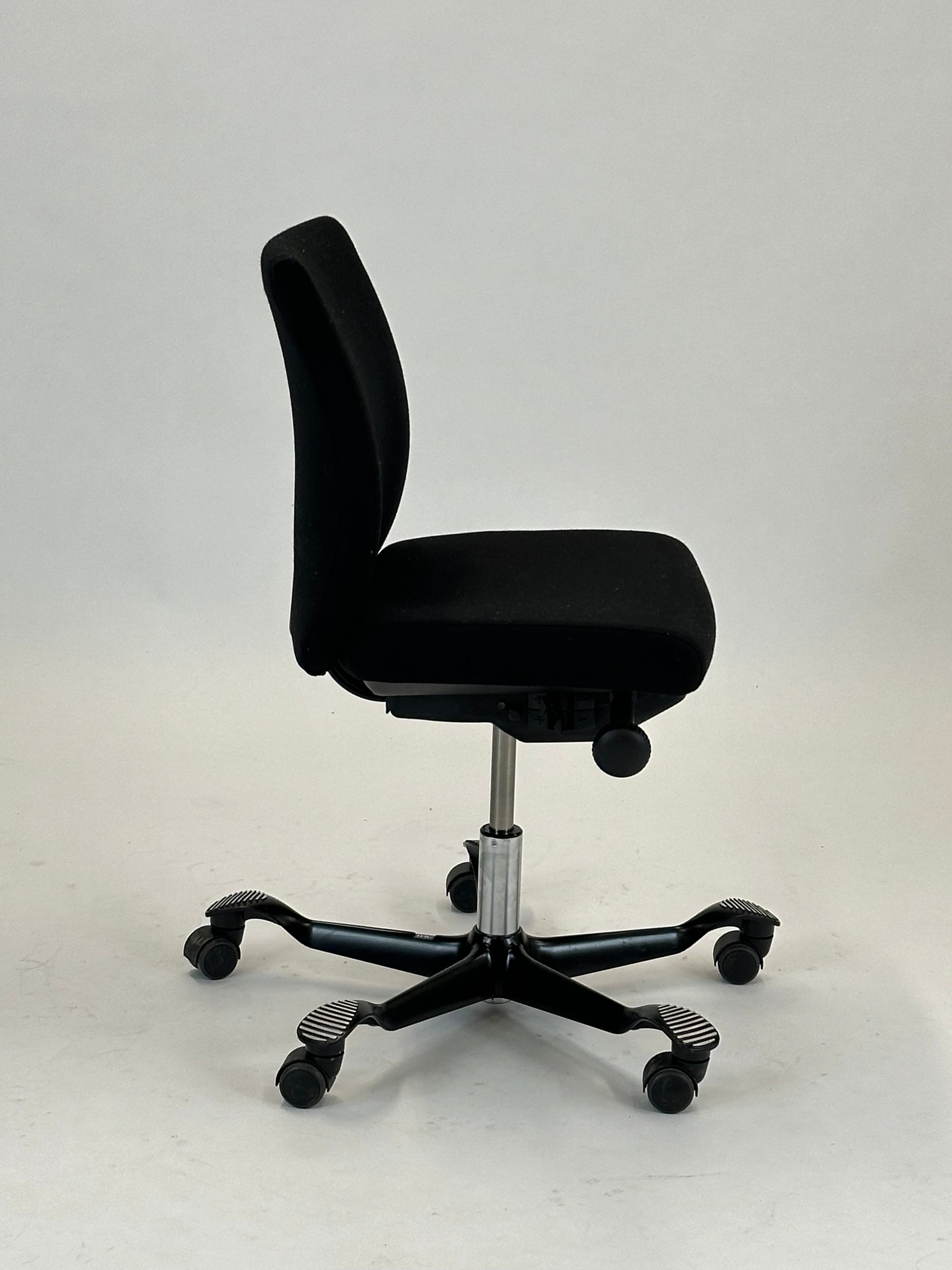 HÅG Creed 6002 tilbyder flere individuelle justeringsmuligheder, herunder sædehøjde, sædedybde og ryglænshøjde, så stolen kan tilpasses præcist til den enkelte bruger. Sædet er komfortabelt polstret i sort slidstærkt tekstil, og stolen har et robust femstjernet understel med hjul for fleksibel mobilitet.