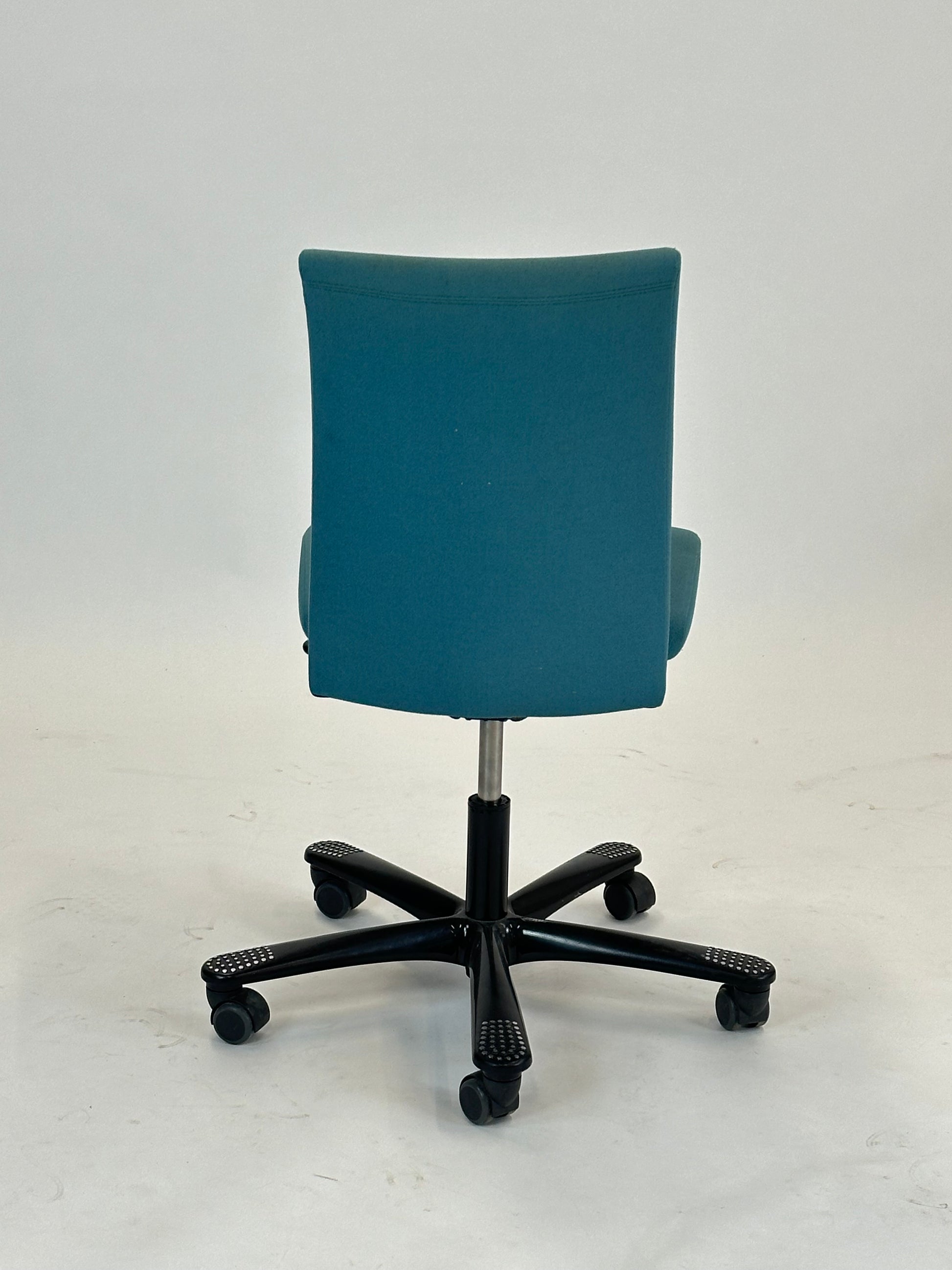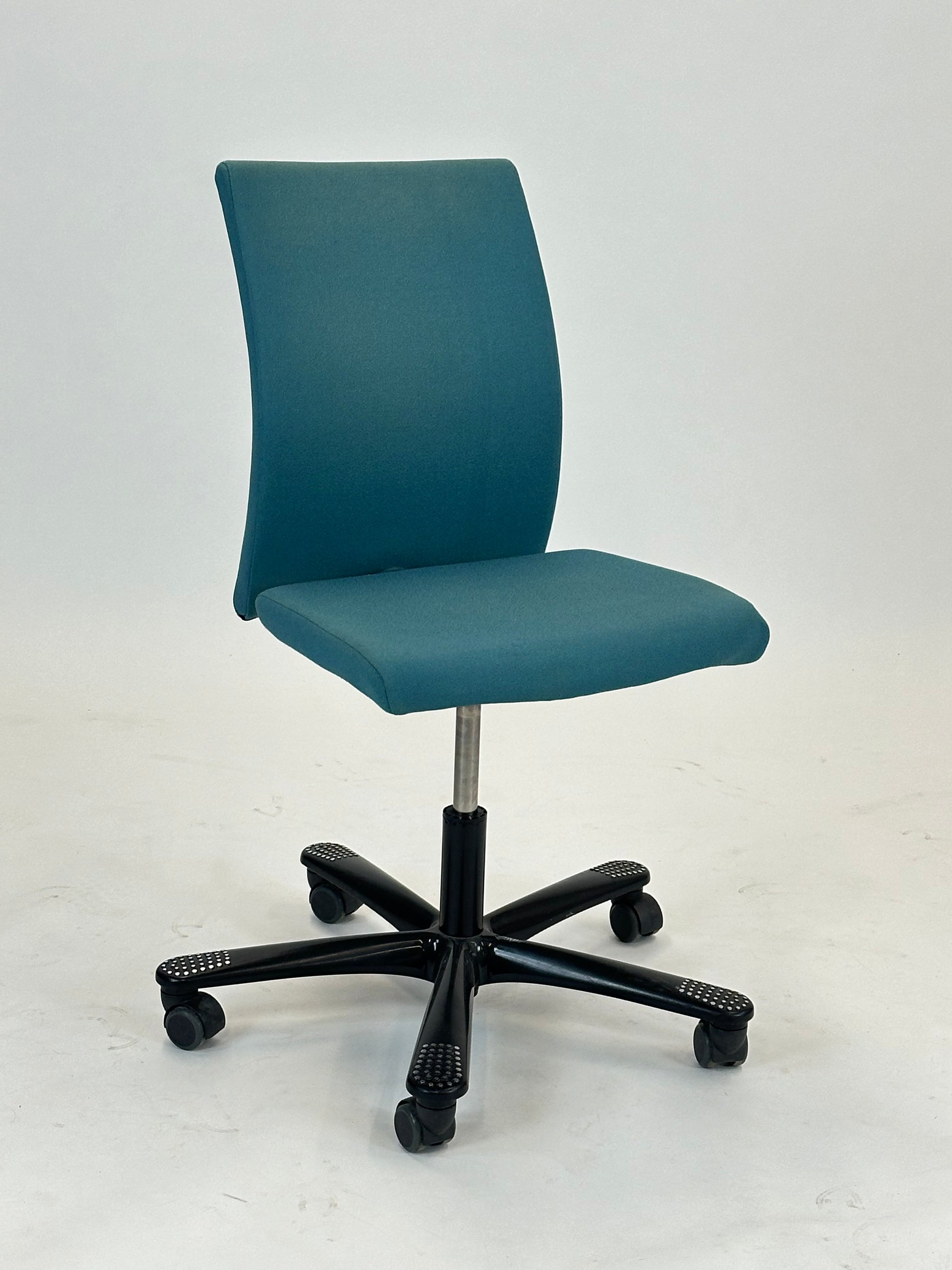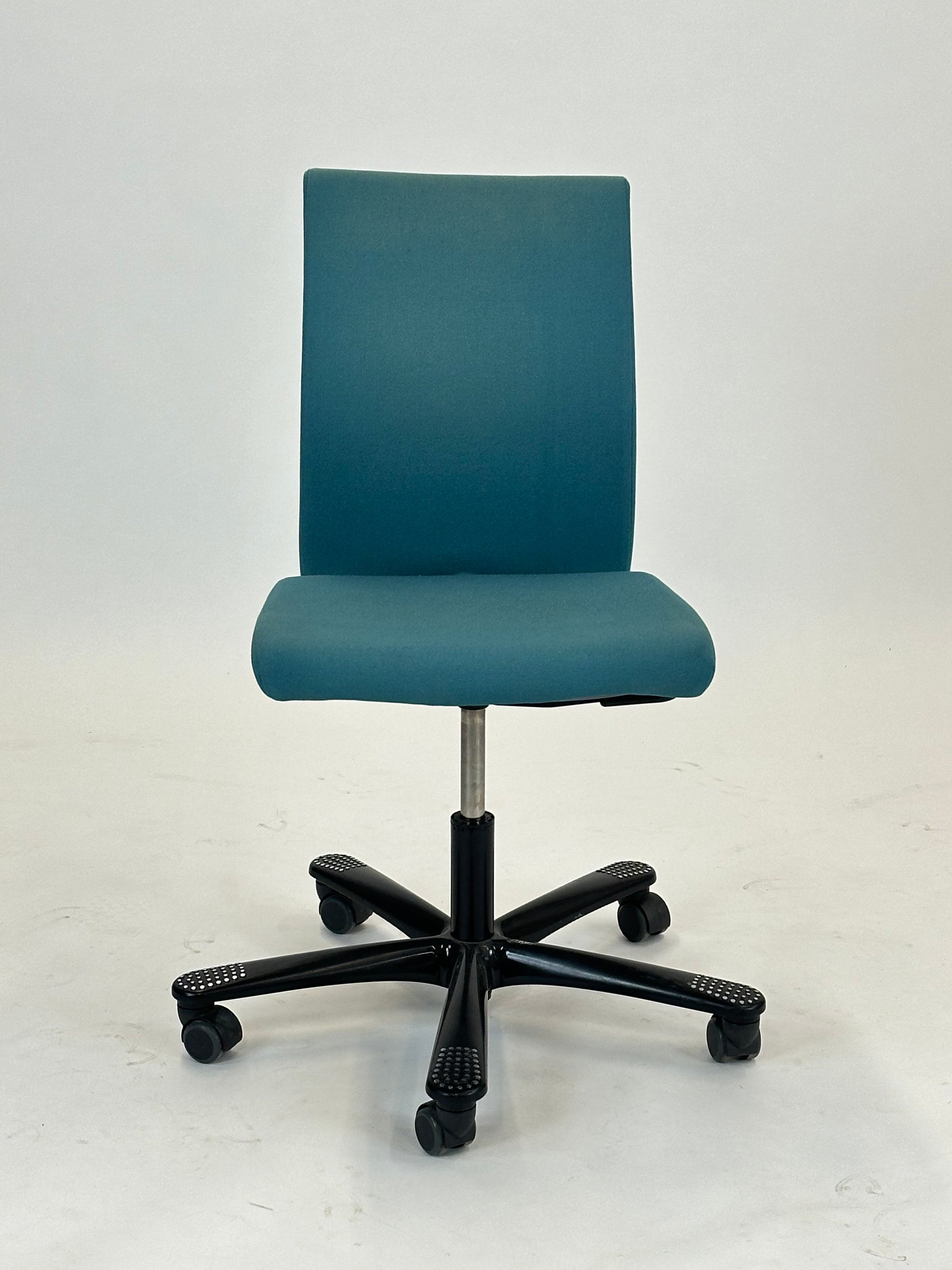 Med sin karakteristiske ryglænform og bløde polstring sikrer H04 Communication en naturlig siddestilling, der aflaster ryg og lænd. Den fleksible vippefunktion og justerbare højde gør det nemt at tilpasse stolen til forskellige brugere og arbejdsstationer. Det femarmede hjulkryds giver både stabilitet og mobilitet, så stolen nemt kan flyttes rundt i mødelokalet.