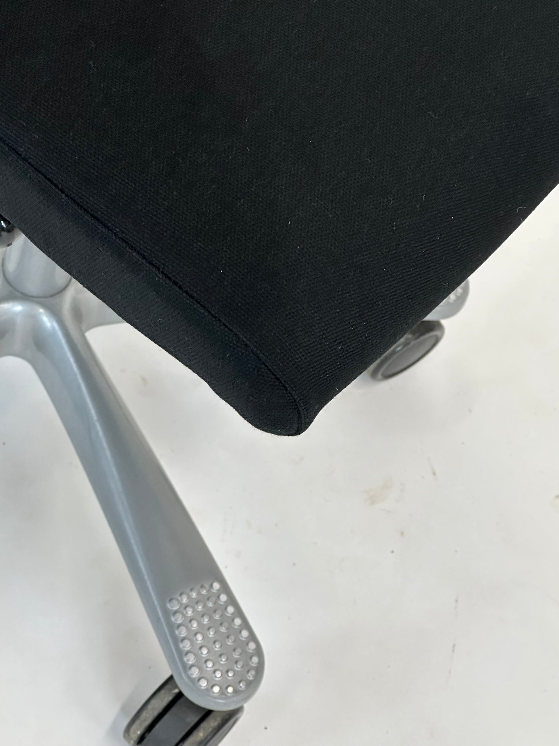 - Polstring: Stolen er betrukket med slidstærkt sort stof, der giver et tidløst og professionelt udseende, samtidig med at det er nemt at vedligeholde.