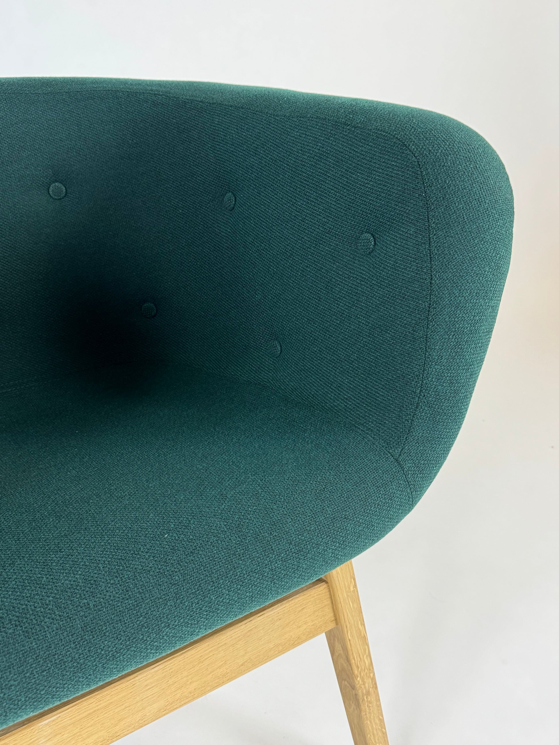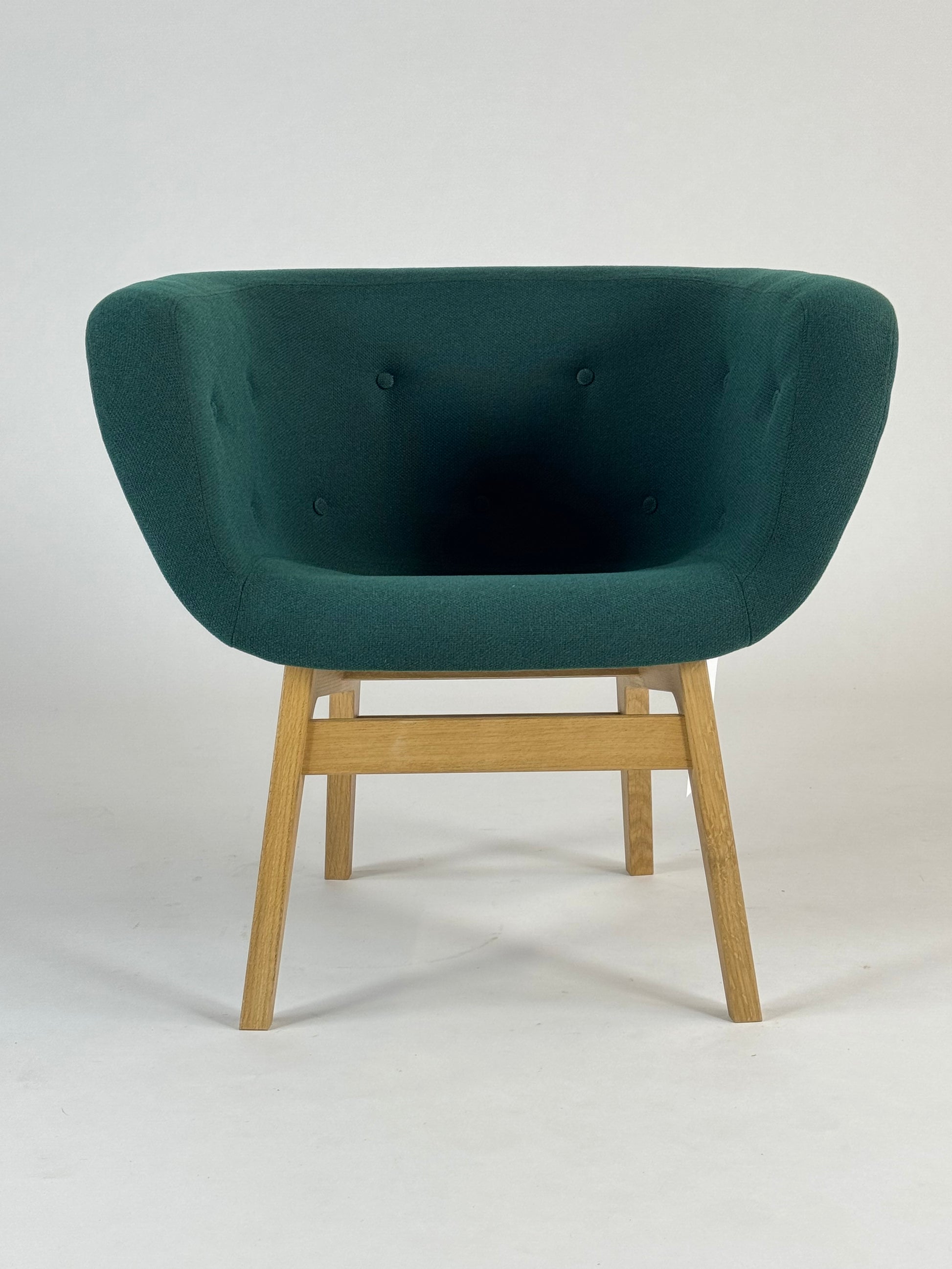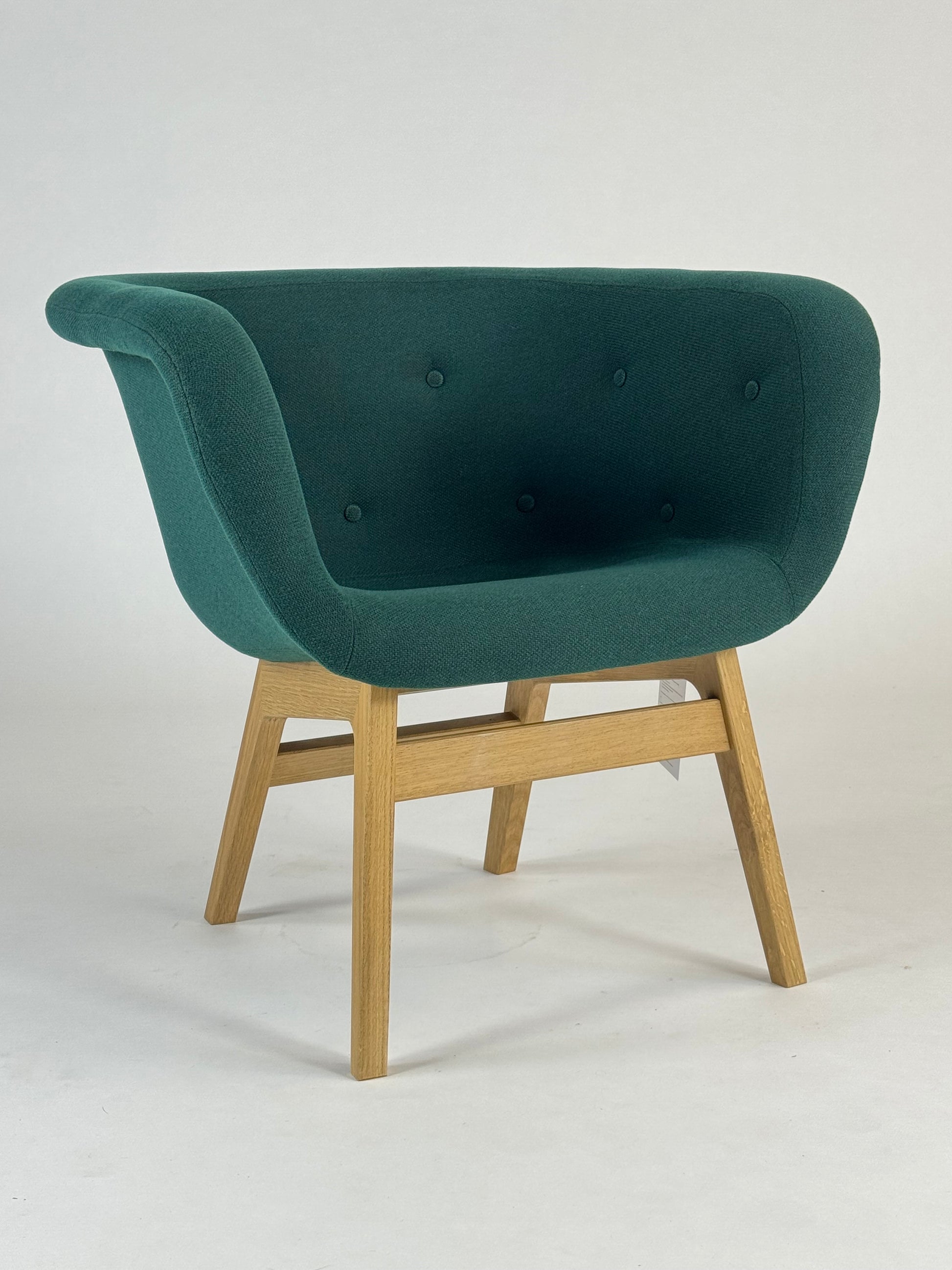 Den dybe, polstrede ryg og de dekorative knapper giver stolen et sofistikeret udtryk, mens den åbne base i massiv egetræ tilfører varme og stabilitet. Med sin rummelige udformning fungerer Chester perfekt i loungeområder, receptionsmiljøer og kontorlandskaber, hvor både komfort og design vægtes højt. Dens tidløse form og materialevalg gør den velegnet til både moderne og klassiske interiører.