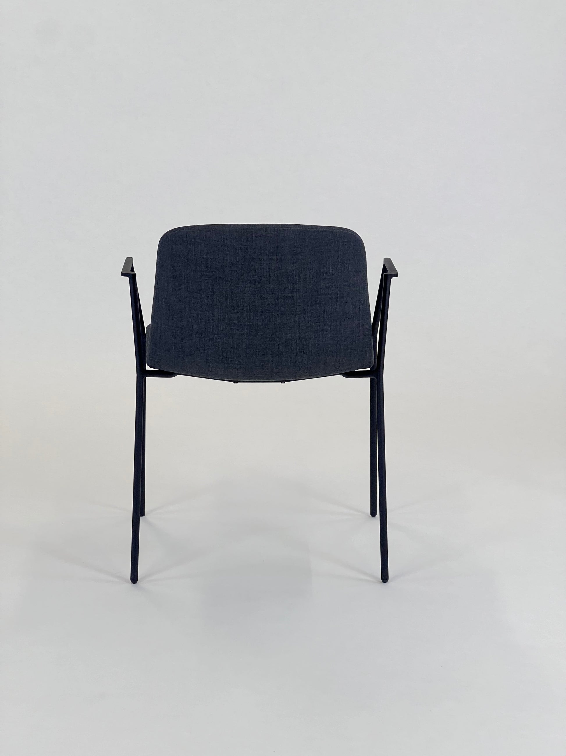 - Stel: Stellet er lavet af sort metal, som giver en robust og stabil base. De slanke ben og armlæn bidrager til stolens moderne æstetik, mens de også sikrer funktionel støtte.