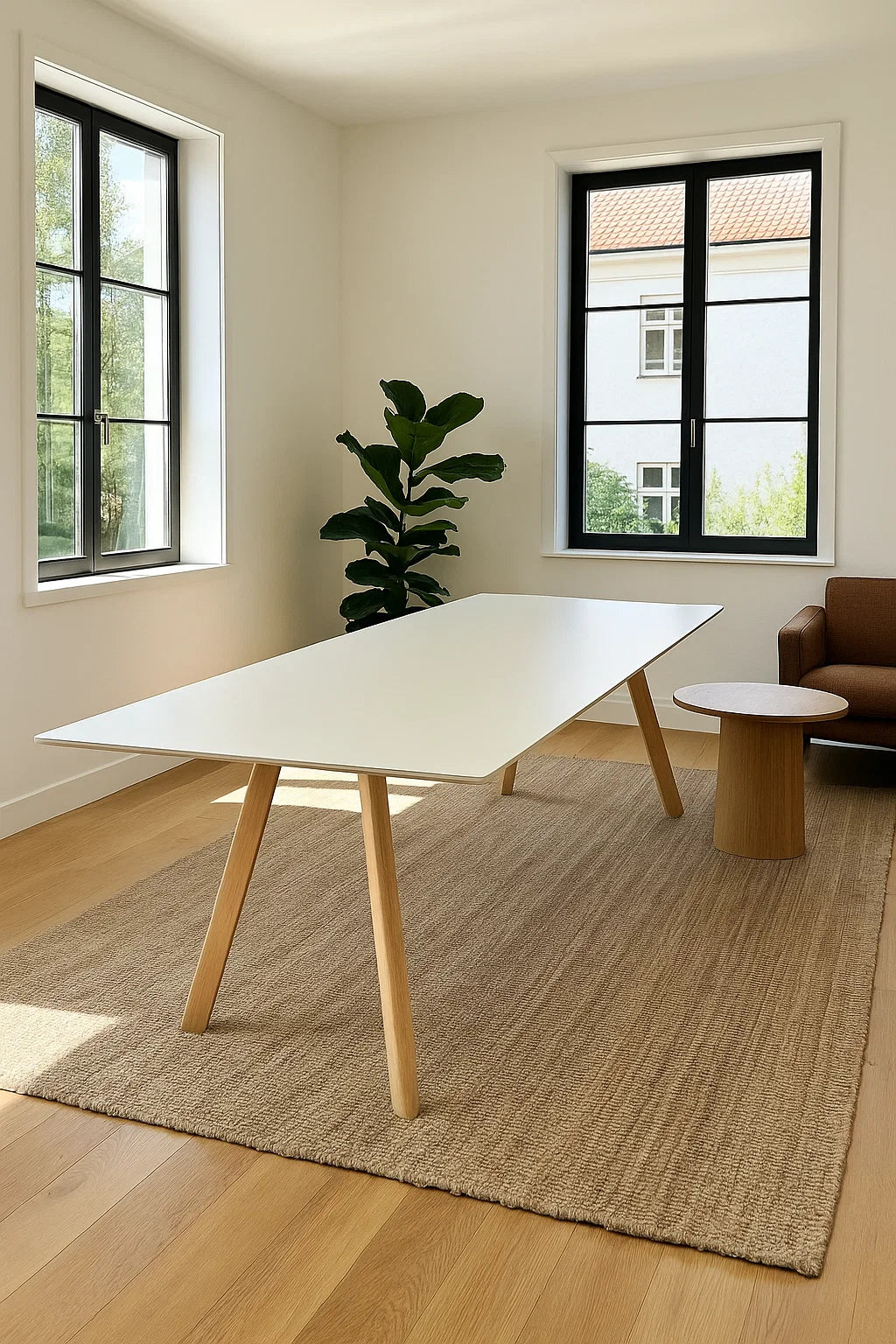 Den slanke profil og de rene linjer gør CPH 30 perfekt som konferencebord i kontormiljøer, mødebord i kreative arbejdsrum eller spisebord i moderne kantiner og fællesområder. Det minimalistiske design passer sømløst ind i både professionelle og private omgivelser og skaber en rolig og stilren atmosfære.