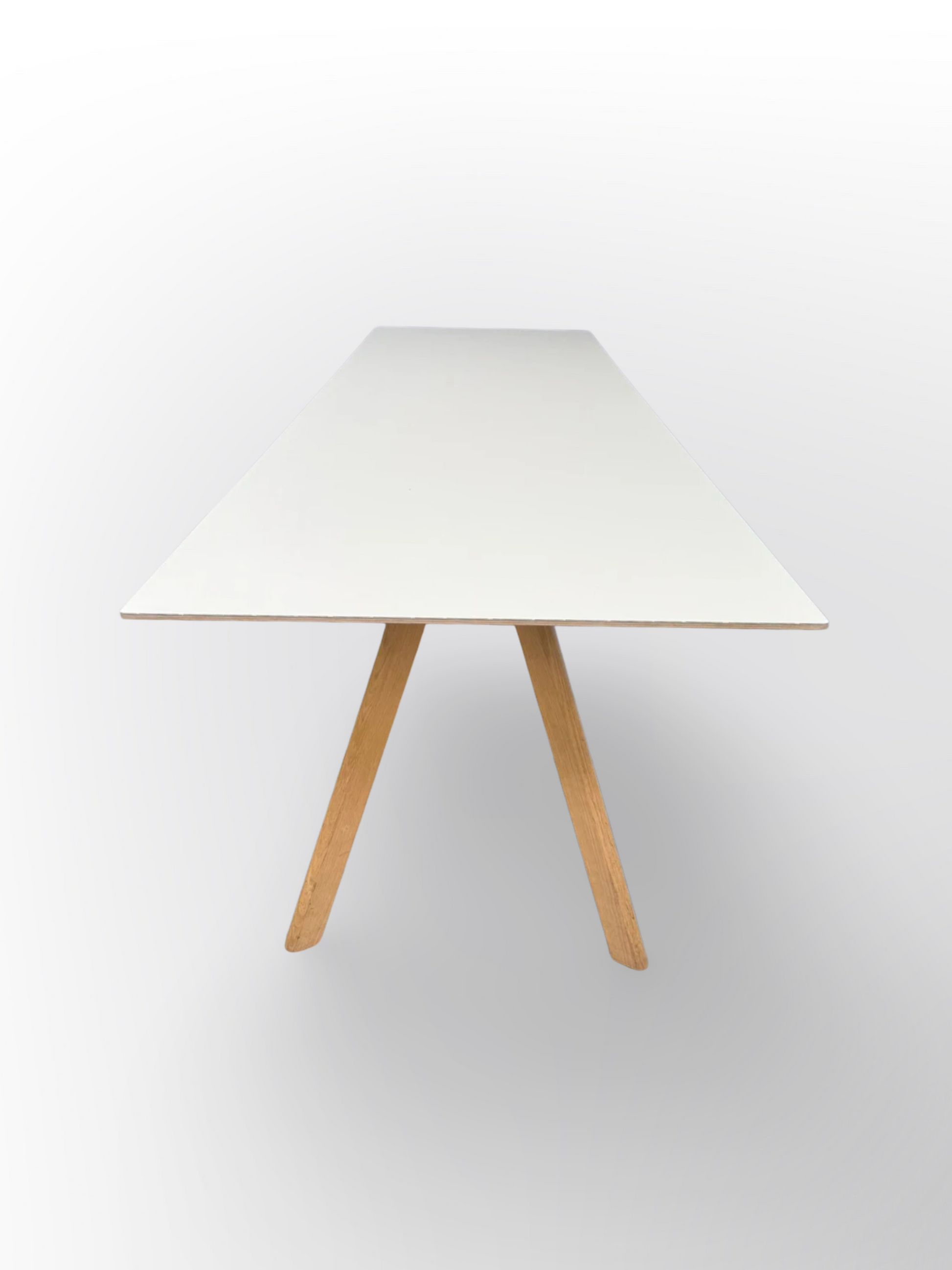 CPH 30 bordet fra HAY er et elegant eksempel på moderne, skandinavisk design, hvor funktionalitet og æstetik smelter sammen i et tidløst udtryk. Med sin enkle, rektangulære bordplade og skrå ben i massiv eg udstråler bordet både lethed og stabilitet, hvilket gør det ideelt til en bred vifte af anvendelser.