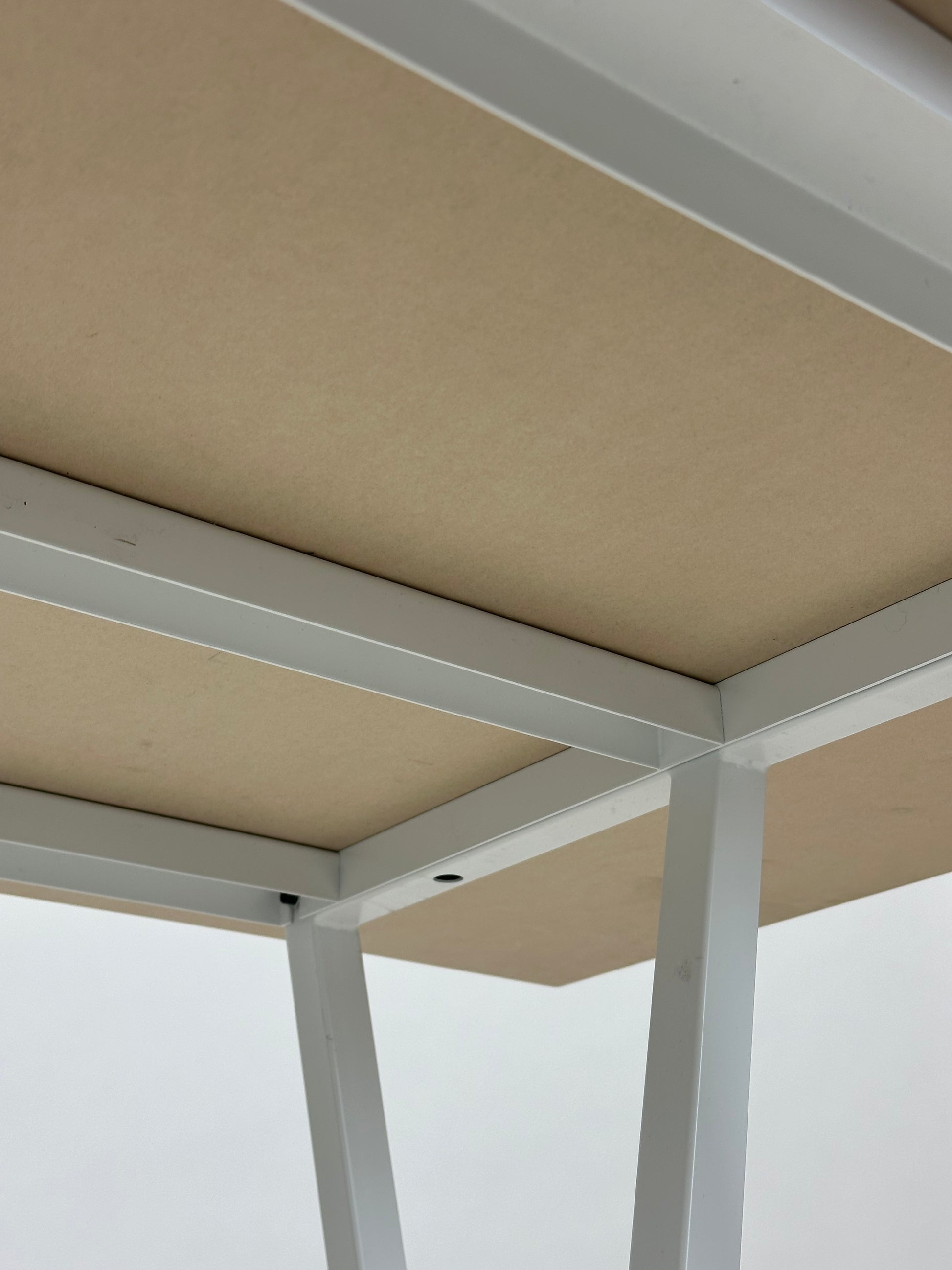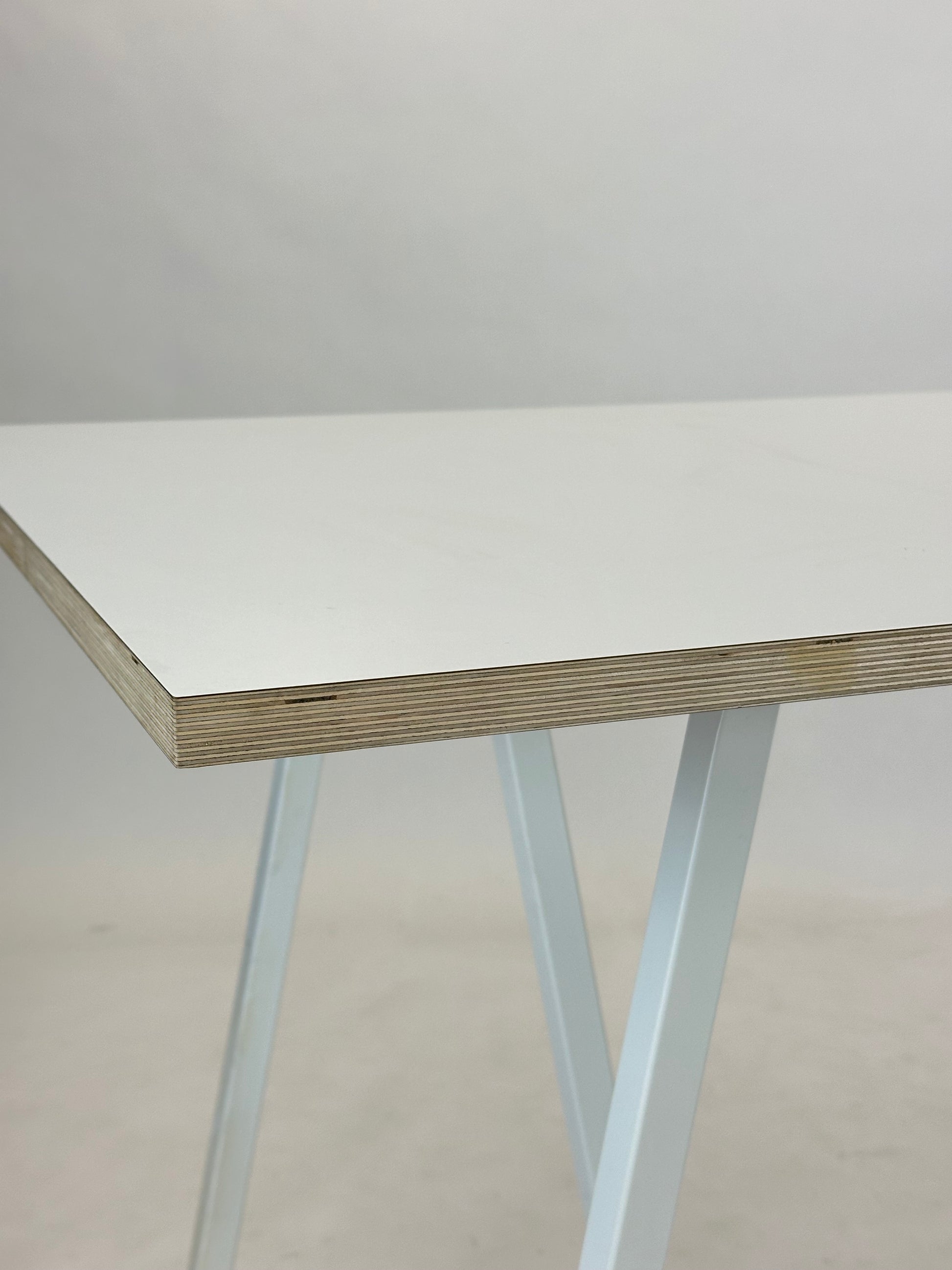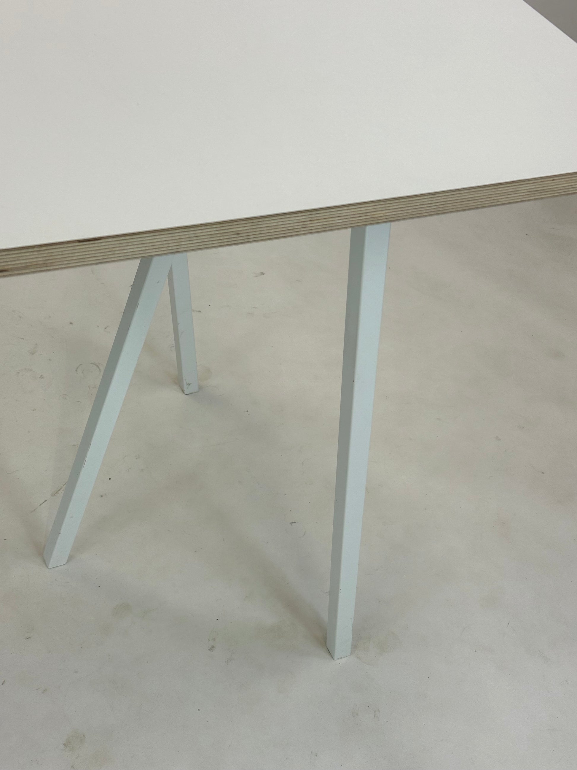 Loop Stand Table er et ikonisk bord designet af Leif Jørgensen for HAY, der kombinerer funktionel enkelhed med karakteristisk design. Bordet har en hvid bordplade og karakteristiske skrå bukke i pulverlakeret stål, der tilføjer et industrielt og stilrent udtryk. Perfekt til både mødelokalet og det moderne hjemmekontor.