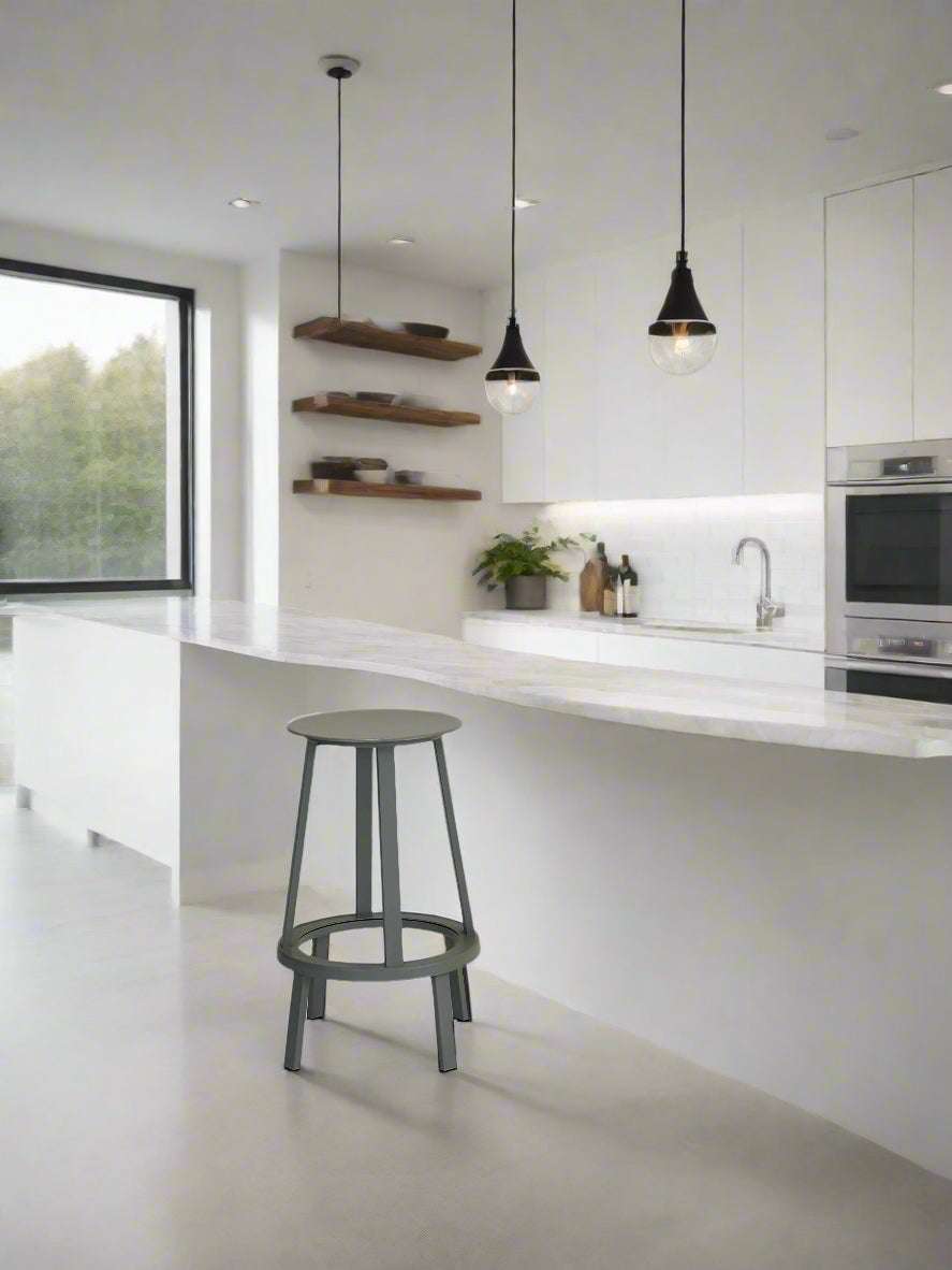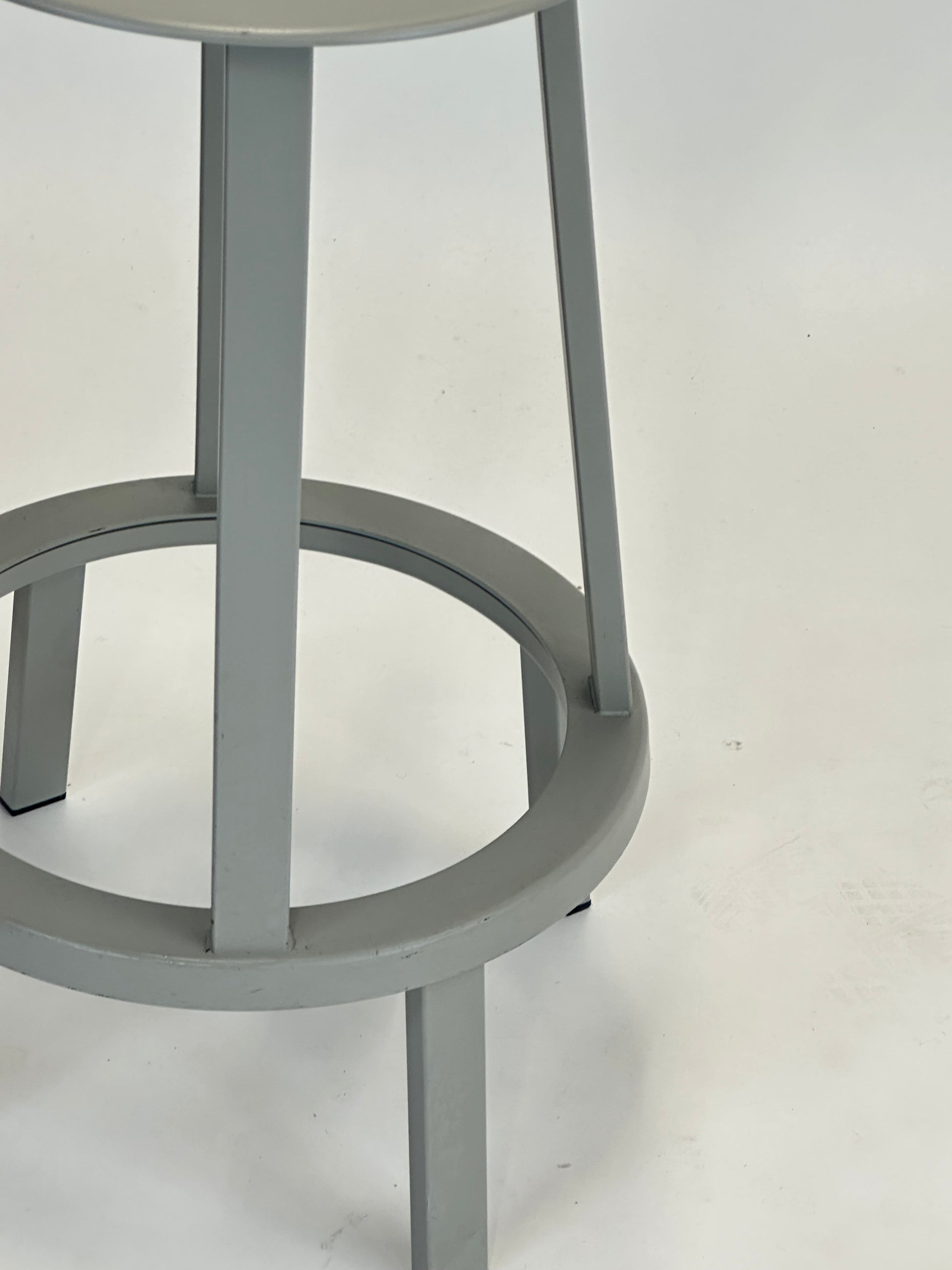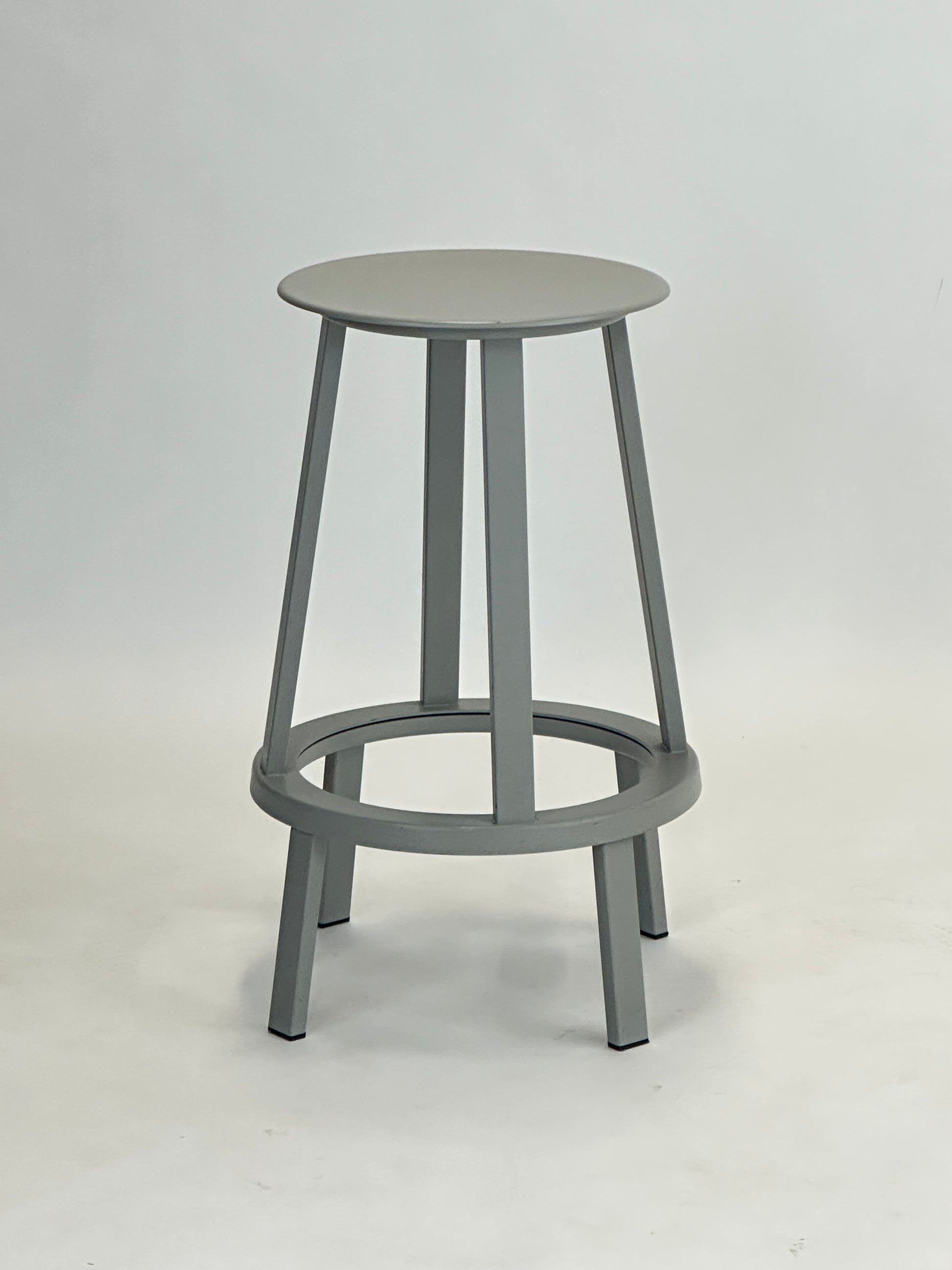 - Materialer: Fremstillet i robust og lakeret stål, denne version af Revolver barstolen er grå, hvilket giver et minimalistisk og stilrent udtryk, der let passer ind i forskellige indretningsstile.