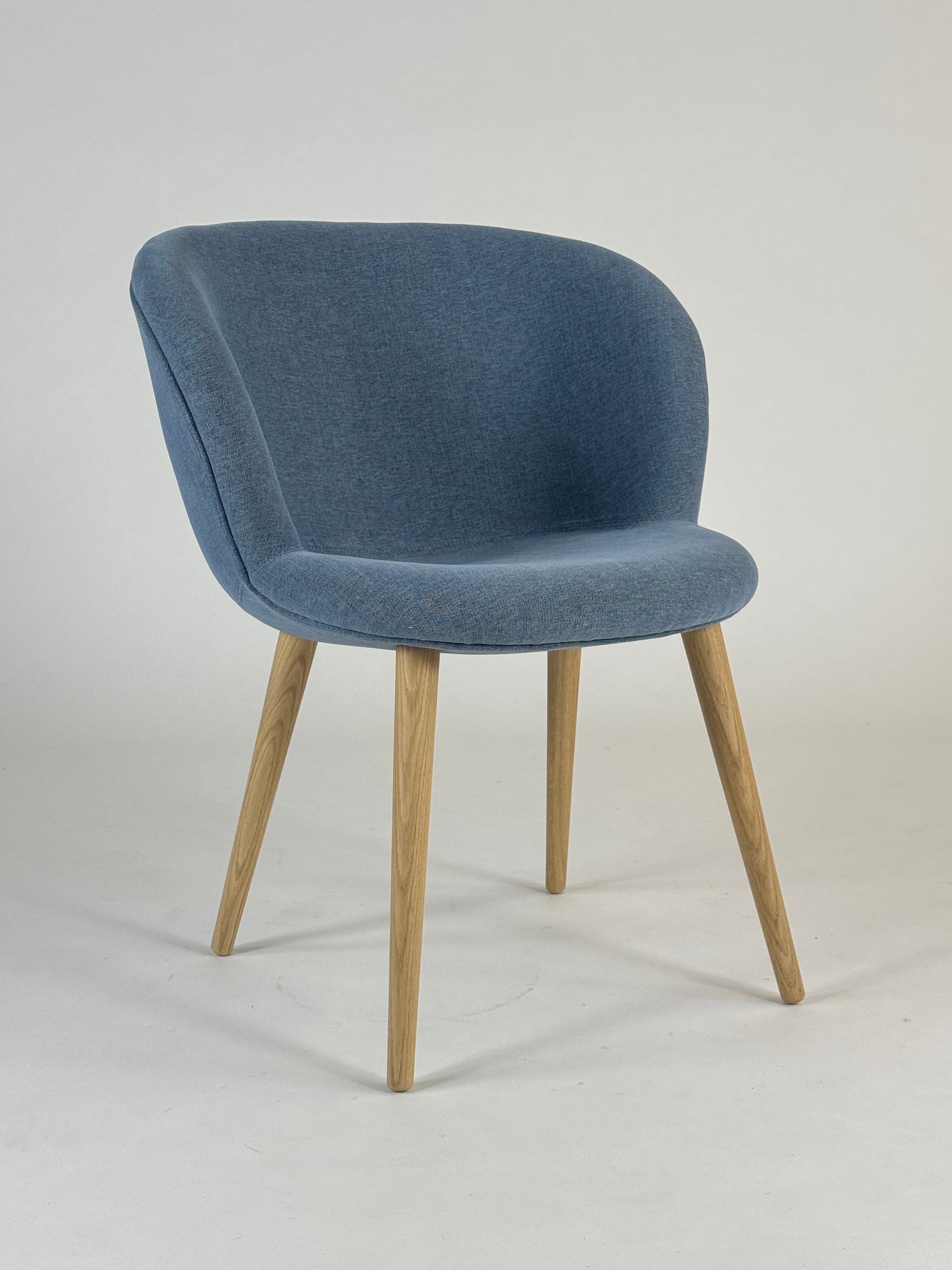 Stolen er fuldpolstret i et afdæmpet lyseblåt møbelstof, der sammen med ben i massiv eg skaber en let og indbydende helhed. Det enkle design gør Capri Multi velegnet til brug i receptionsområder, ventezoner, møderum eller som gæstestol i kontormiljøer. Den rene, tidløse form sikrer, at stolen nemt kan integreres i mange typer indretninger – fra klassisk til moderne.