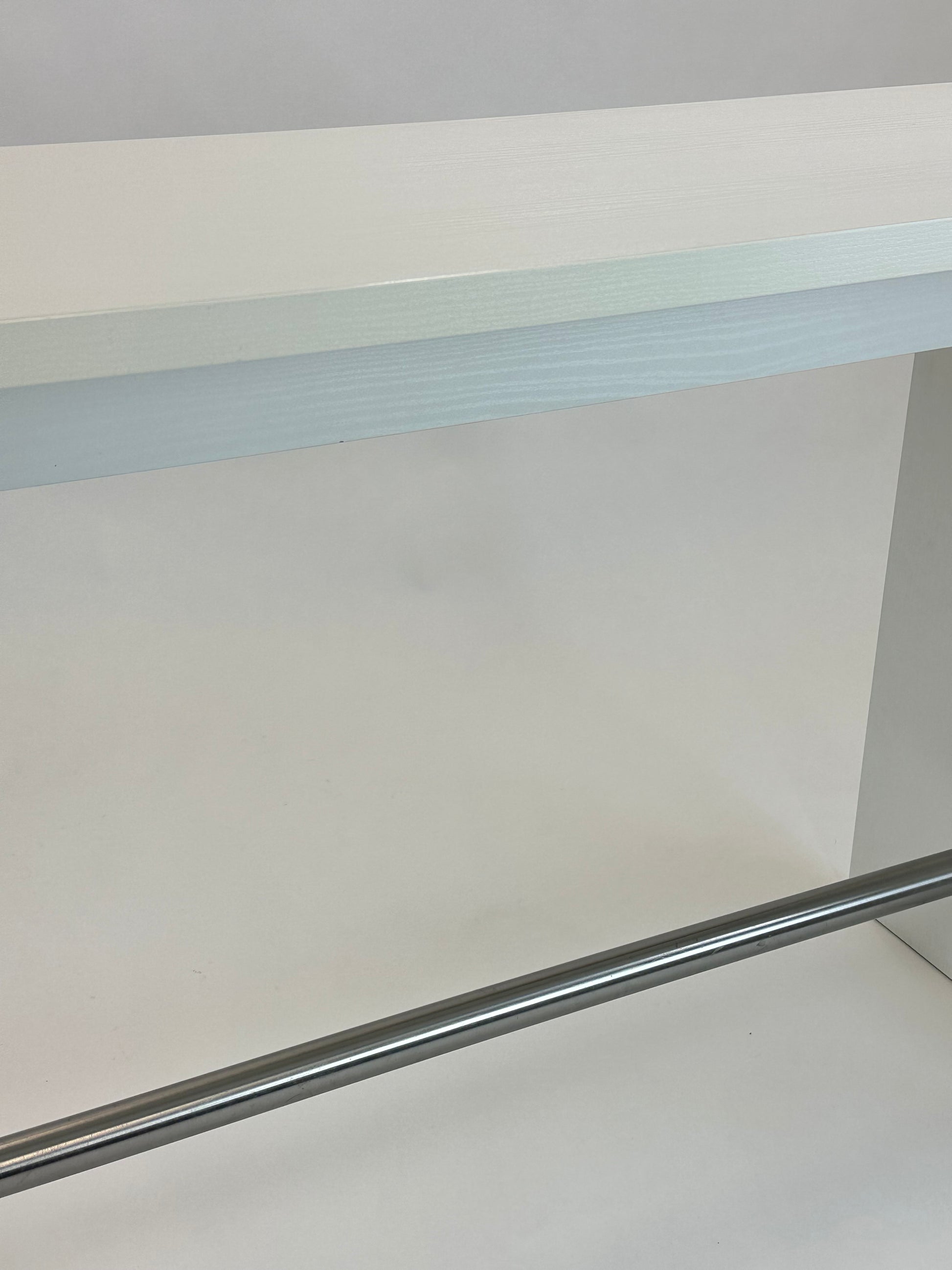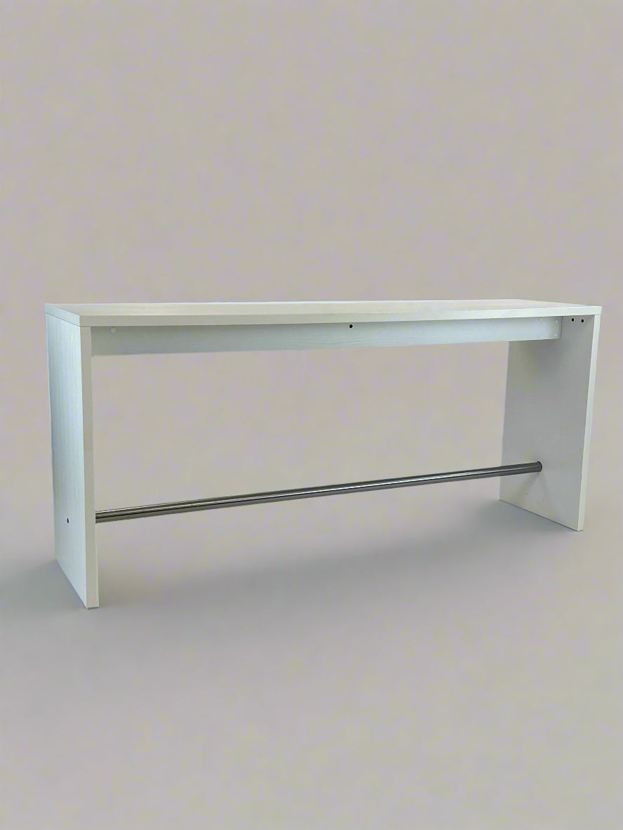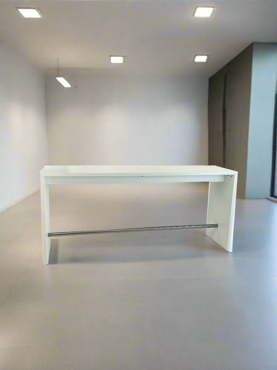 Dette elegante højbord kombinerer funktionalitet og enkelt design, hvilket gør det perfekt til både kantiner, pauserum, projektrum og uformelle mødeområder. Med en solid, hvid konstruktion og en praktisk fodstøtte i metal, sikrer bordet både komfort og holdbarhed i daglig brug.