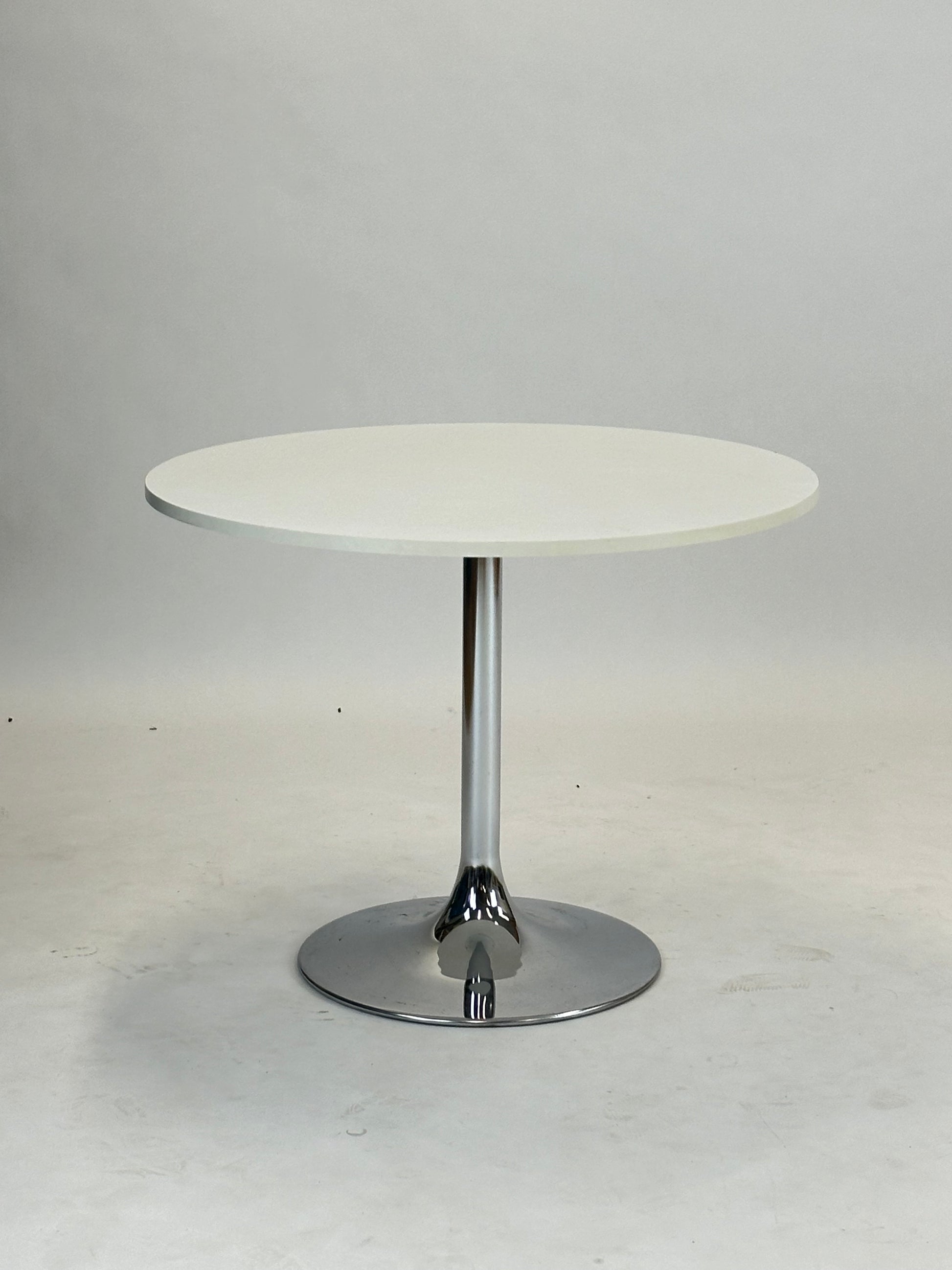 Rundt café- eller mødebord med krom stel – enkelt og alsidigt design