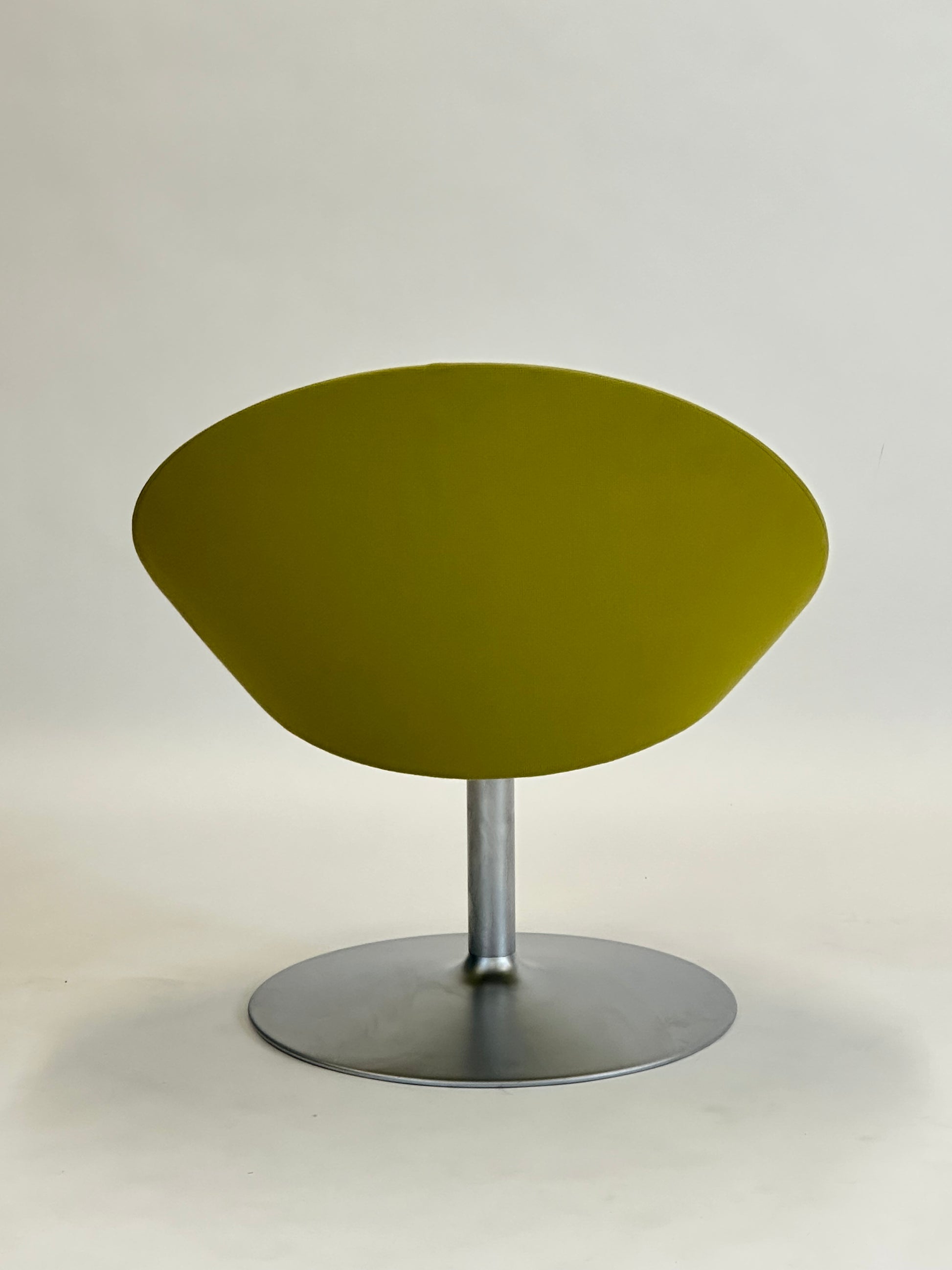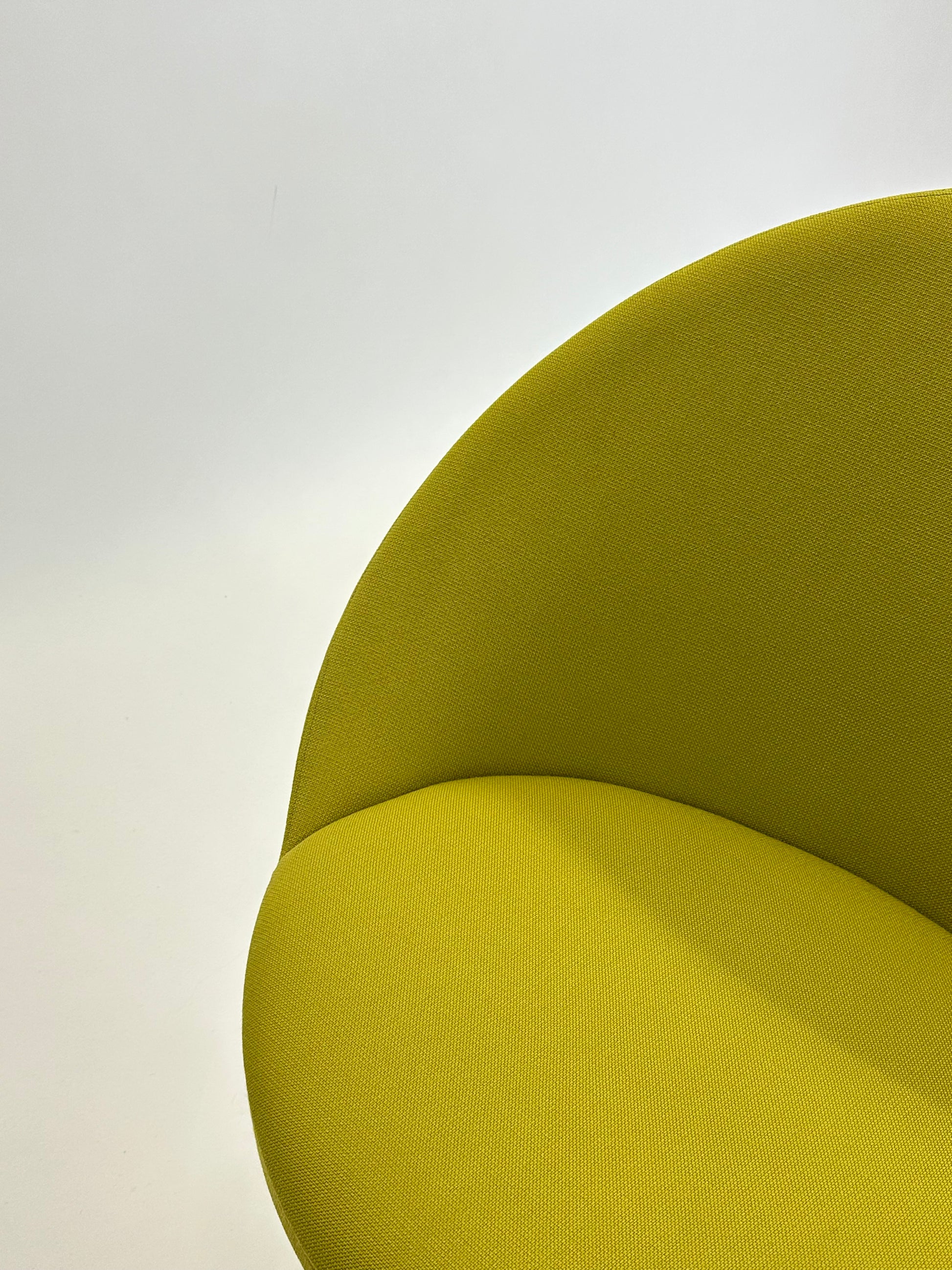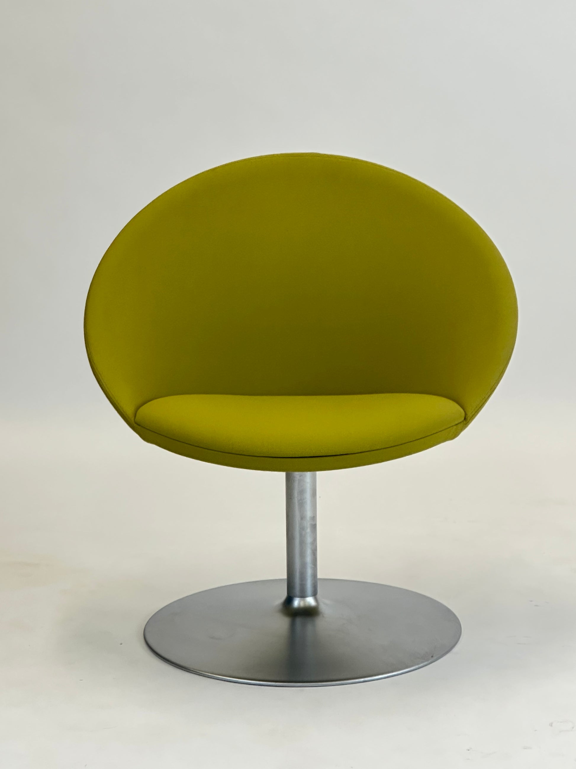 Den buede ryg og det polstrede sæde giver en komfortabel siddeoplevelse, mens den stabile drejefod i børstet aluminium tilføjer en moderne kant. Den limegrønne polstring skaber et friskt og stilfuldt indslag i både kontorlandskaber, receptionsområder og private hjem.