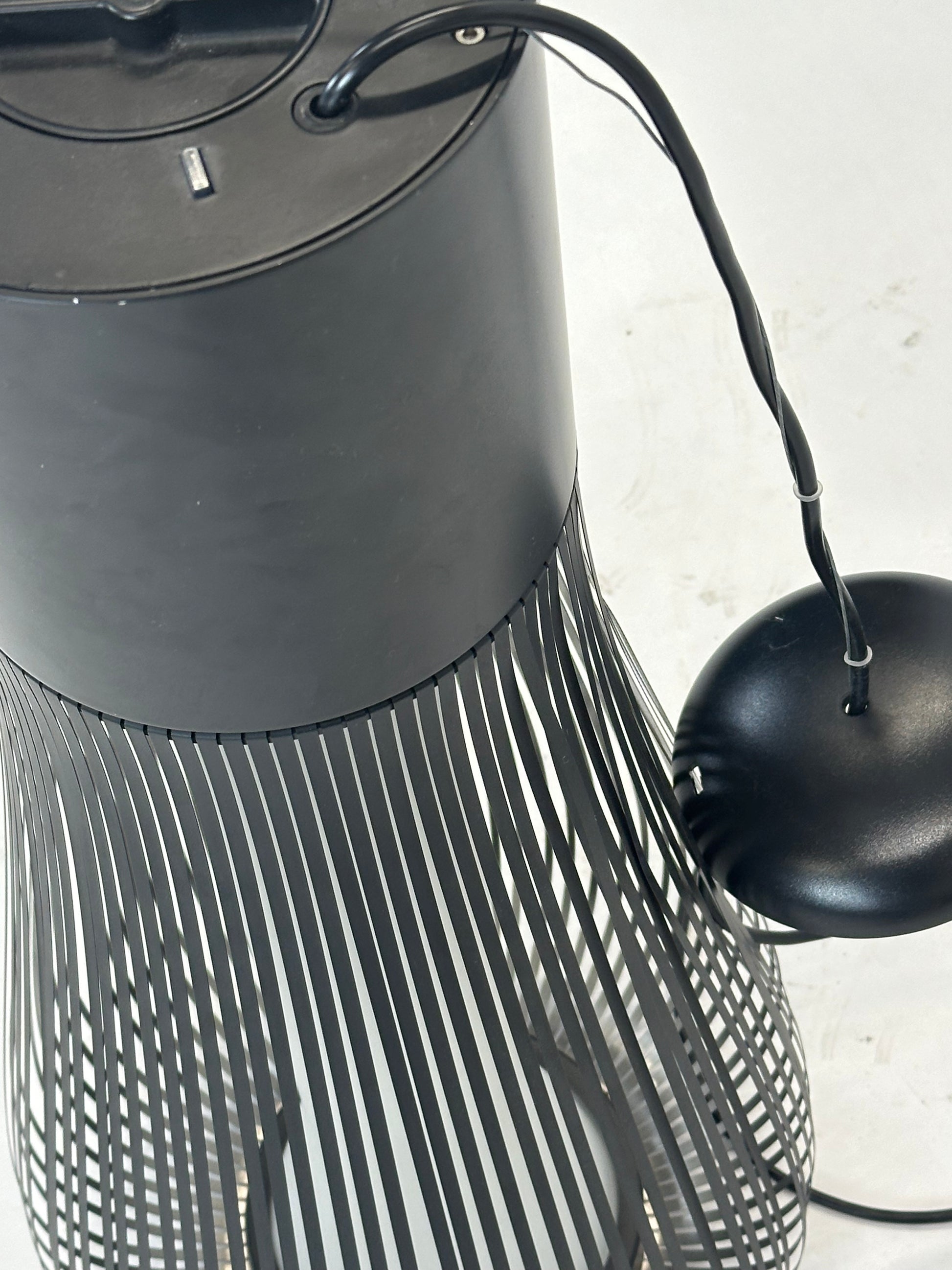 Denne stilfulde pendel kombinerer moderne æstetik med industrielt design, hvilket gør den til et unikt statement-piece i enhver indretning. Med sin luftige konstruktion af sorte metalstænger skaber lampen et elegant lysspil, der tilfører både varme og dynamik til rummet.