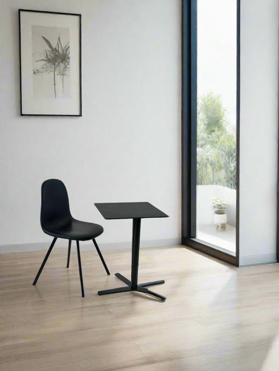 ✔ Bordplade: Kvadratisk, sortlakeret bordplade med glat finish