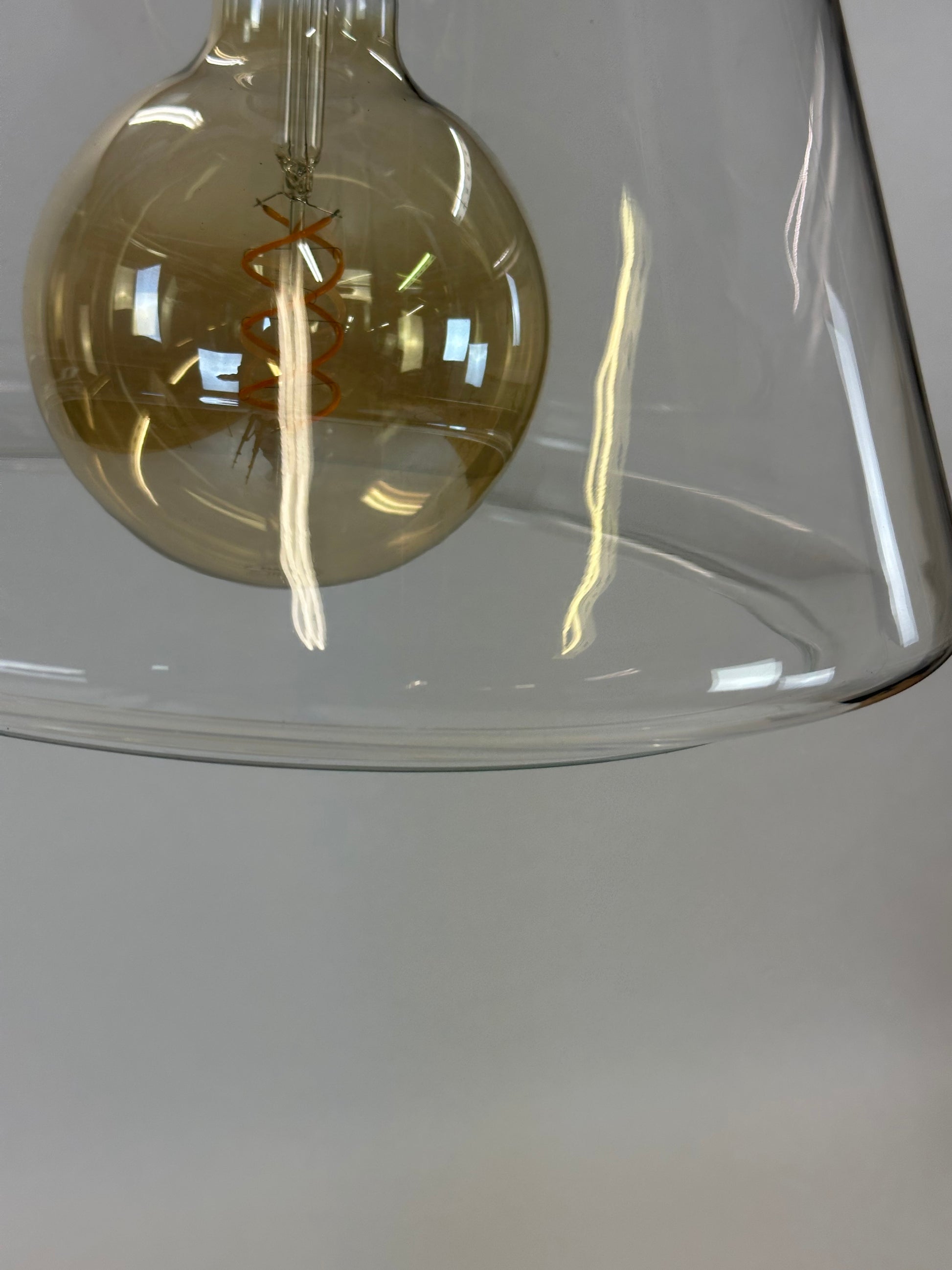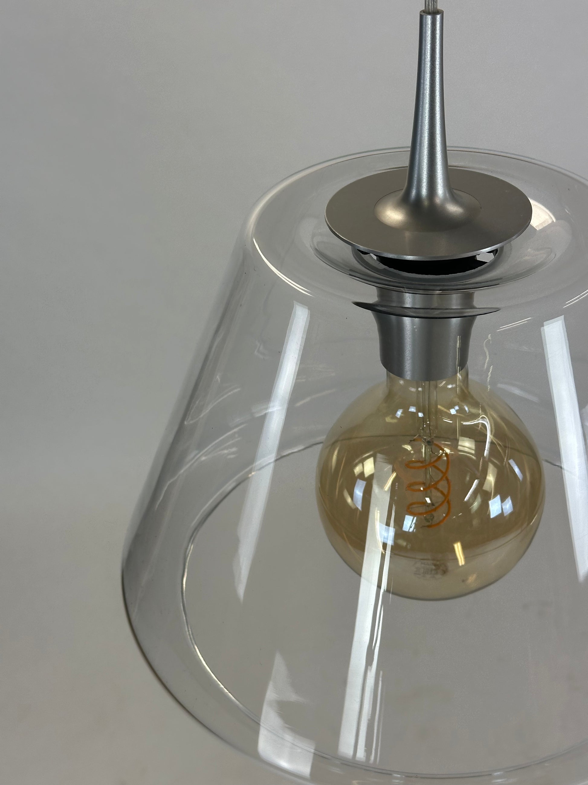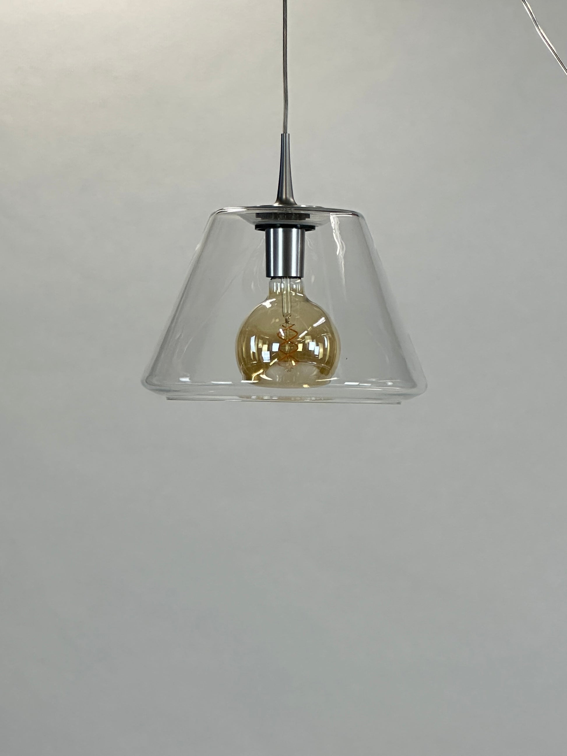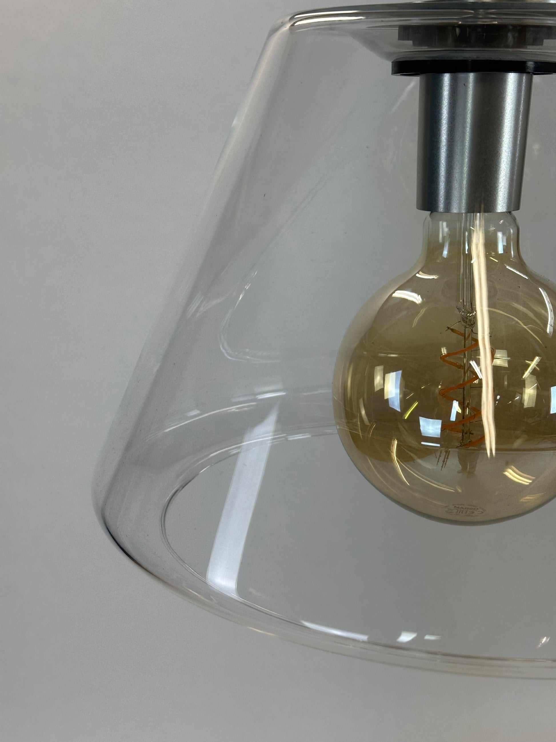 ✔ Metalophæng i børstet stål, der giver en flot kontrast til det lette glas.