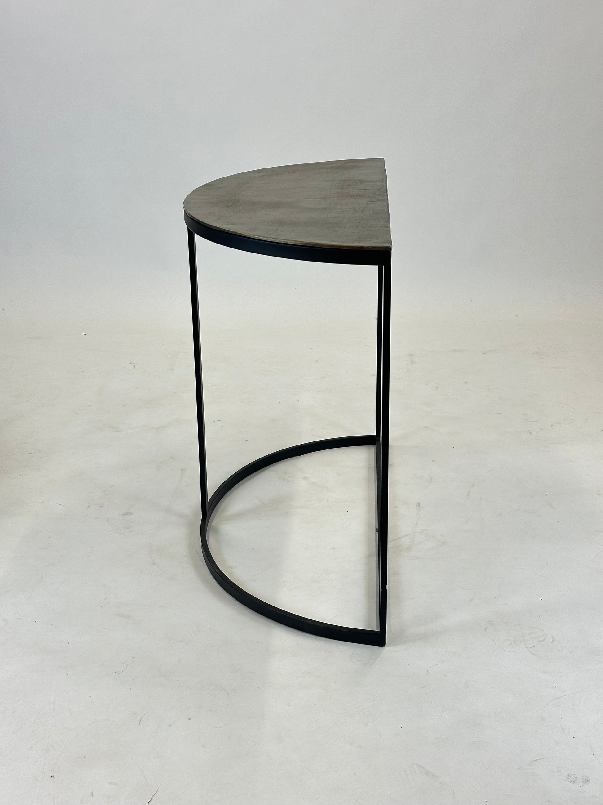 Side Peto fra Light & Living er et stilrent og funktionelt sidebord, der kombinerer moderne design med et råt, industrielt udtryk. Bordets halvcirkelformede bordplade hviler elegant på et sortlakeret metalstel, hvilket giver en let og luftig silhuet, samtidig med at konstruktionen fremstår stabil og holdbar.