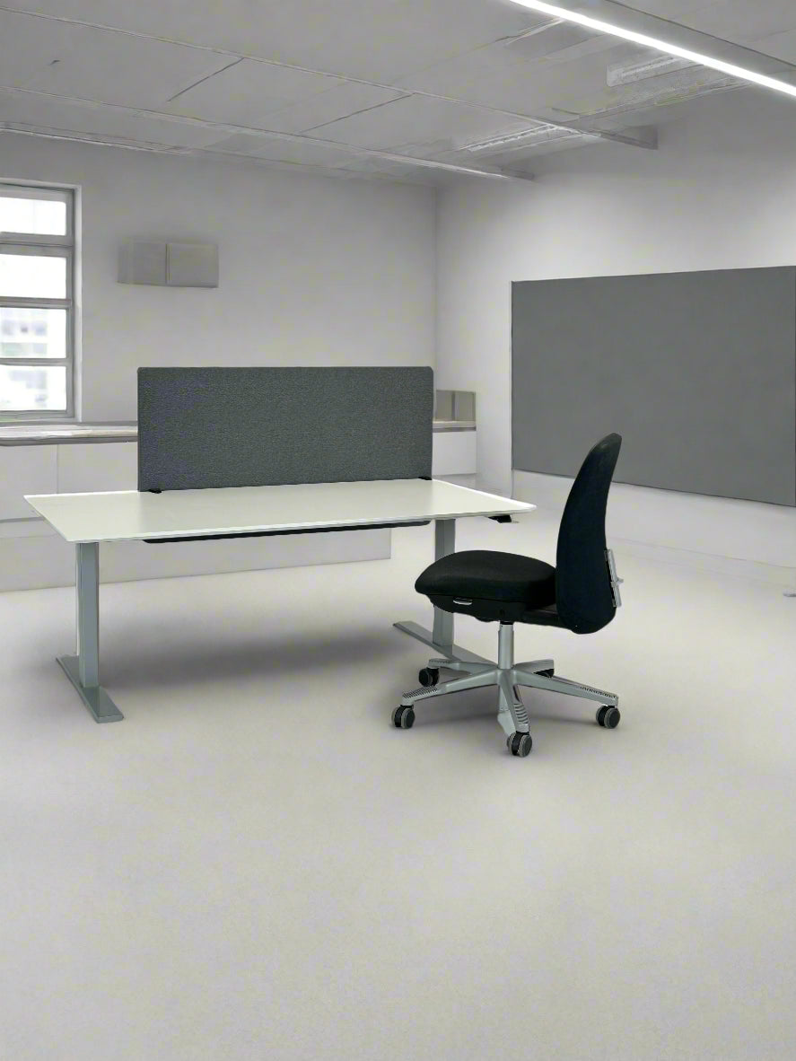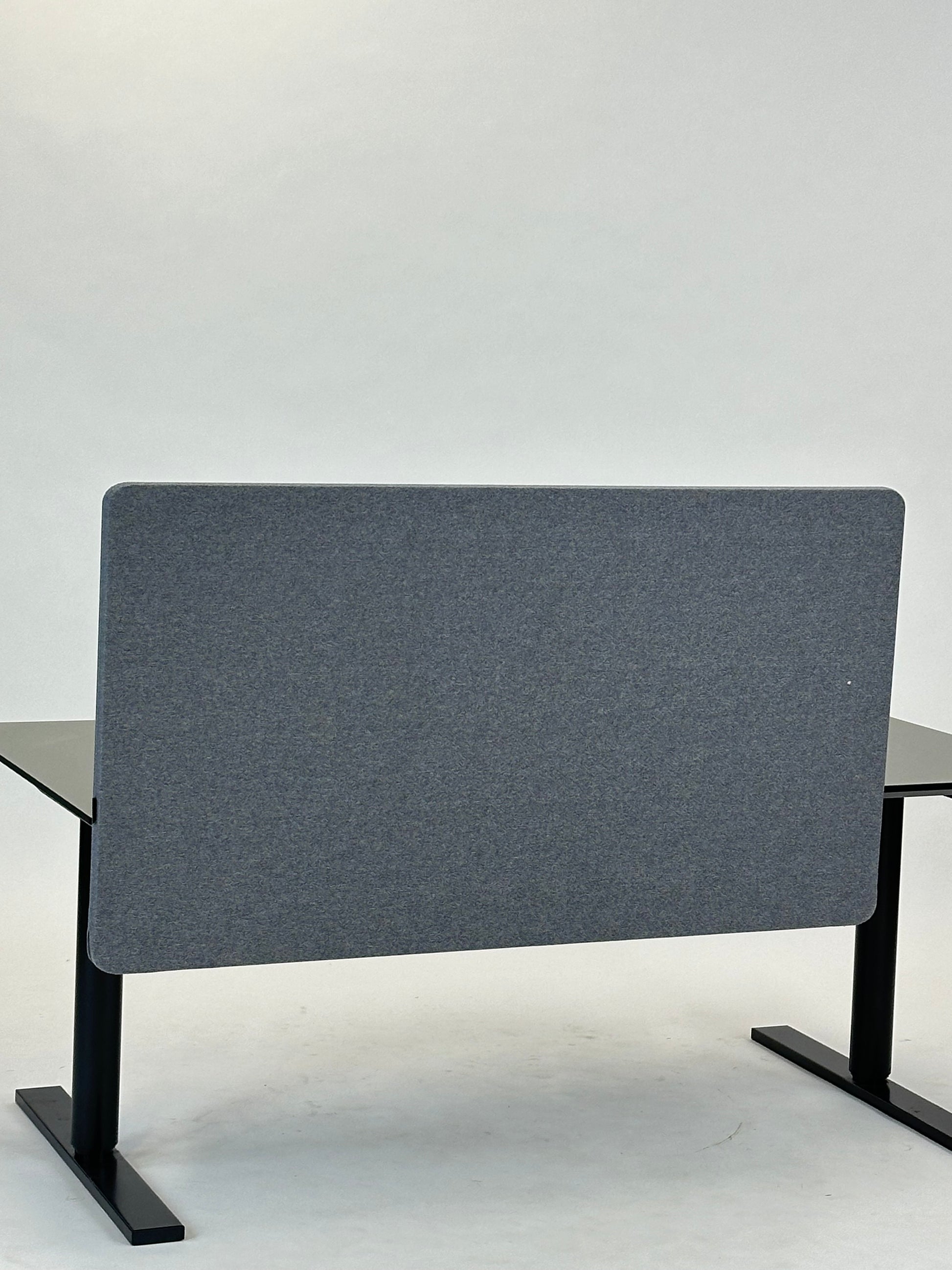 - Polstring: Skærmen er beklædt med et elegant, gråt stof, der harmonerer med forskellige kontorindretninger.